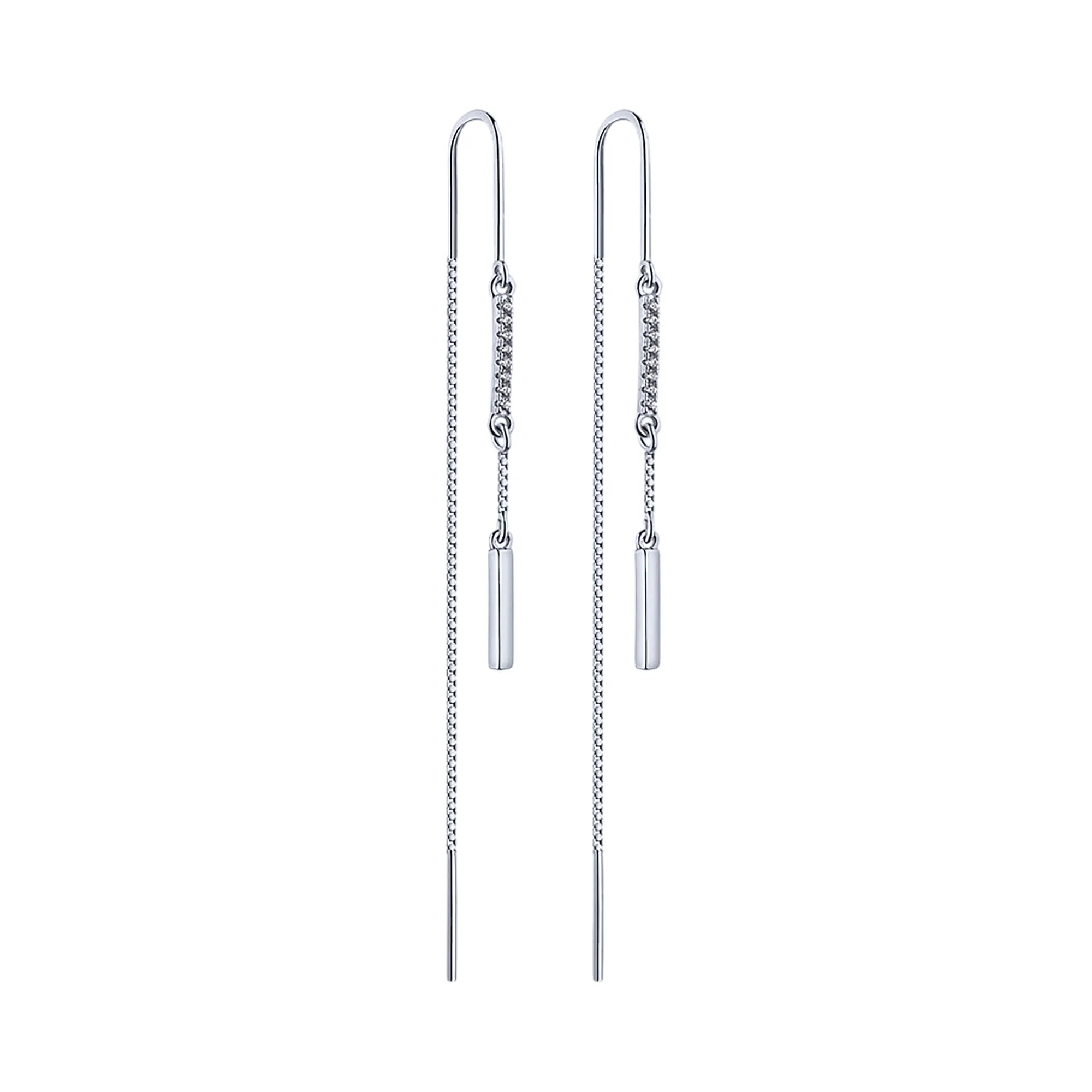 Стильні срібні сережки-протяжки з фіанітами - 1983480