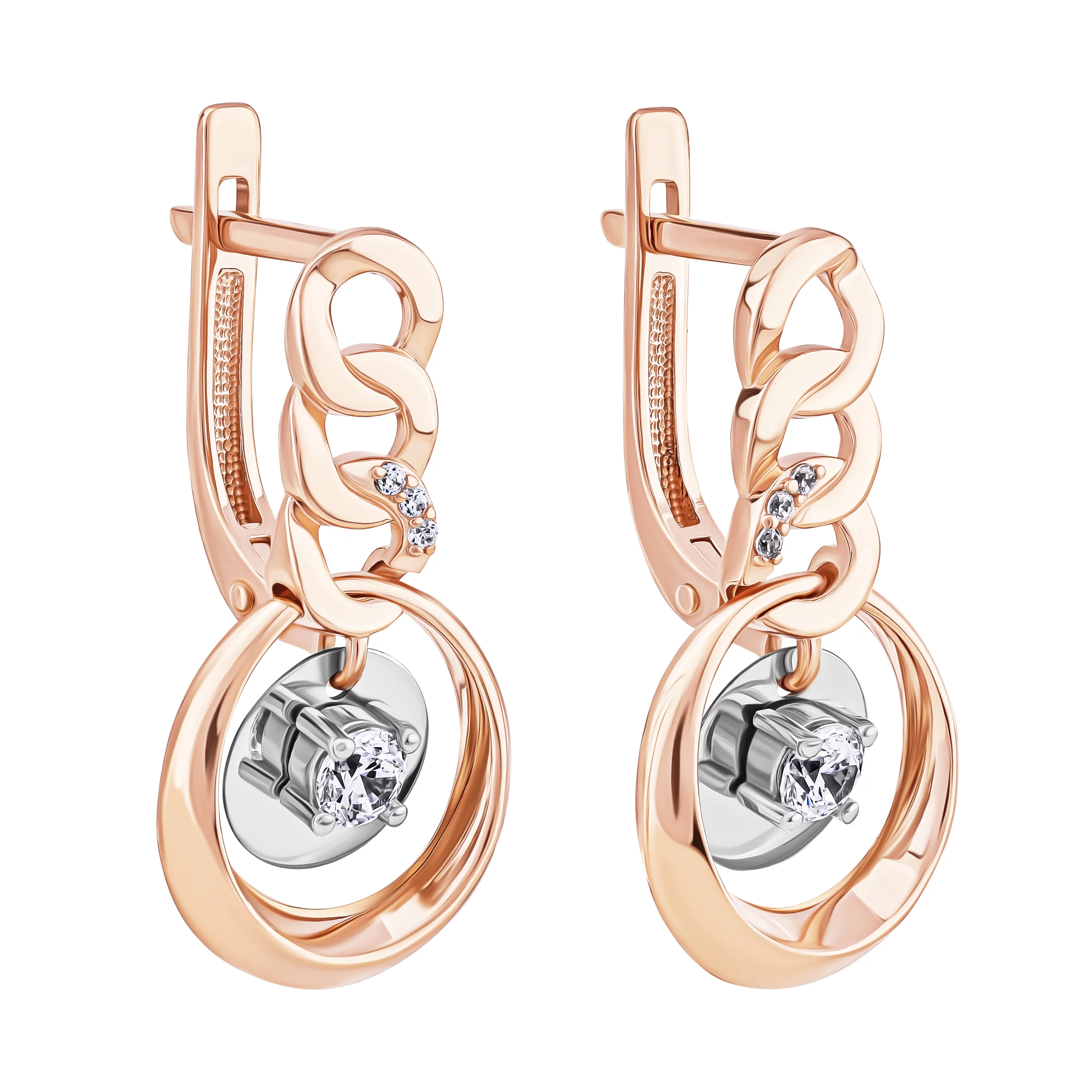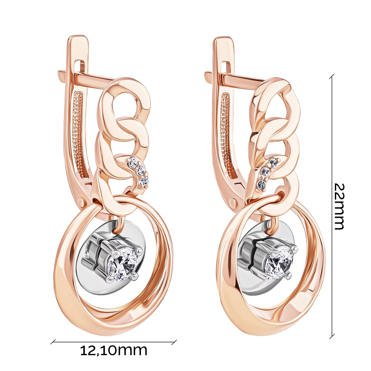 Сережки "Ланки" у комбінованому золоті з підвісами та фіанітами - 1920573
