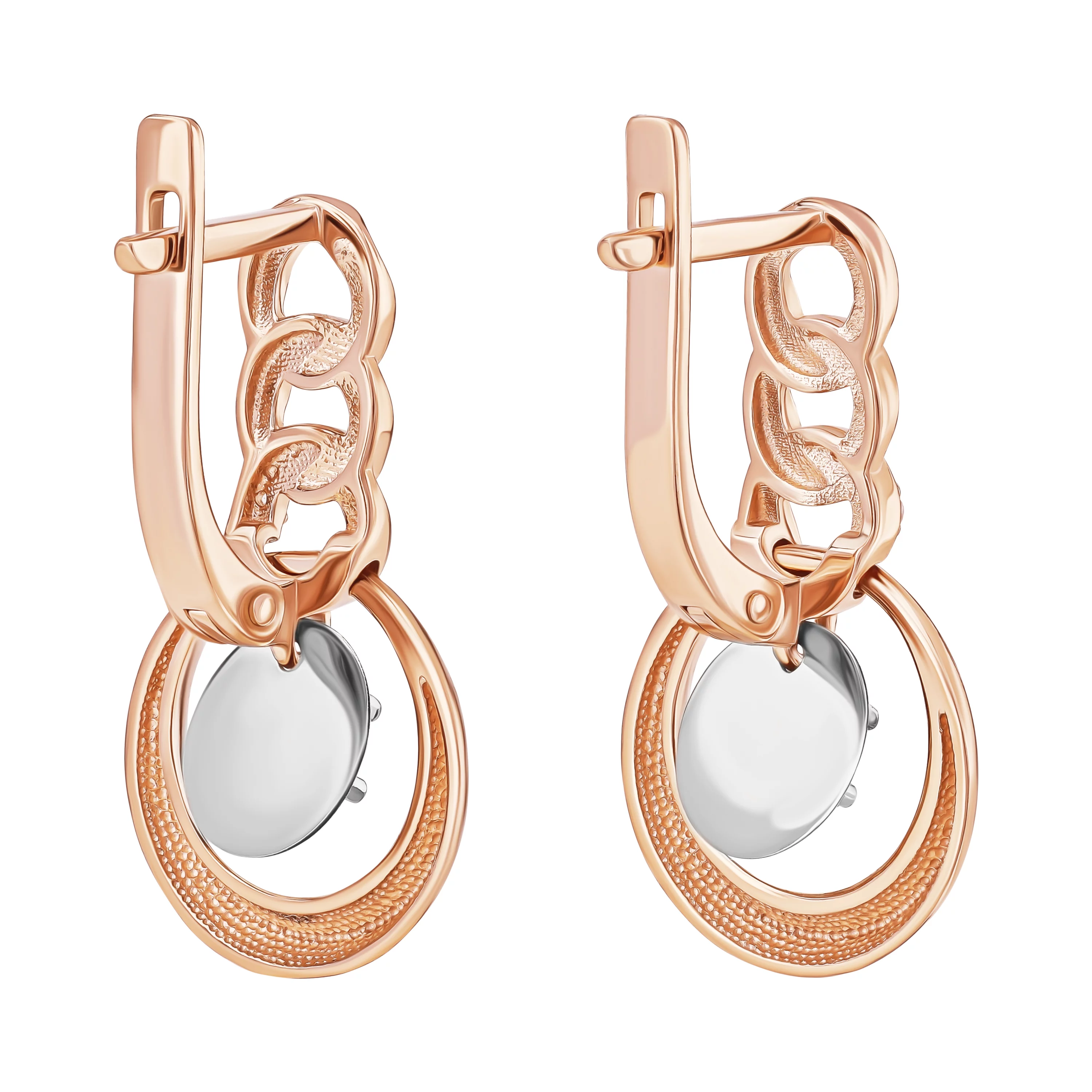 Сережки з червоного золота з підвісами "Кільця" з алмазною гранню - 1562490
