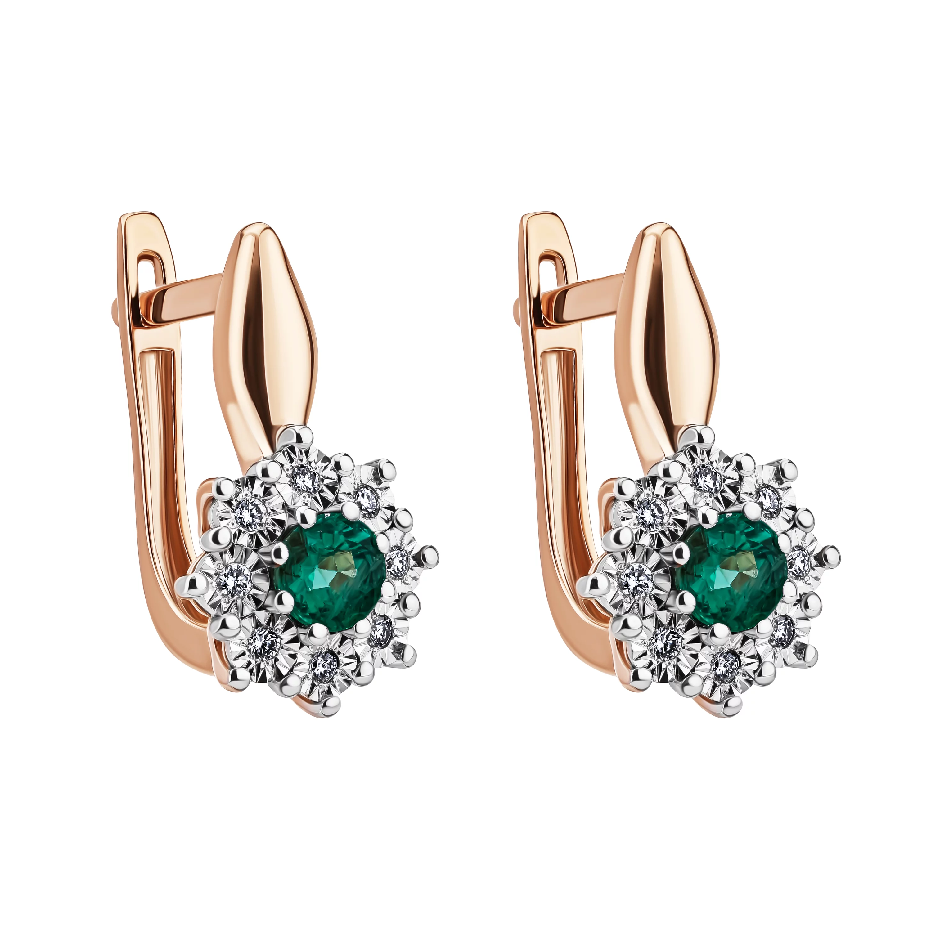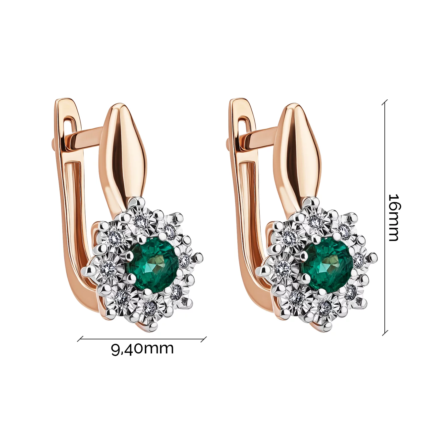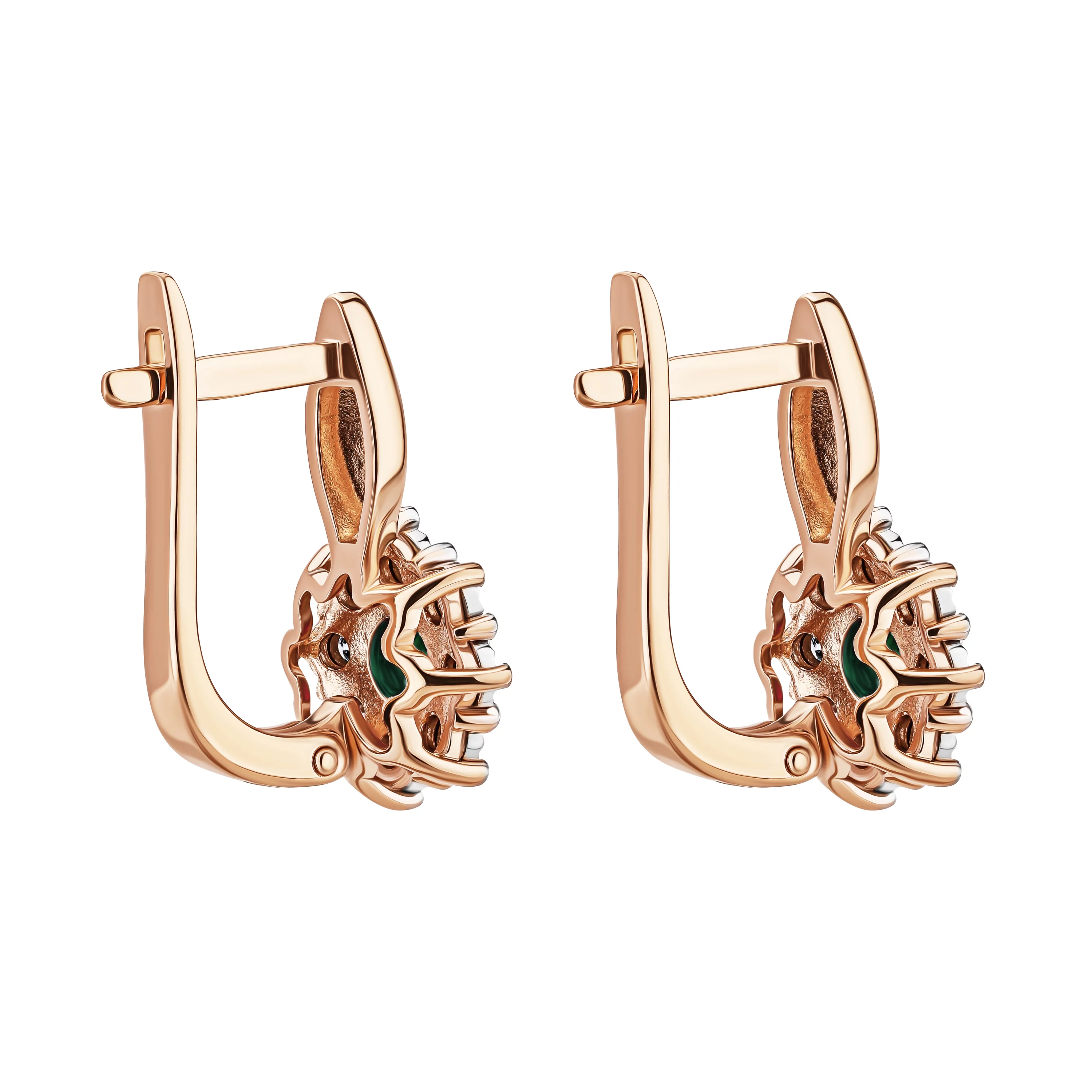 Сережки "Квітка" в червоному золоті з діамантами та спафіром - 1871707