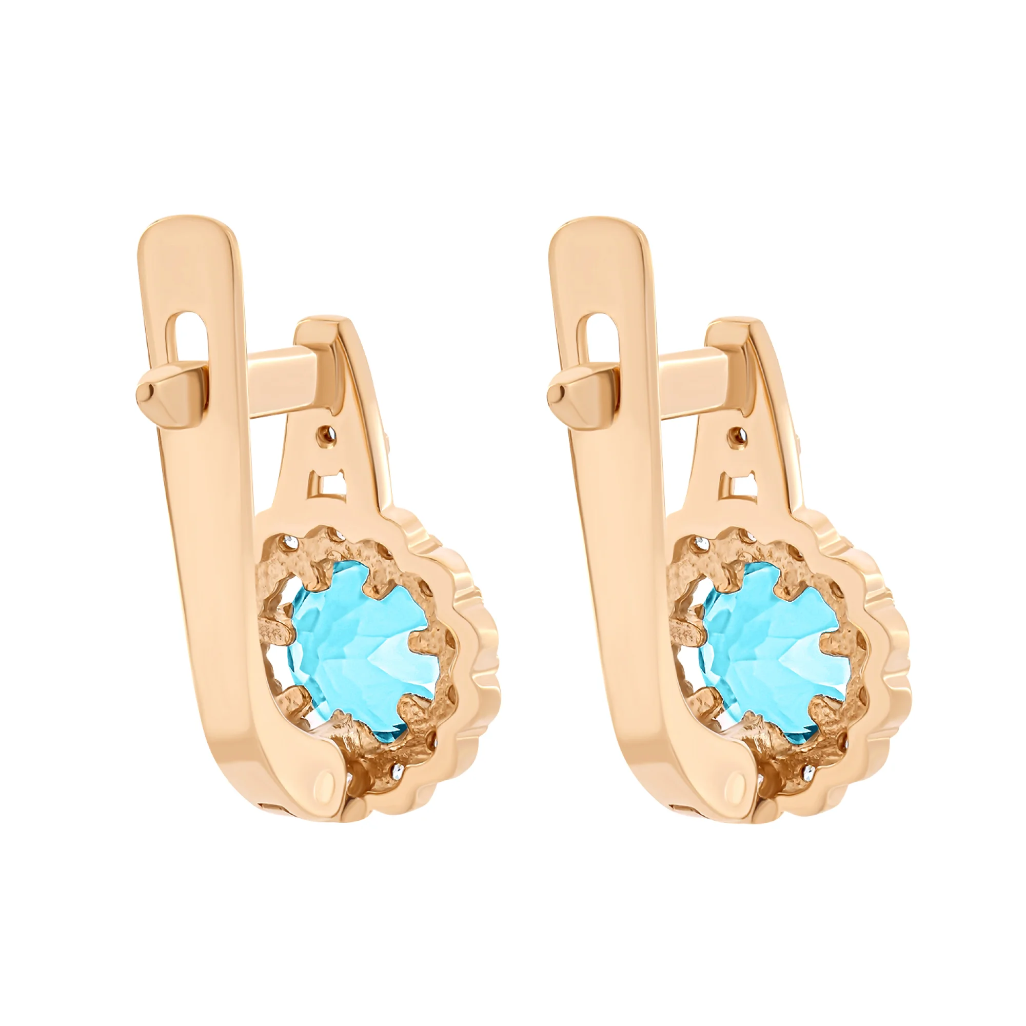 Елегантні сережки-гвоздики в червоному золоті з топазом лондон і фіанітами - 1872774