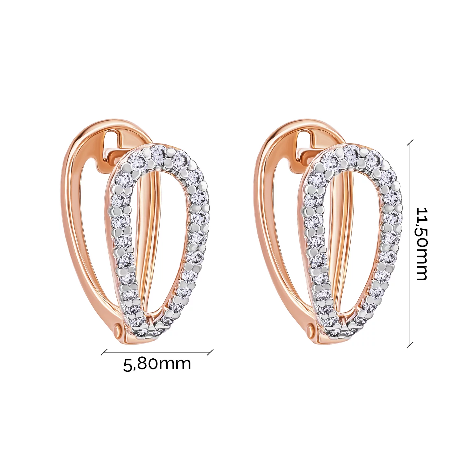 Стильні сережки "Крапля" з червоного золота з доріжкою з діамантів - 1872160