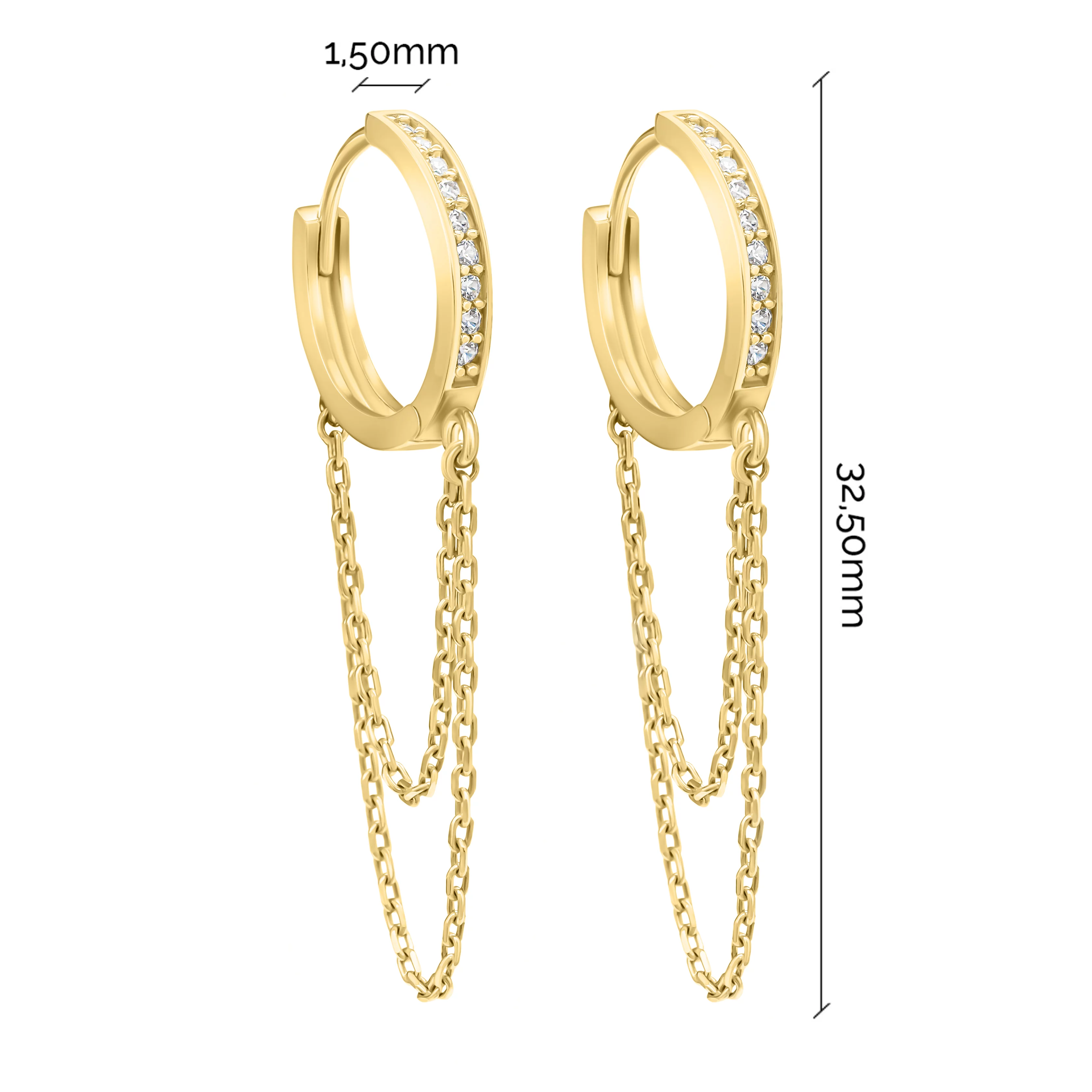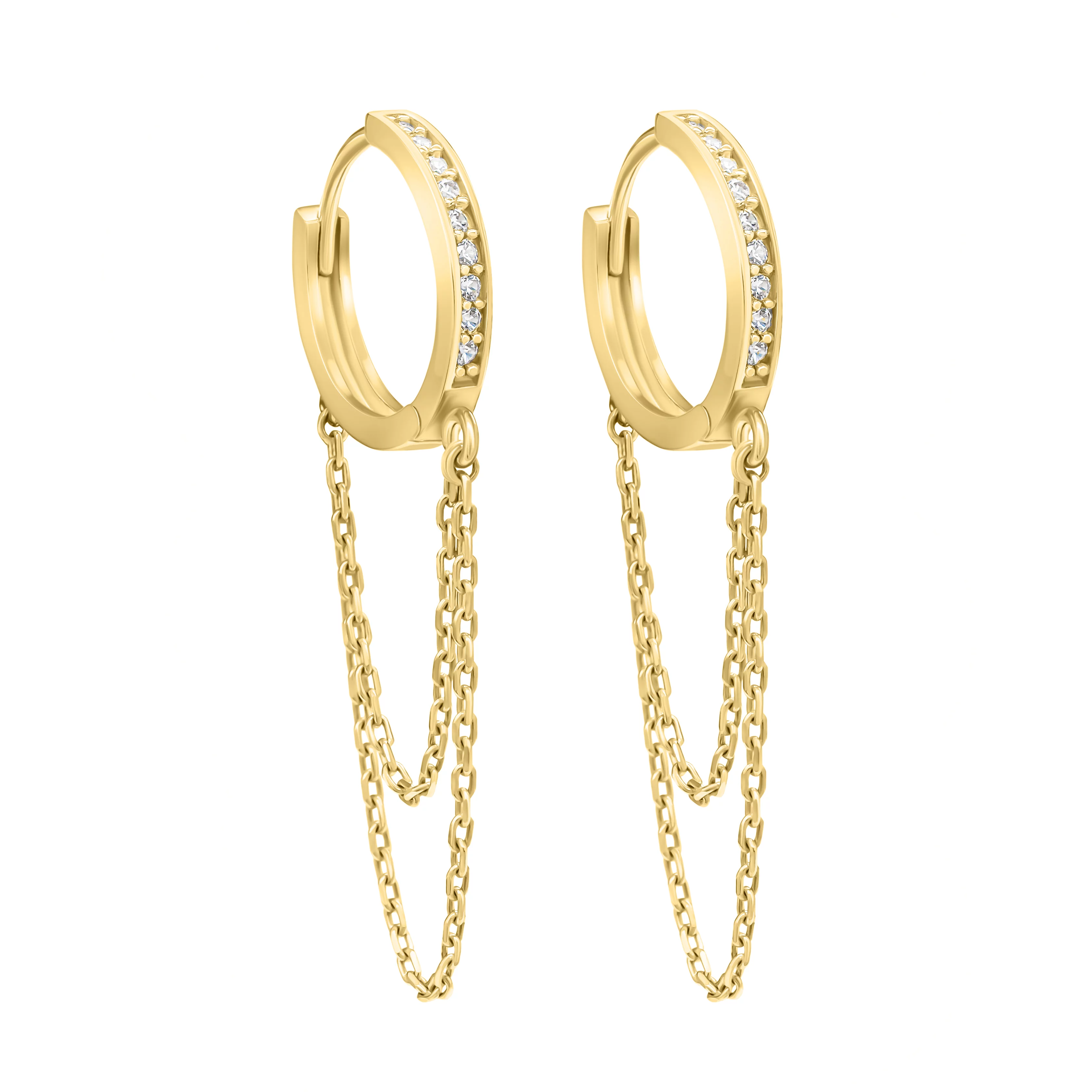 Сережки-кільця з білого золота з підвісними ланцюжками якірного плетіння - 1858829