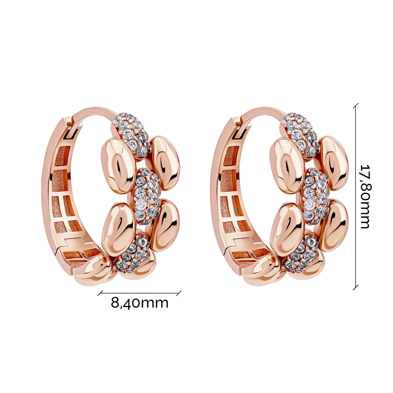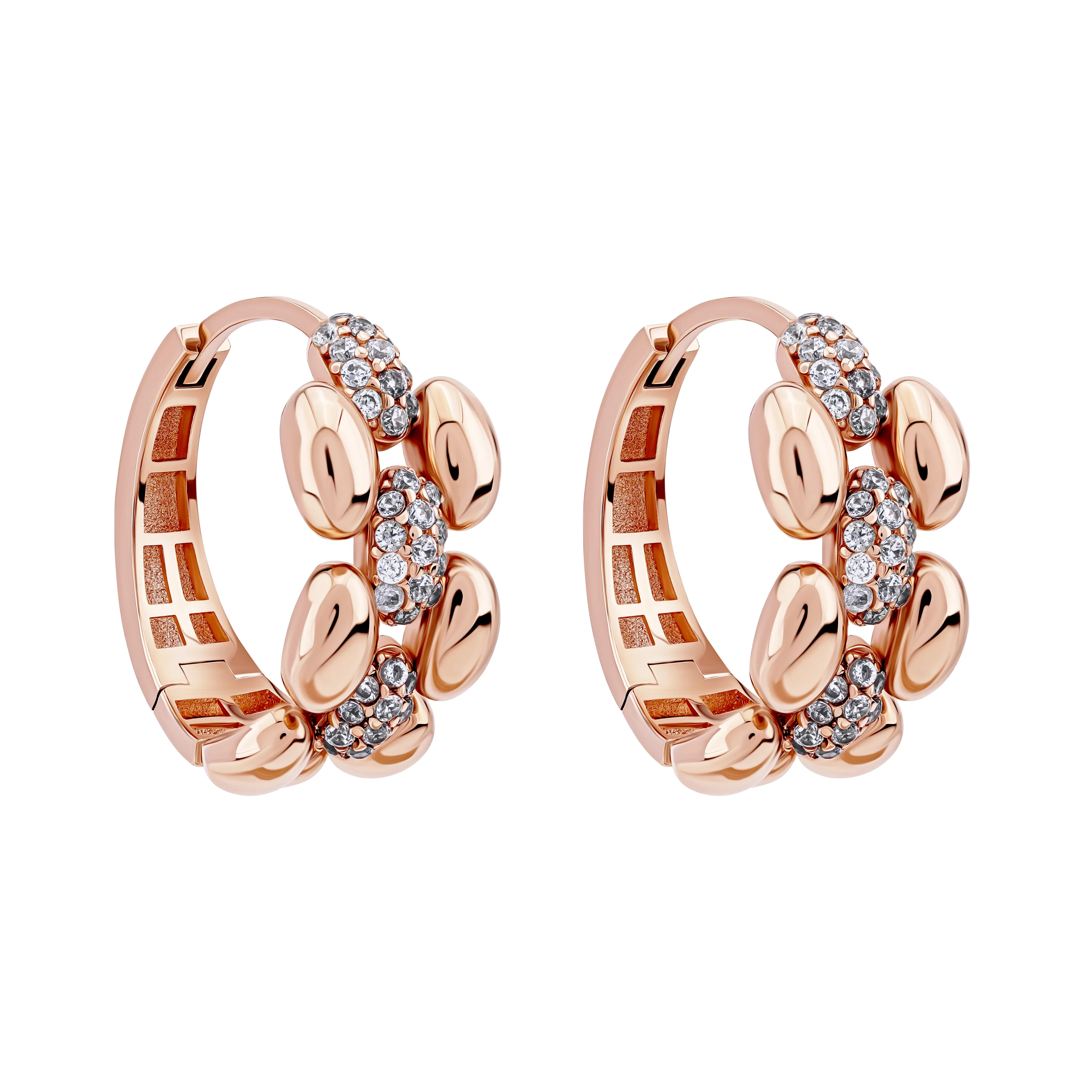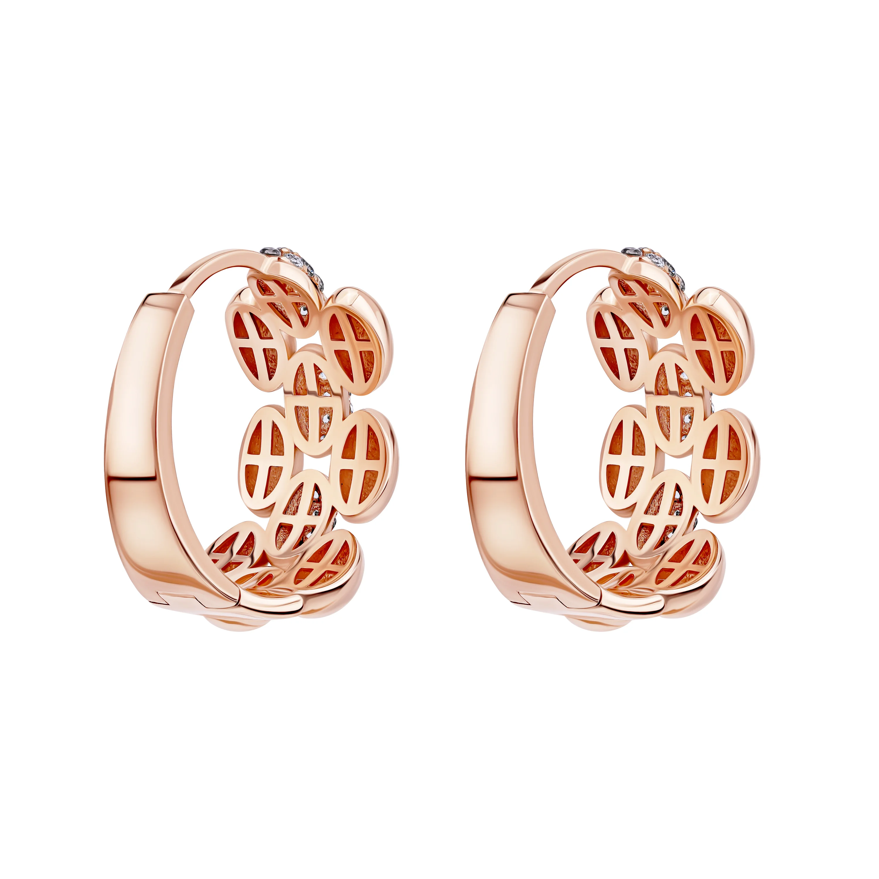Стильні сережки-кільця в геометричному стилі з червоного золота та фіанітами - 1974454