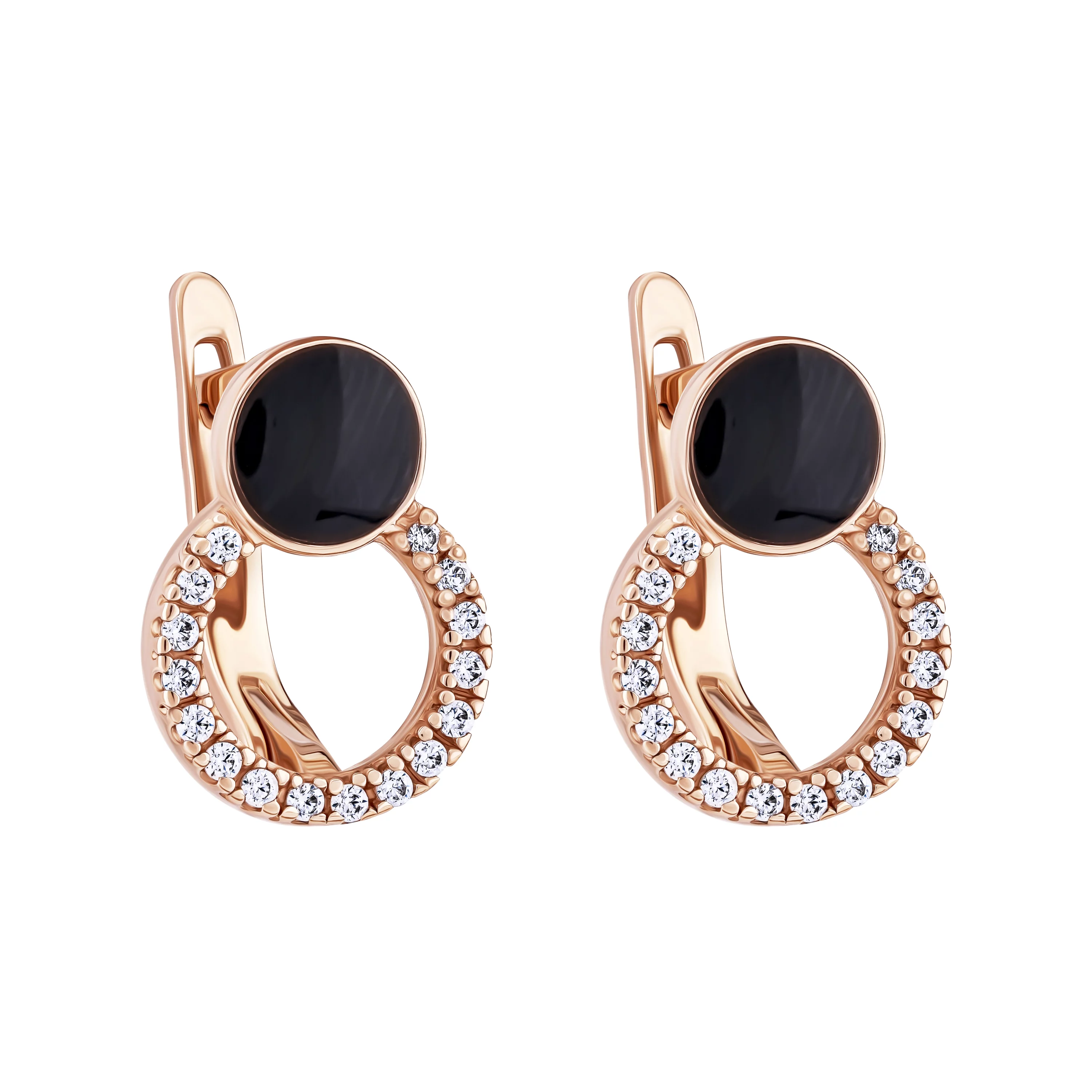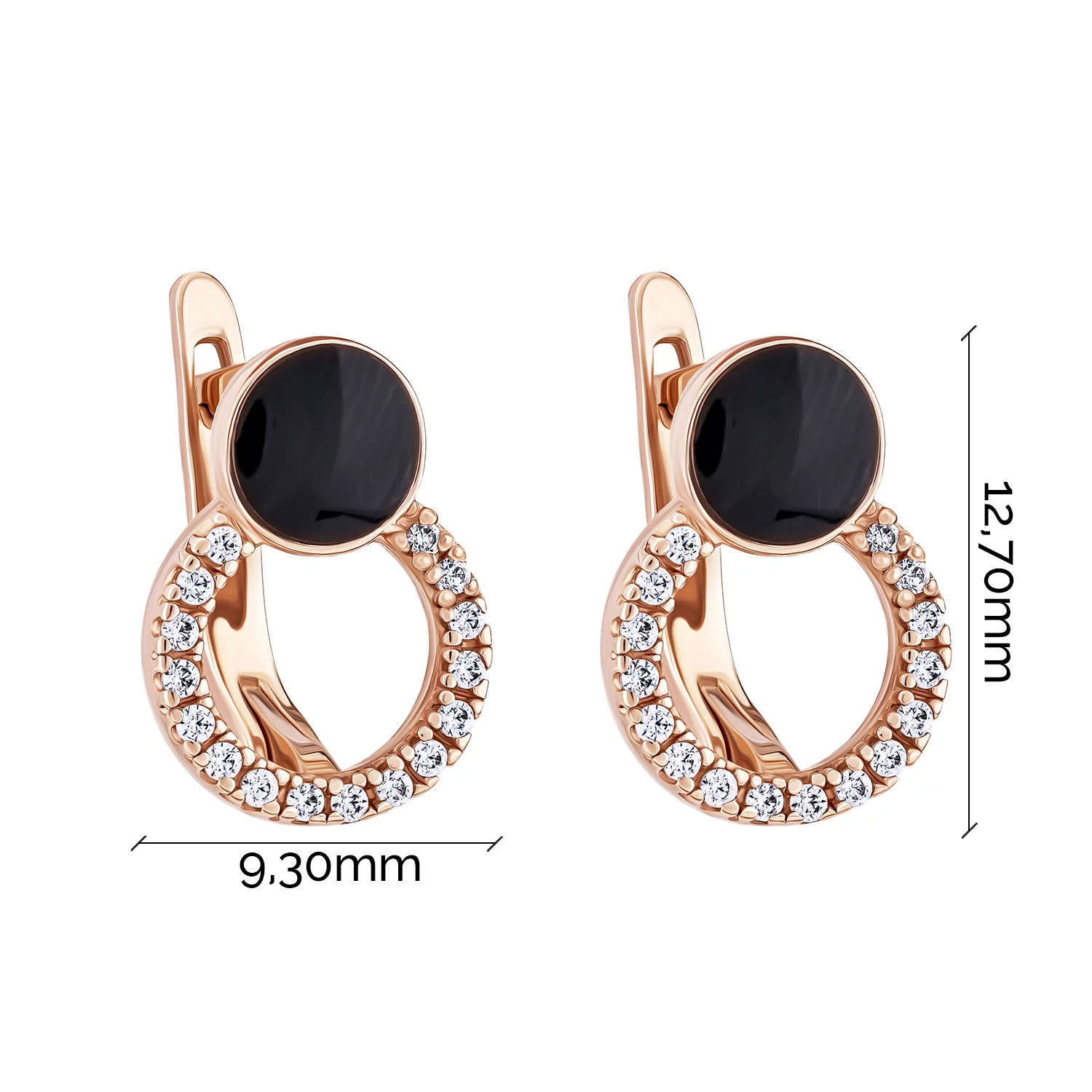 Стильні сережки з підвісами у червоному золоті з емаллю та фіанітом - 1928138