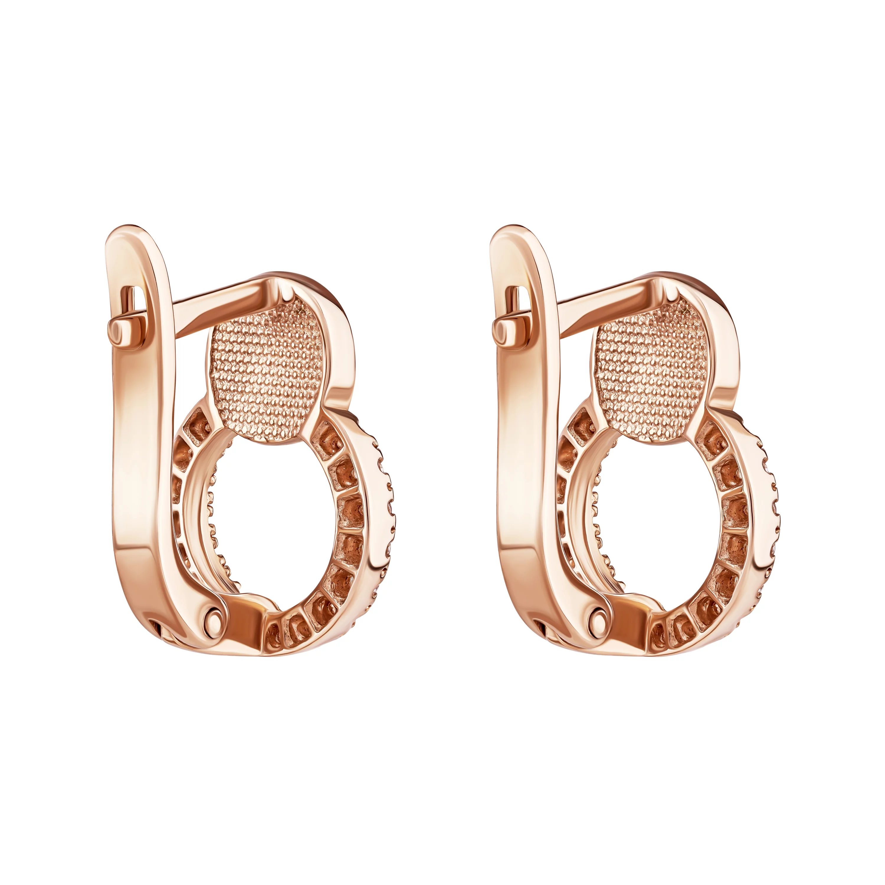 Стильні сережки "Квадрати" із червоного золота з доріжкою з фіанітів - 1876985