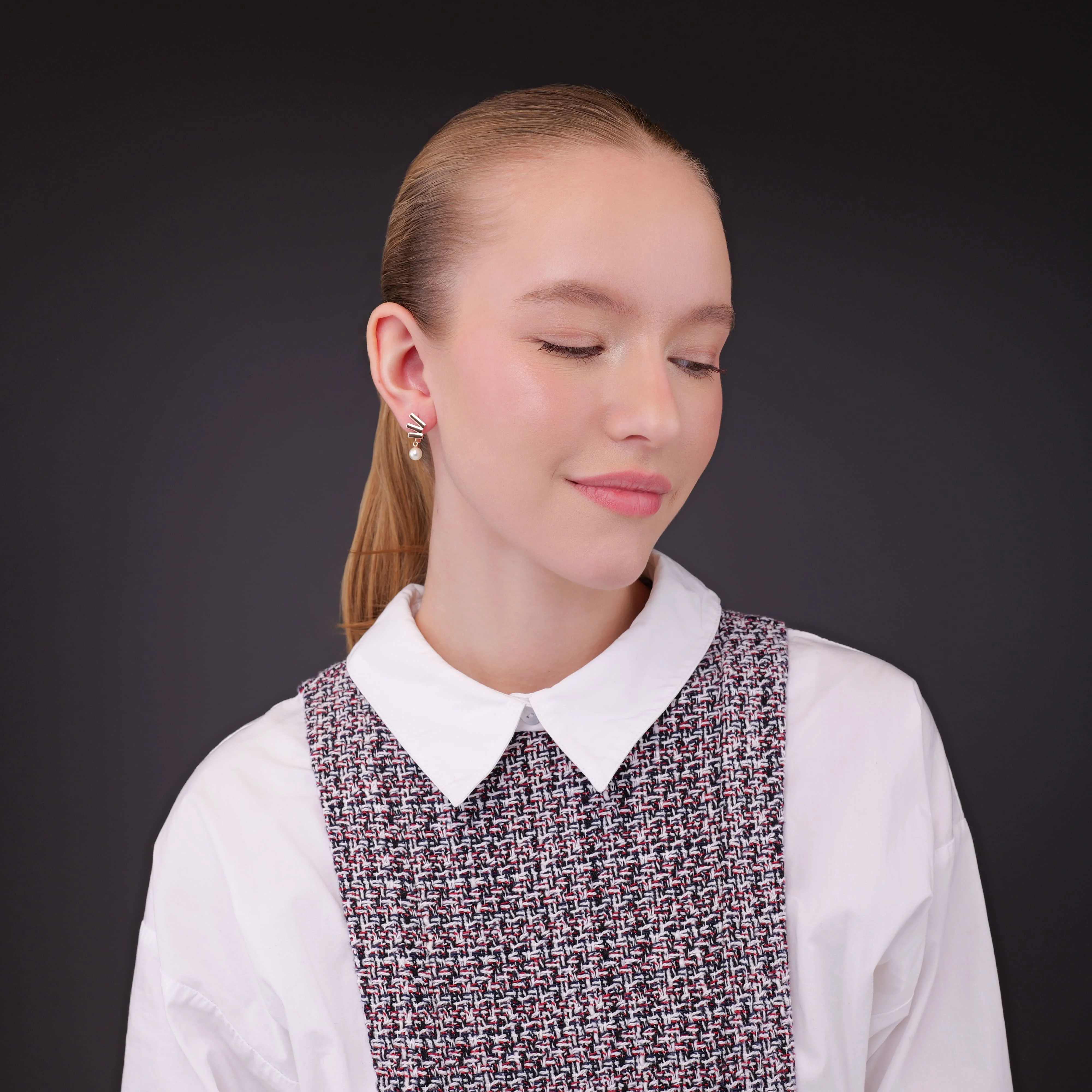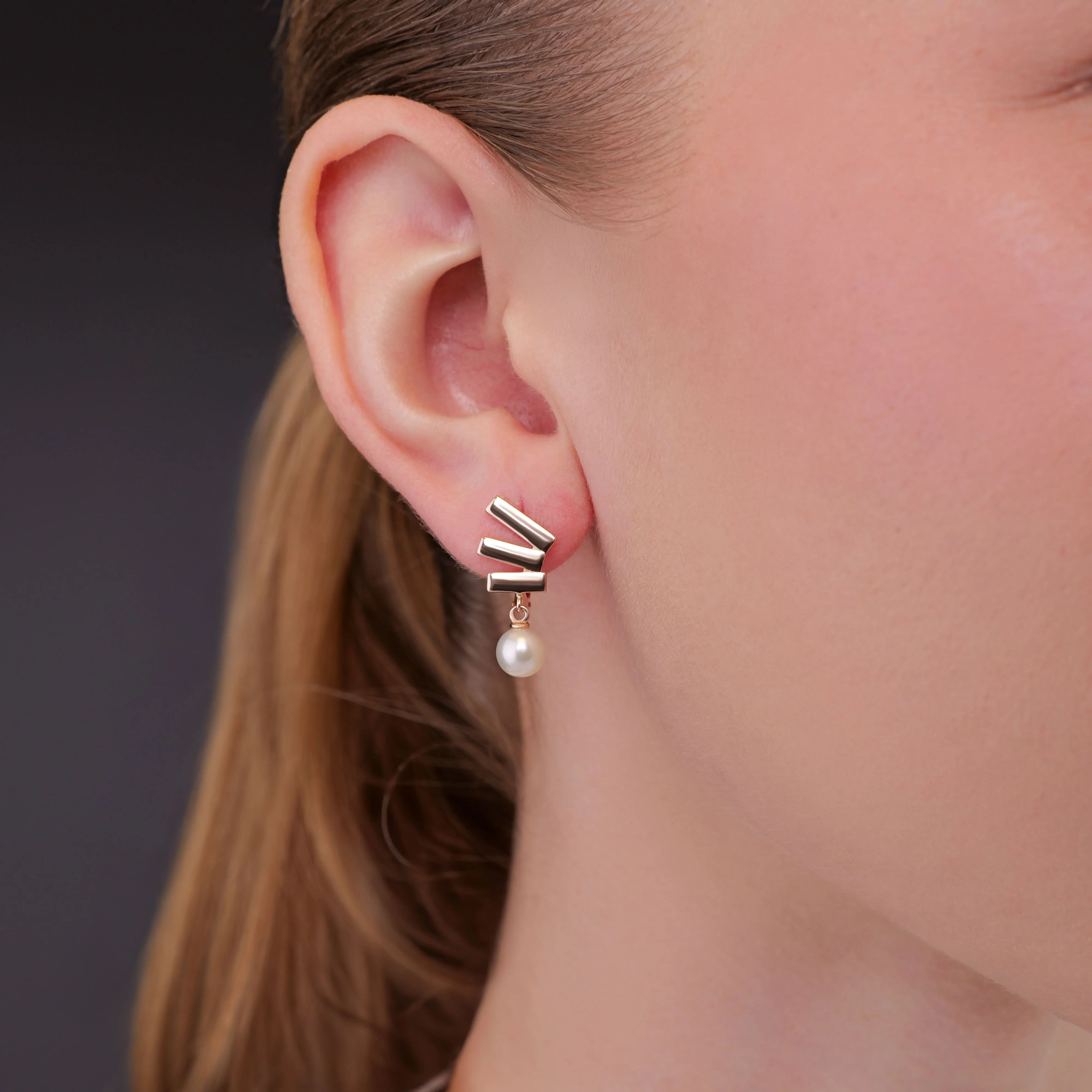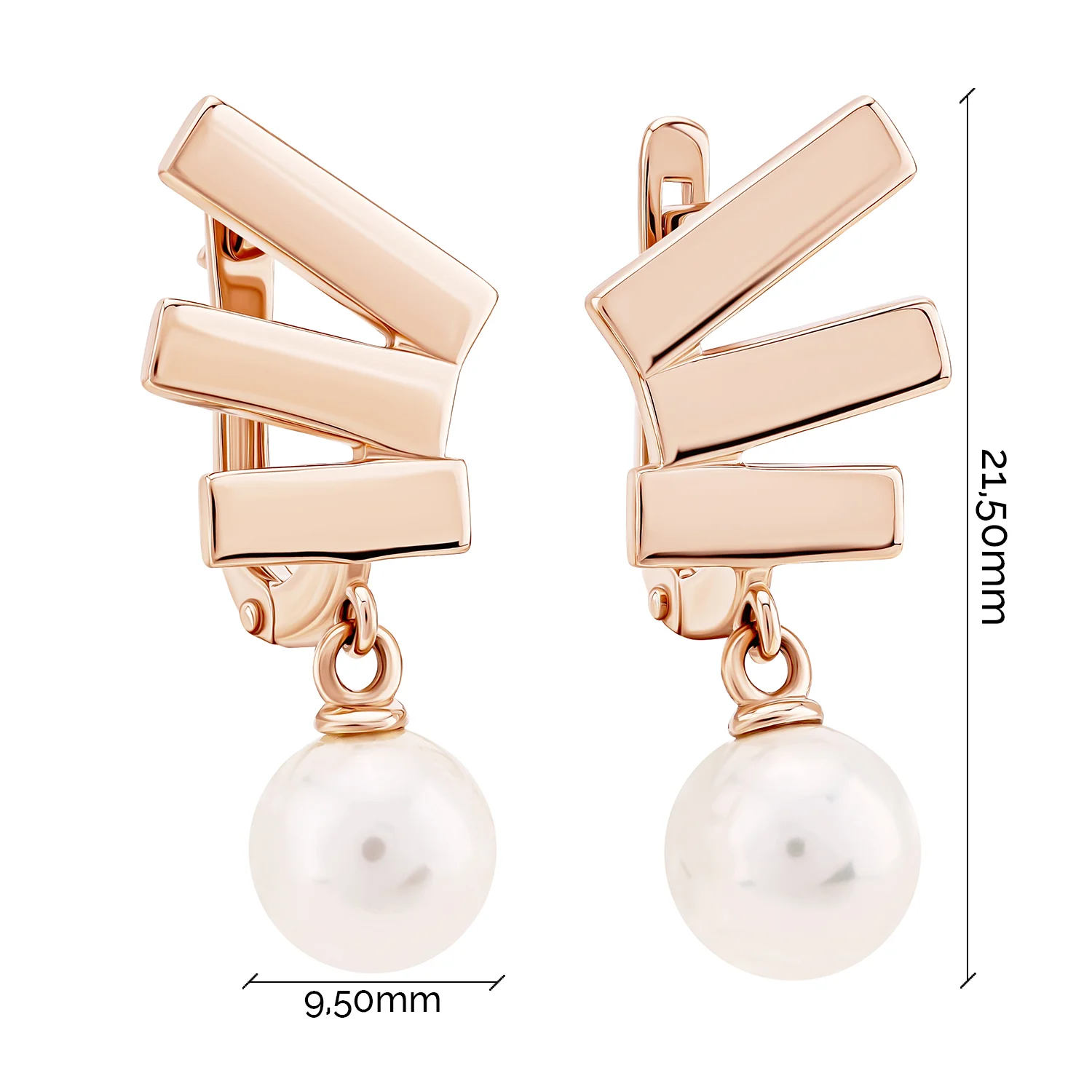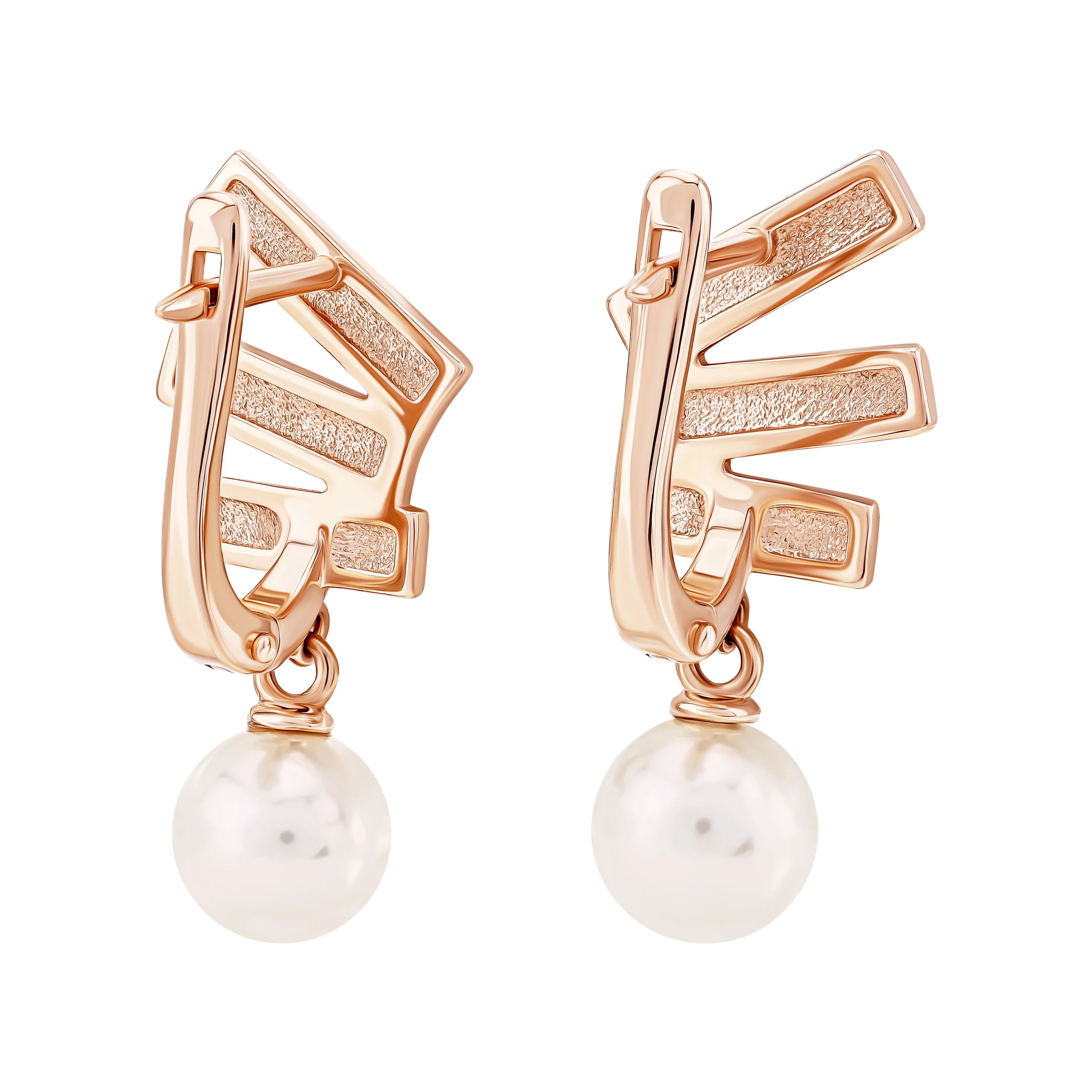Стильні сережки з підвісами в червоному золоті з перлами - 1980061