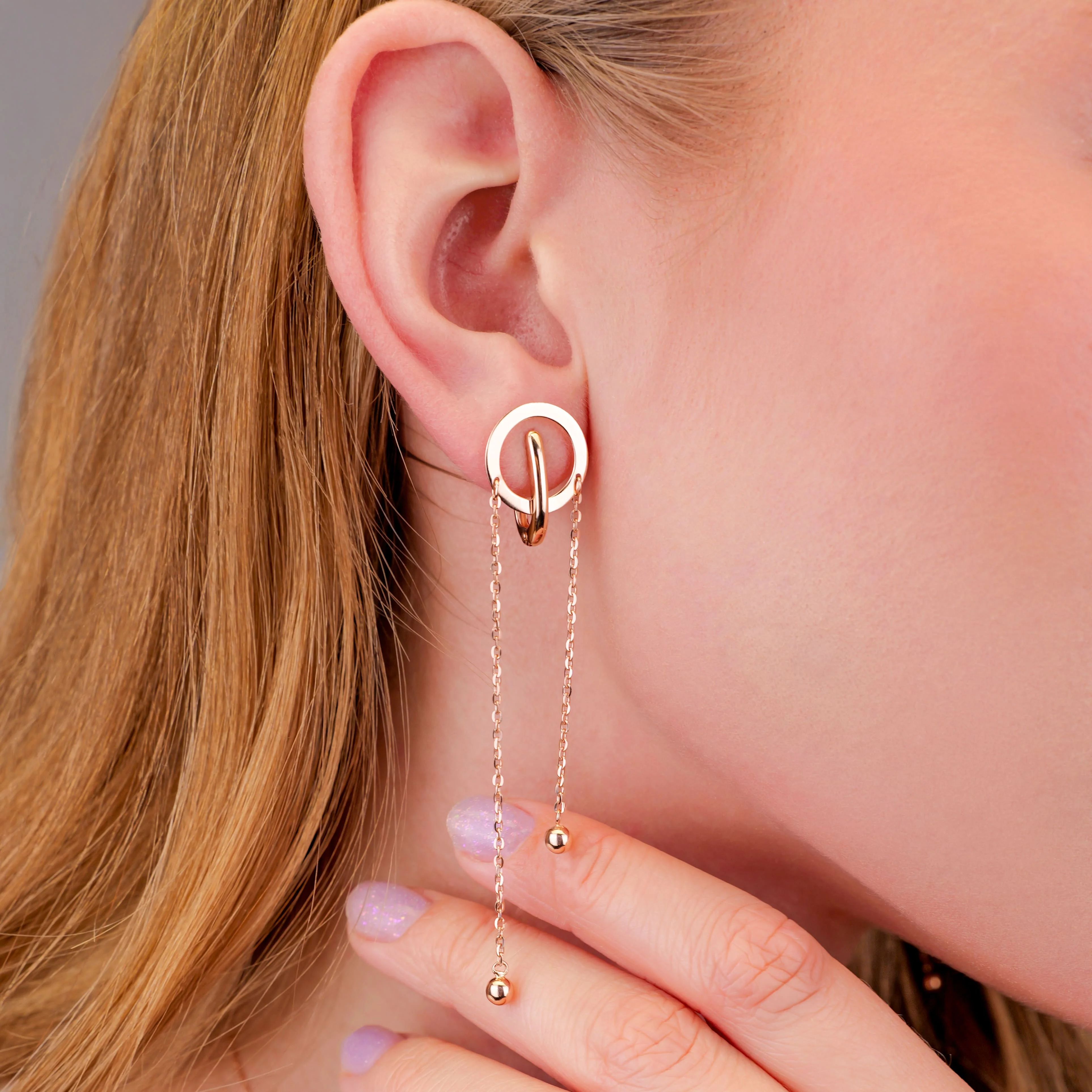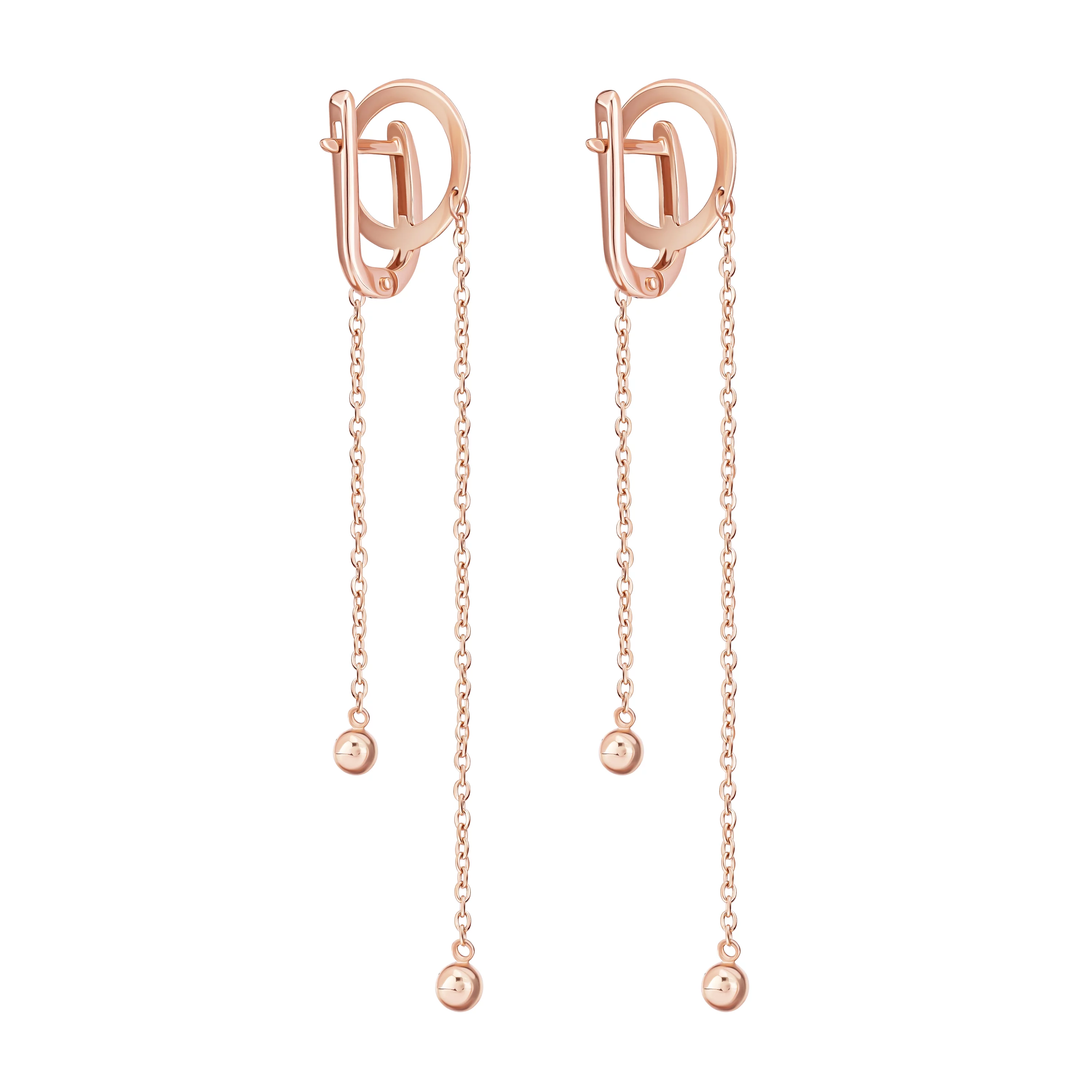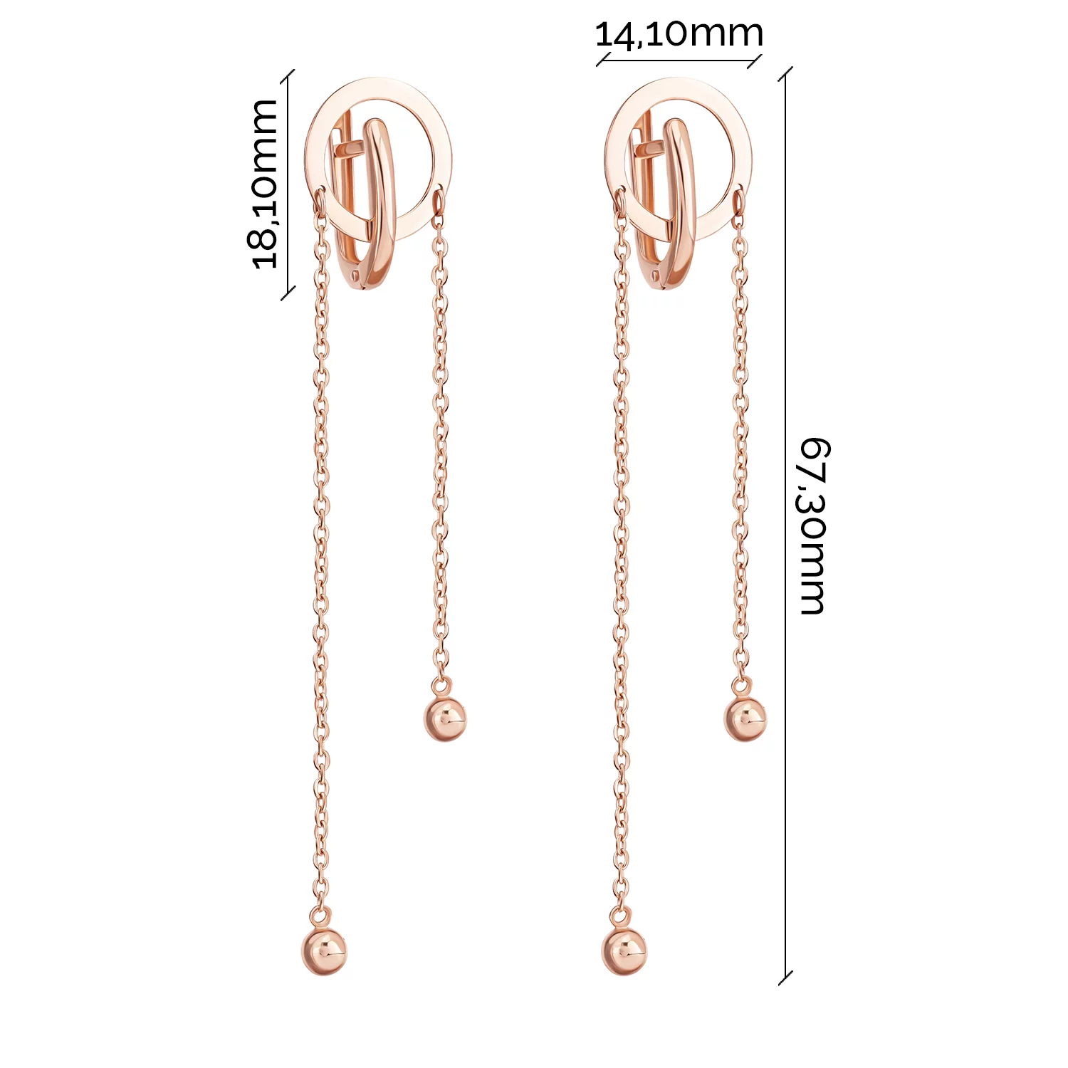 Елегантні сережки у геометричному стилі з підвісами з червоного золота - 1951622