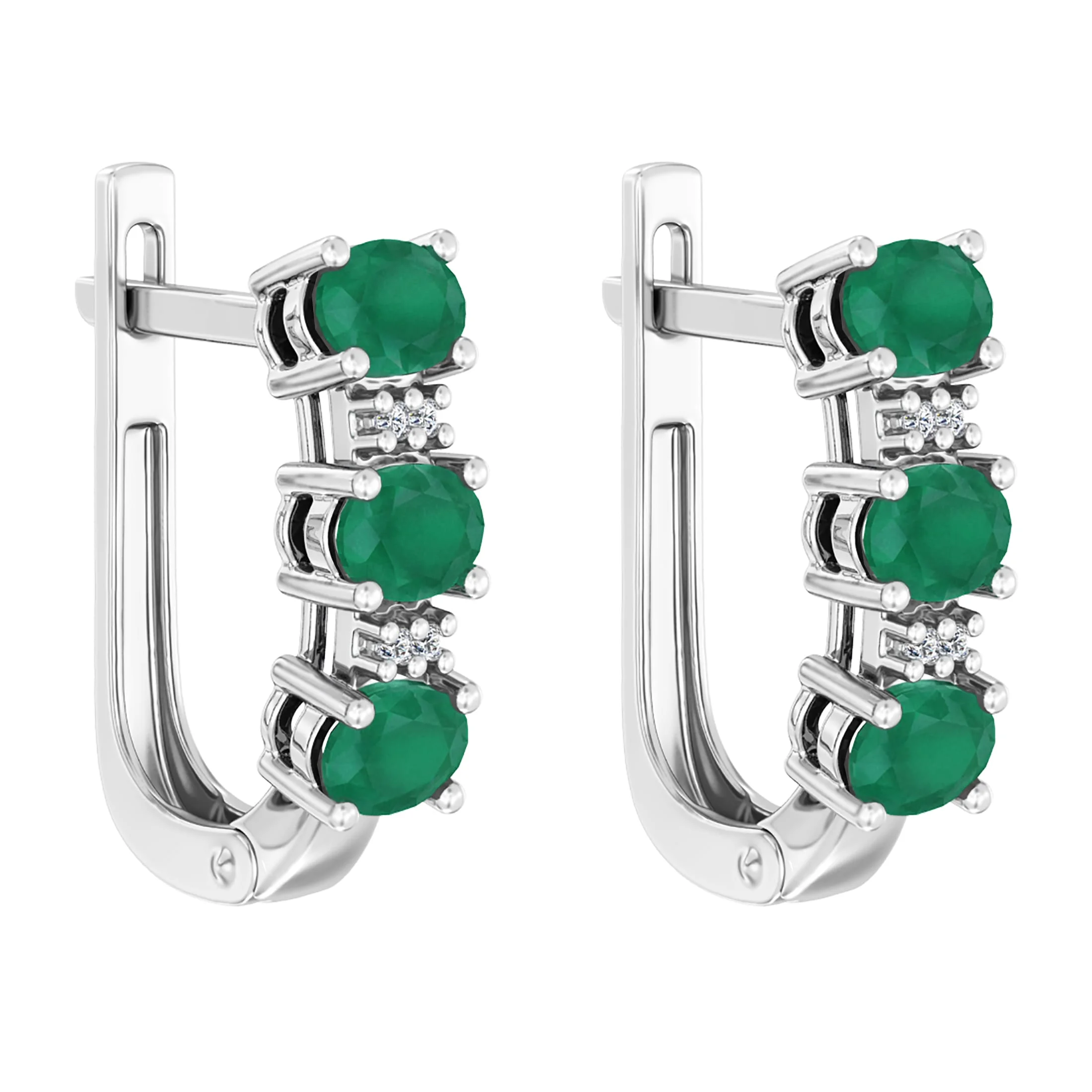 Стильні сережки в білому золоті зі смарагдами та діамантами - 1976151