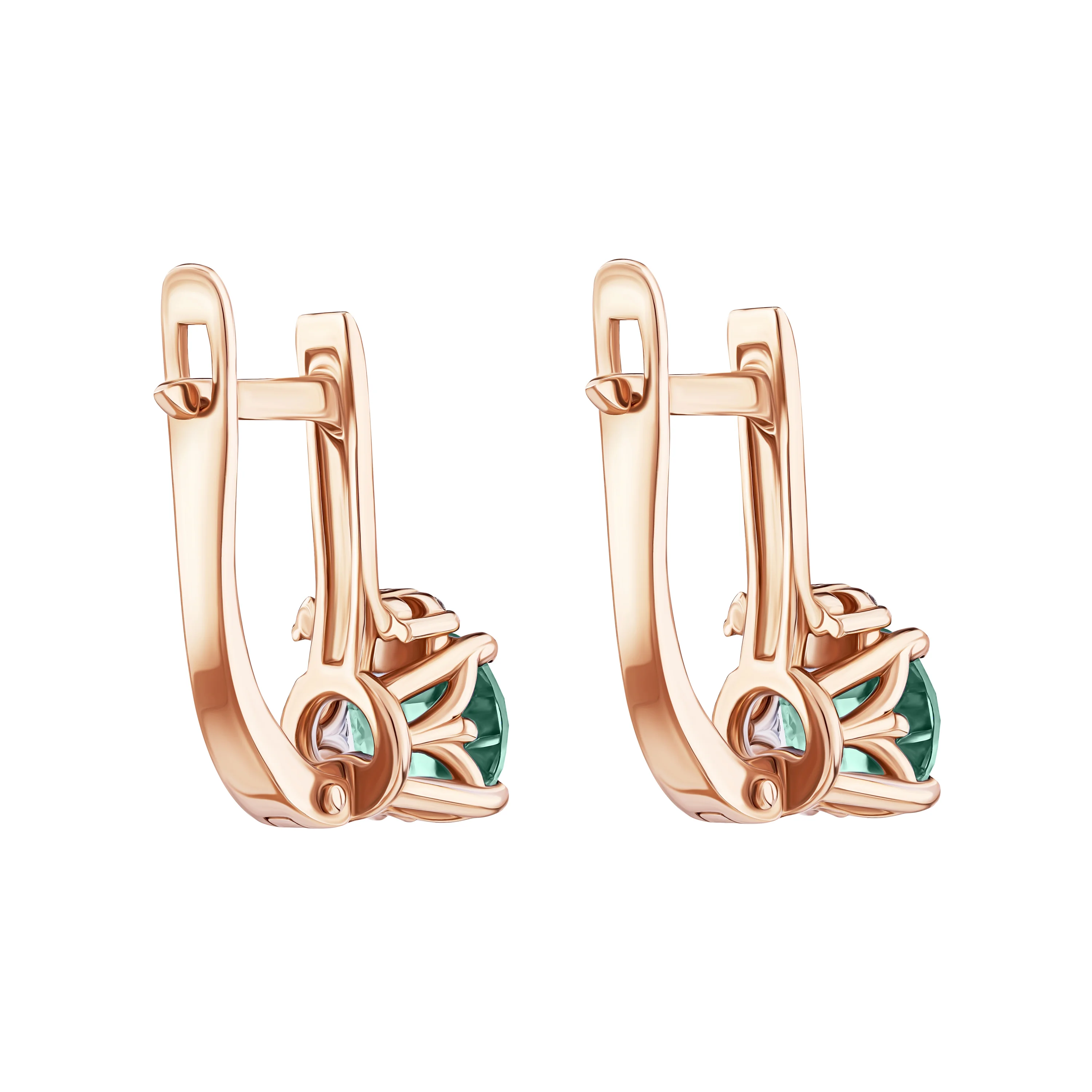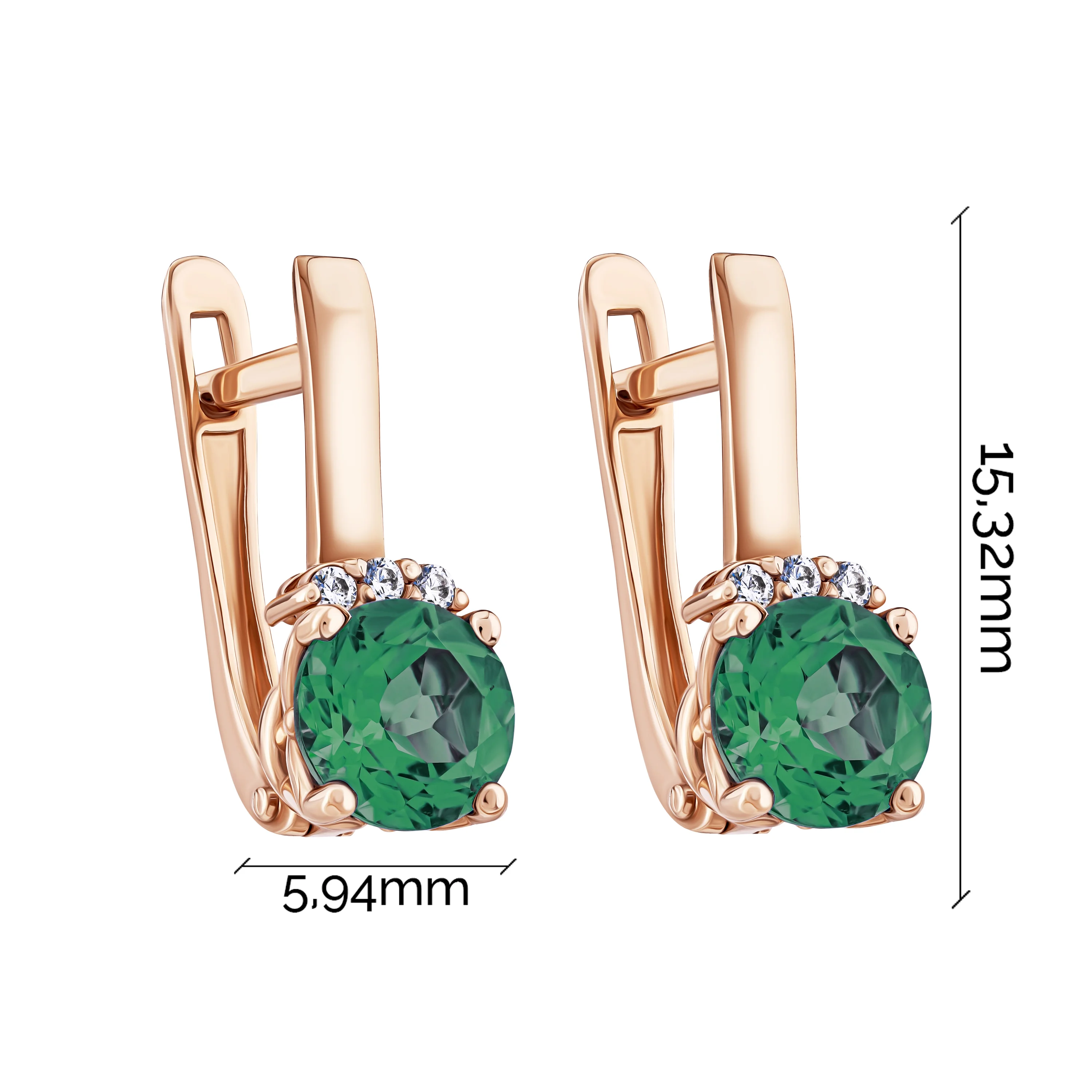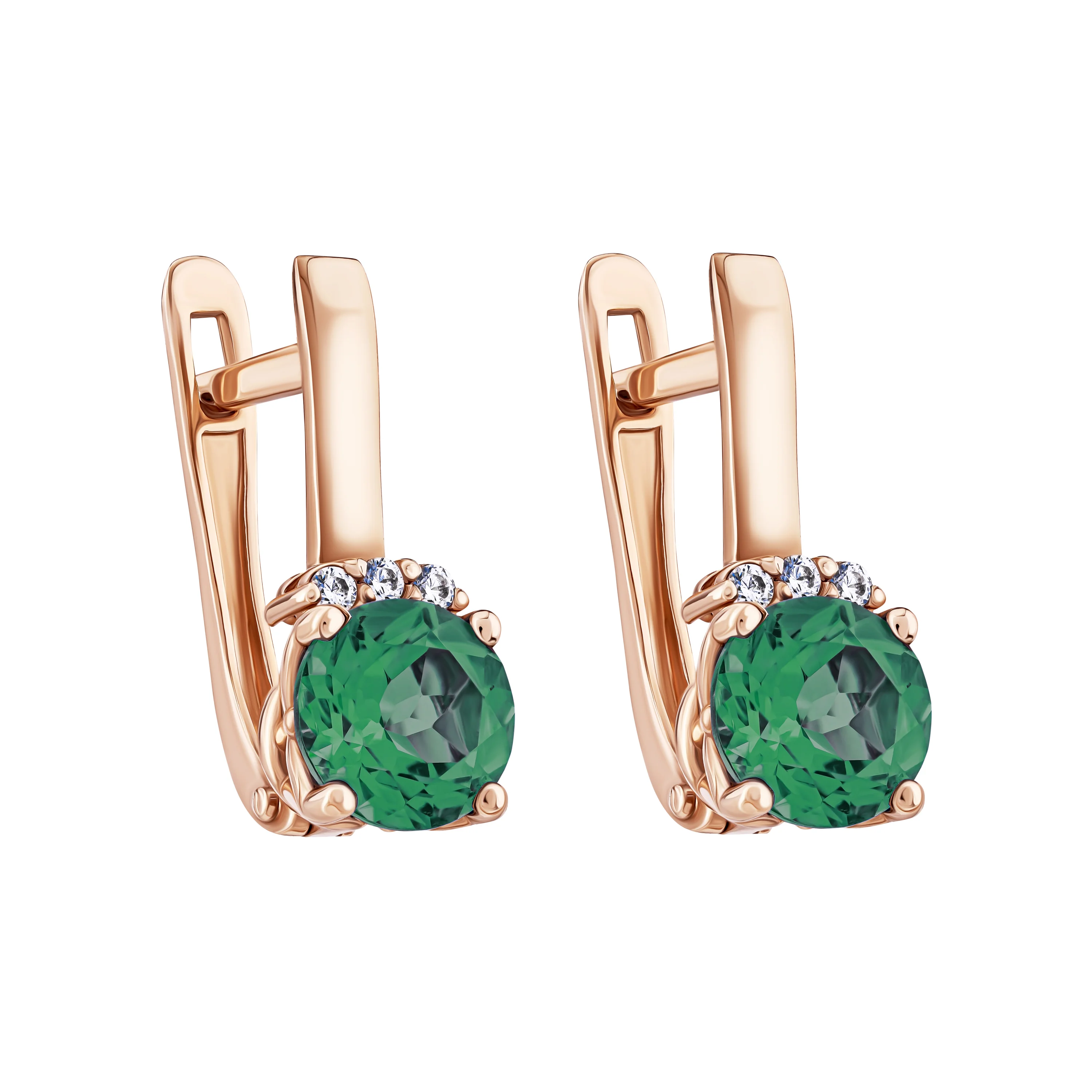 Стильні сережки у червоному золоті з фіанітами та турмалином - 1967344
