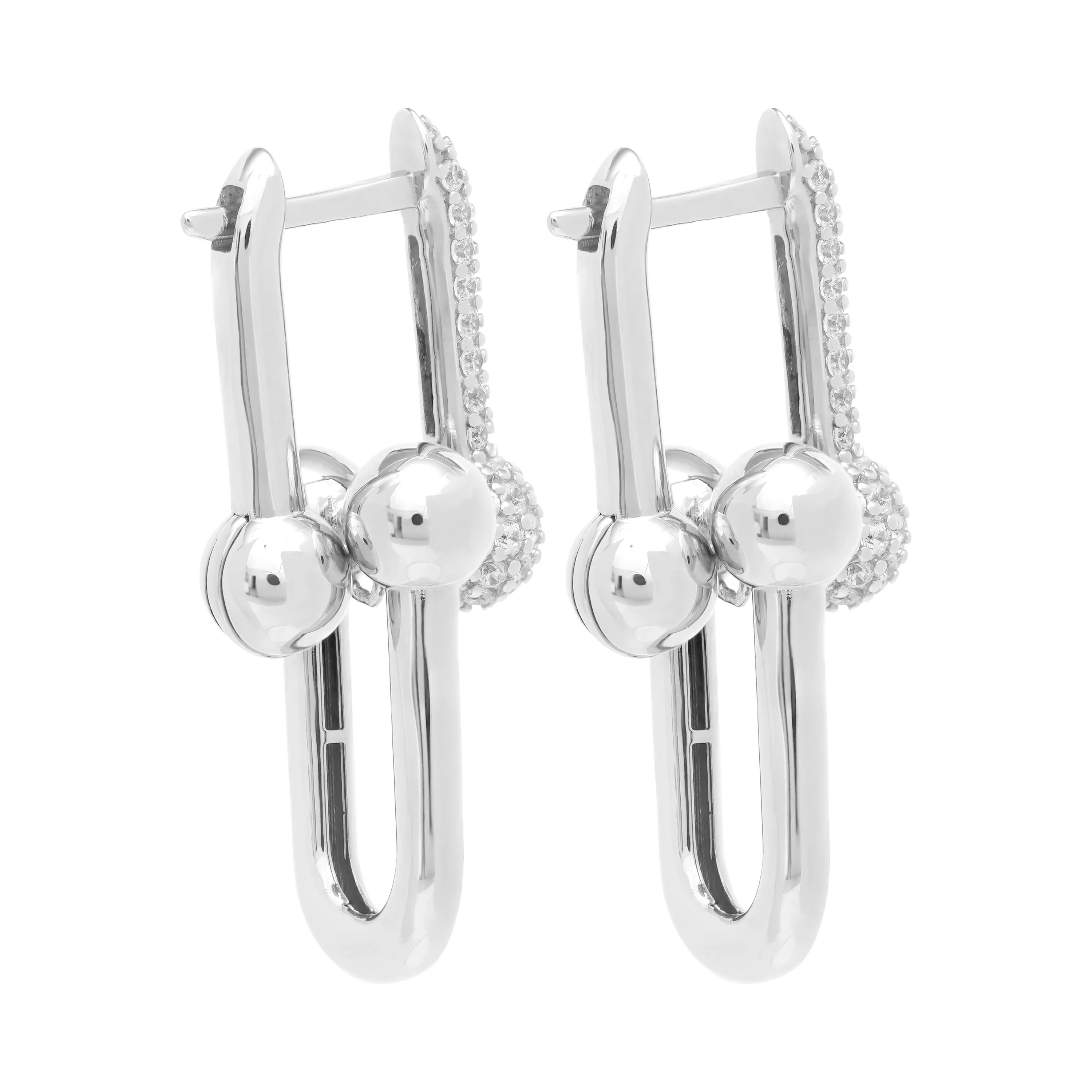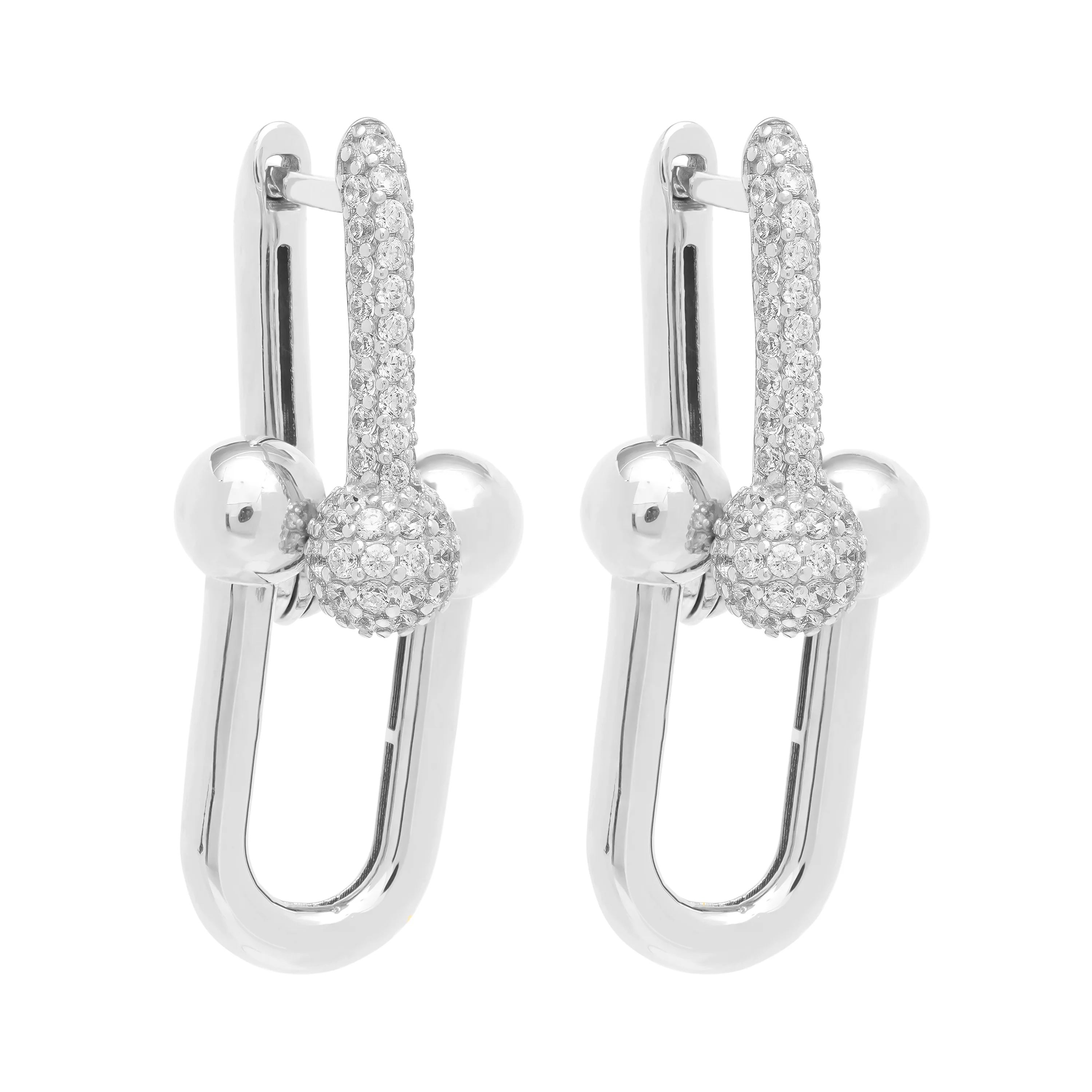 Стильні сережки "Ланки" в білому золоті з фіанітами - 1984564