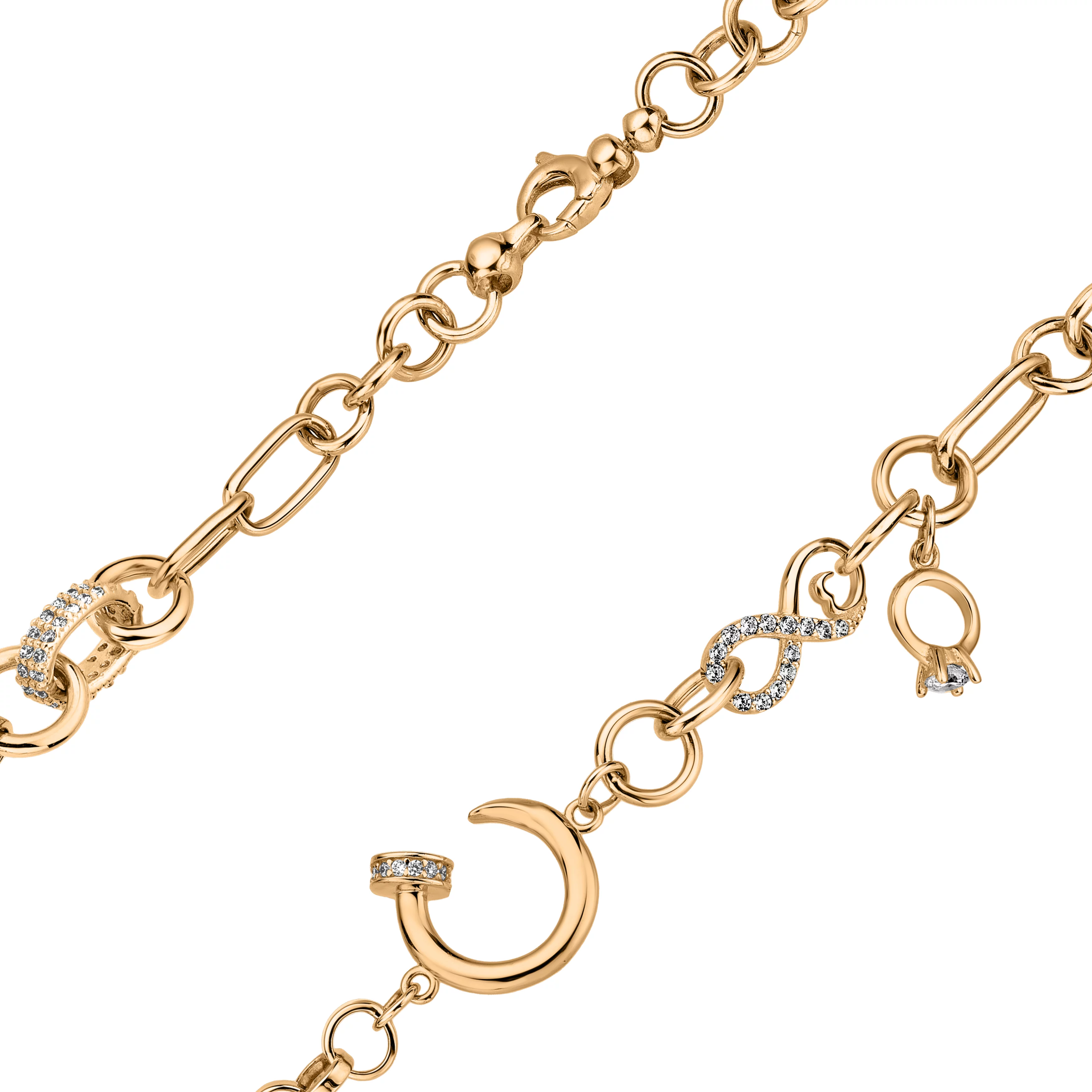 Браслет з червоного золота "Нескінченність" з фіанітами якірне плетіння - 1698653