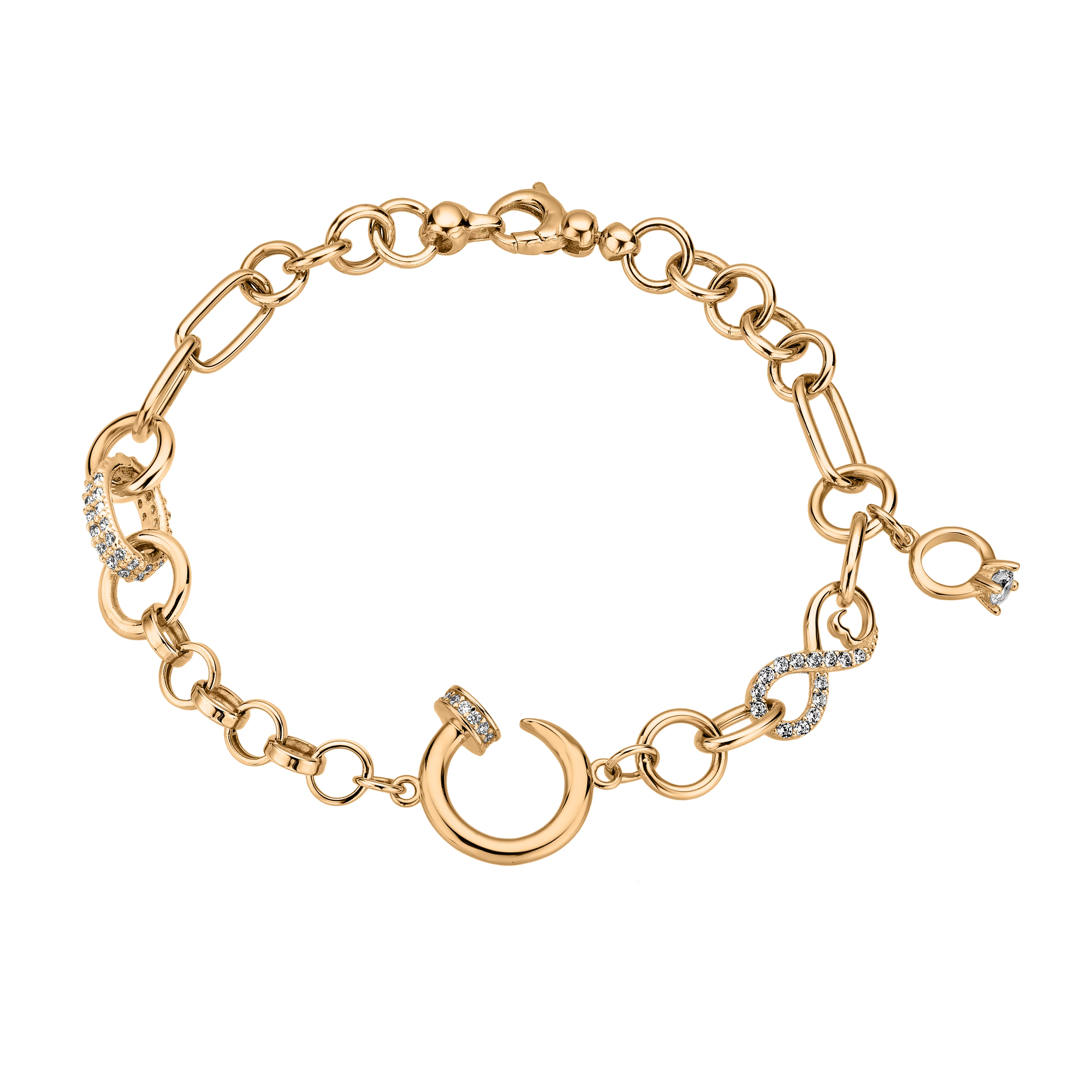 Браслет із червоного золота з підвісами з розсипом фіанітів і плетінням якір та шопард - 1856608