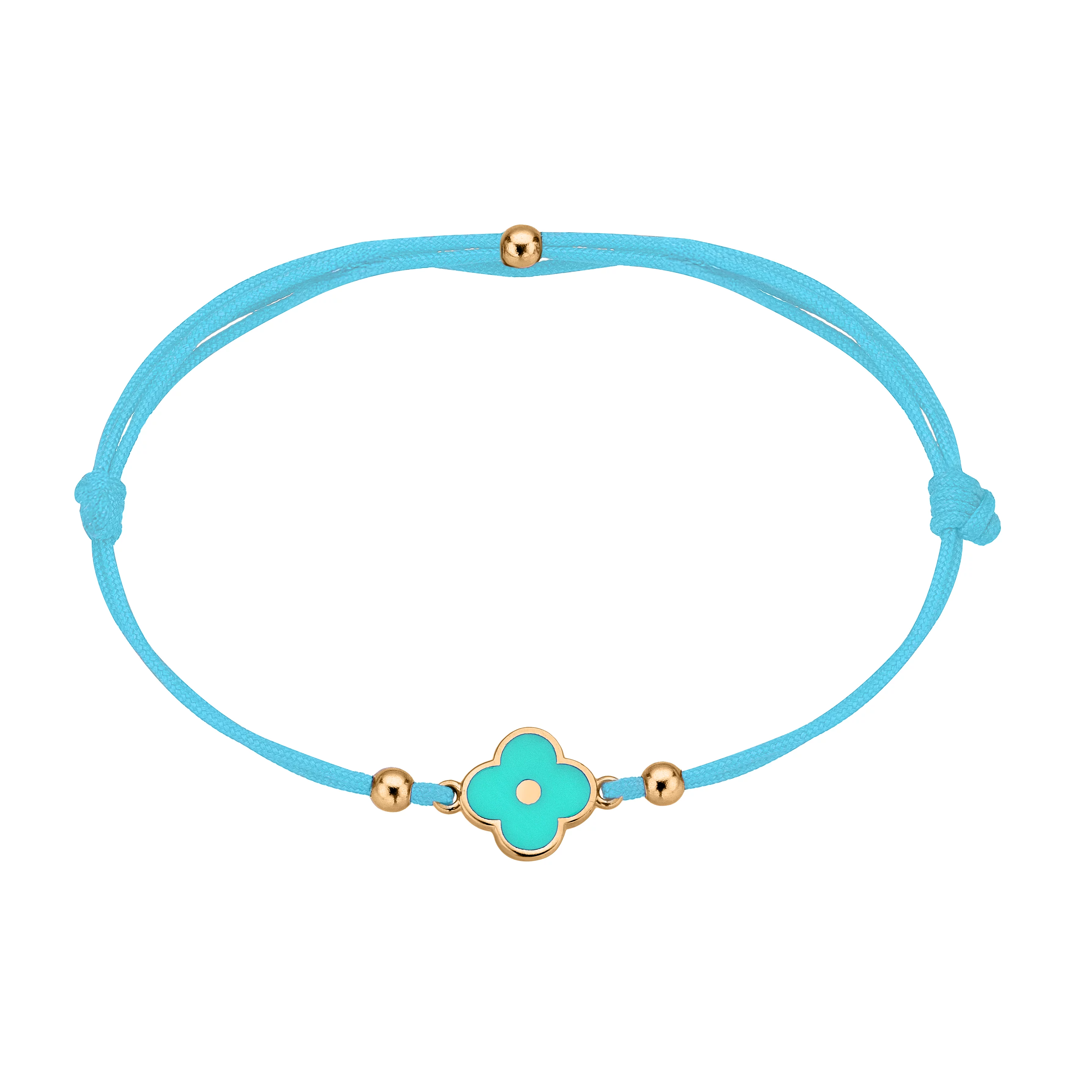 Браслет "Конюшина" зі вставкою з червоного золота з шовковою ниткою та емаллю - 1858273