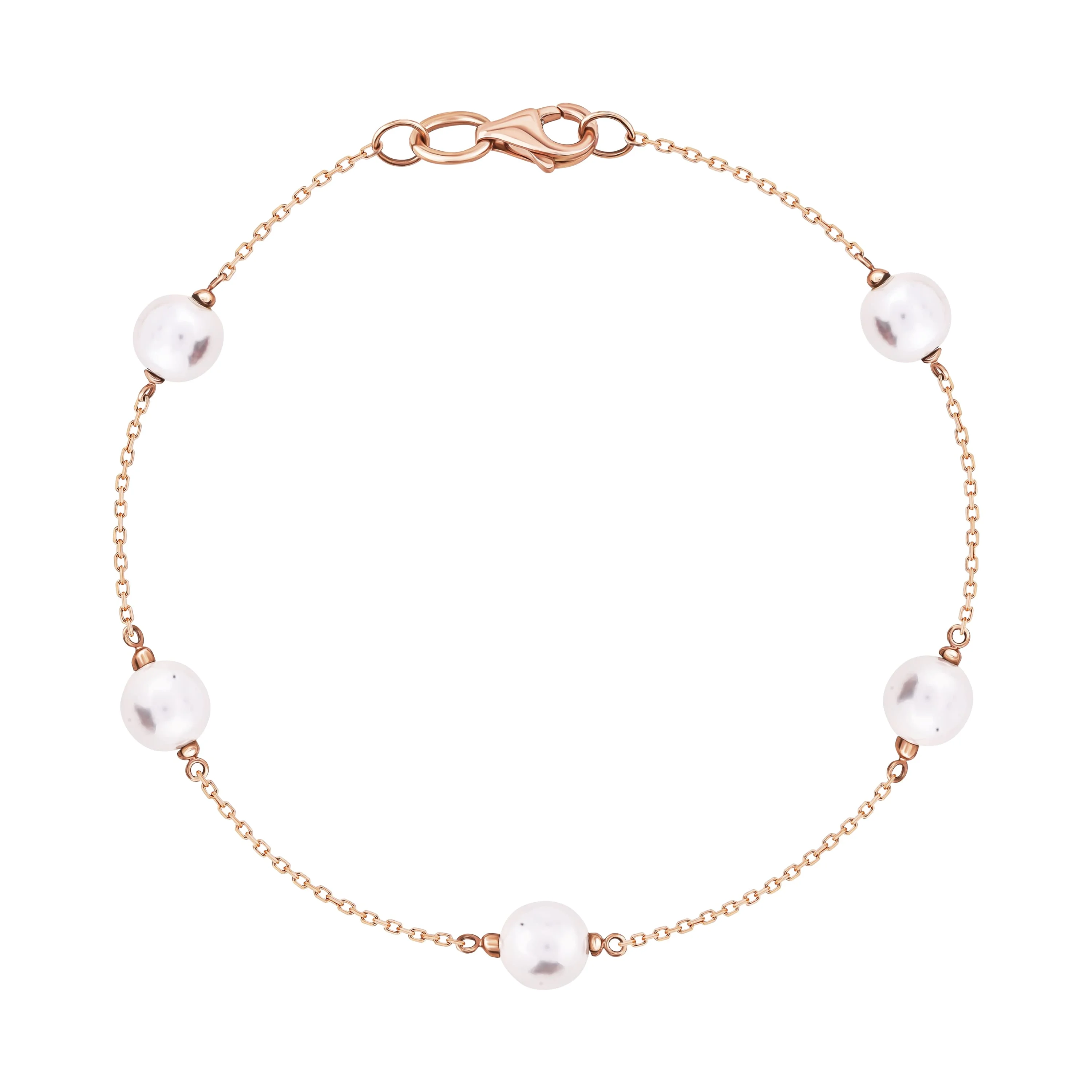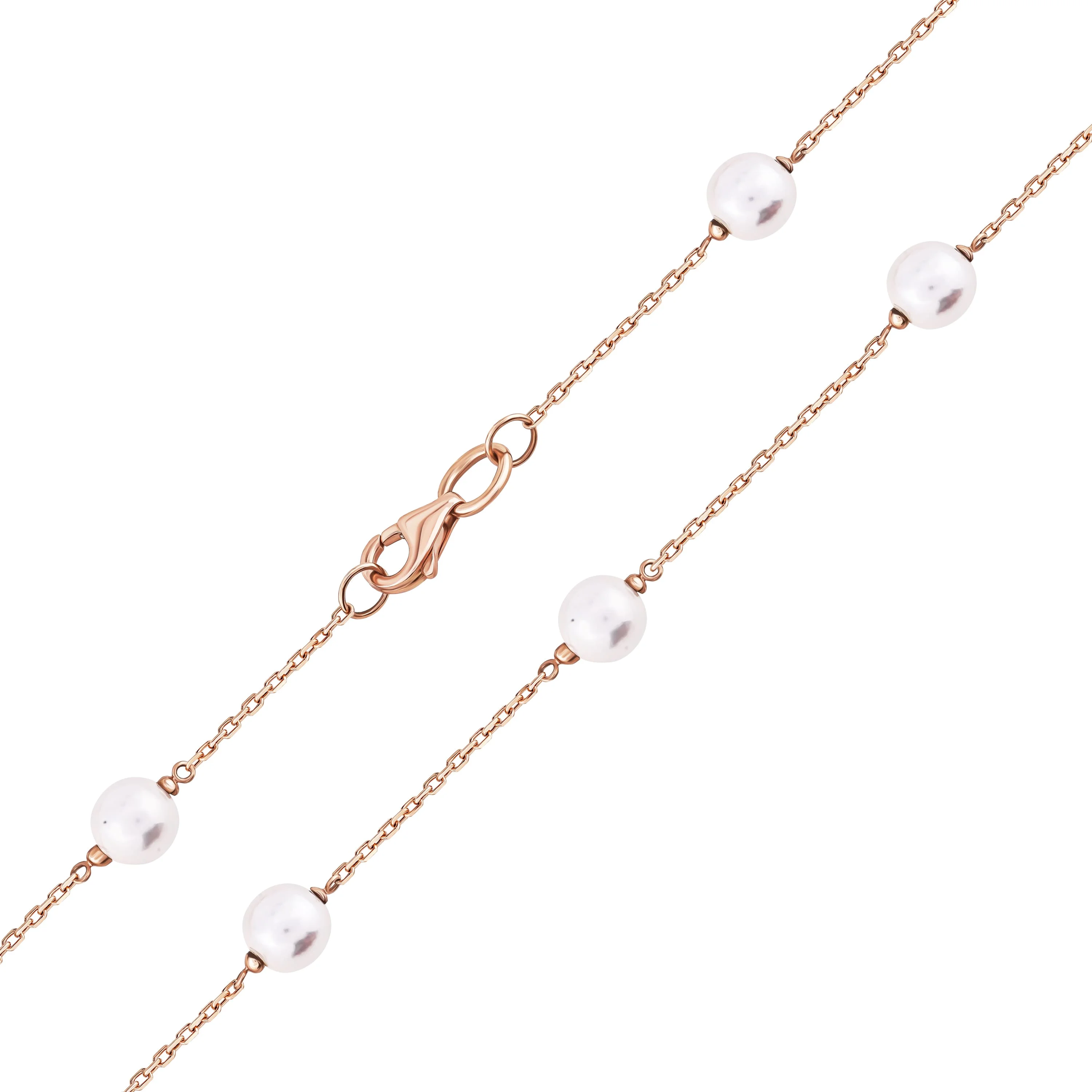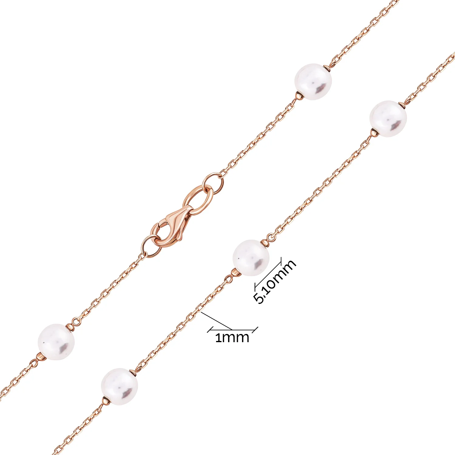 Стильний браслет у червоному золоті з перлинами та плетінням якір - 1969426
