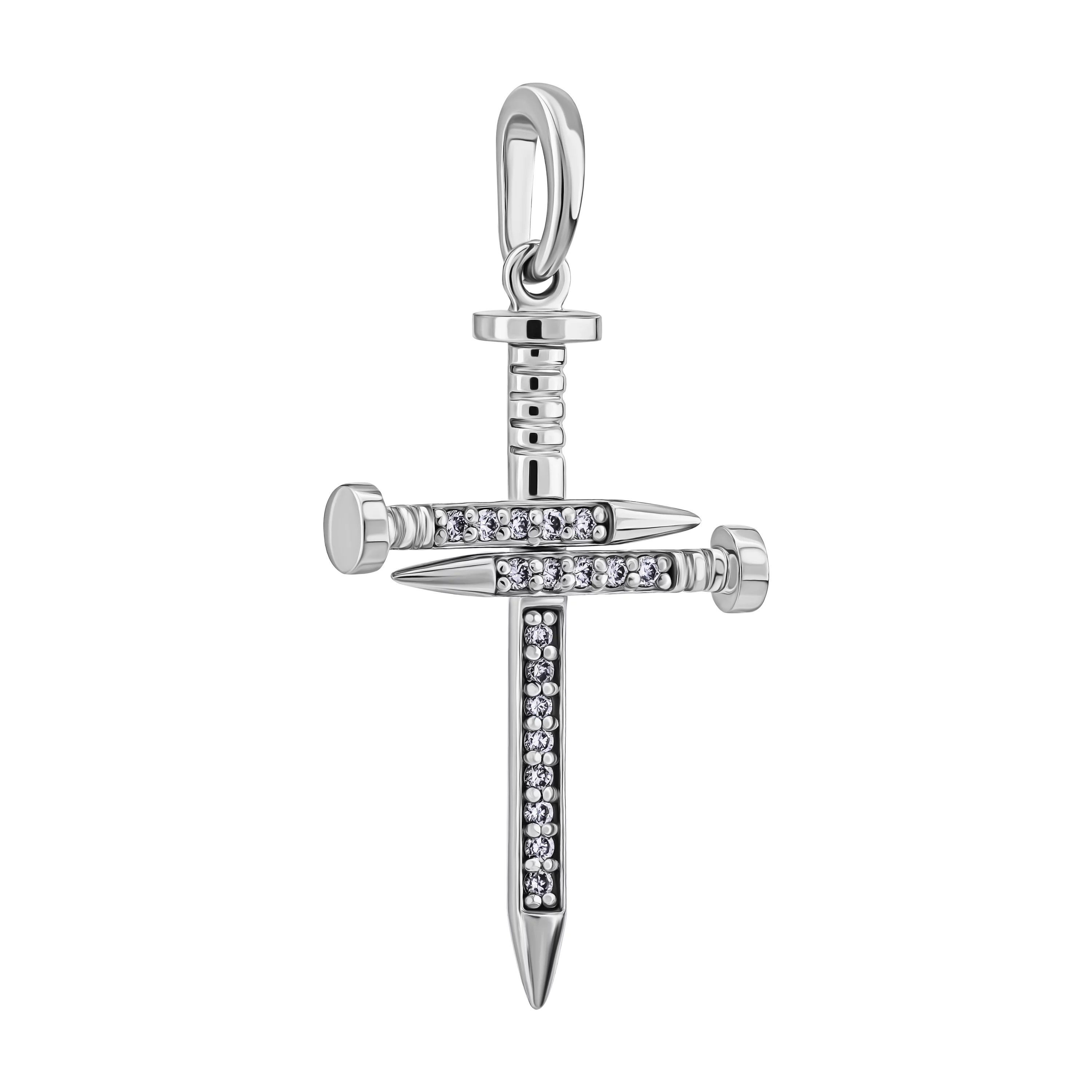 Стильний декоративний подвійний хрестик із червоного золота з діамантами - 1919553