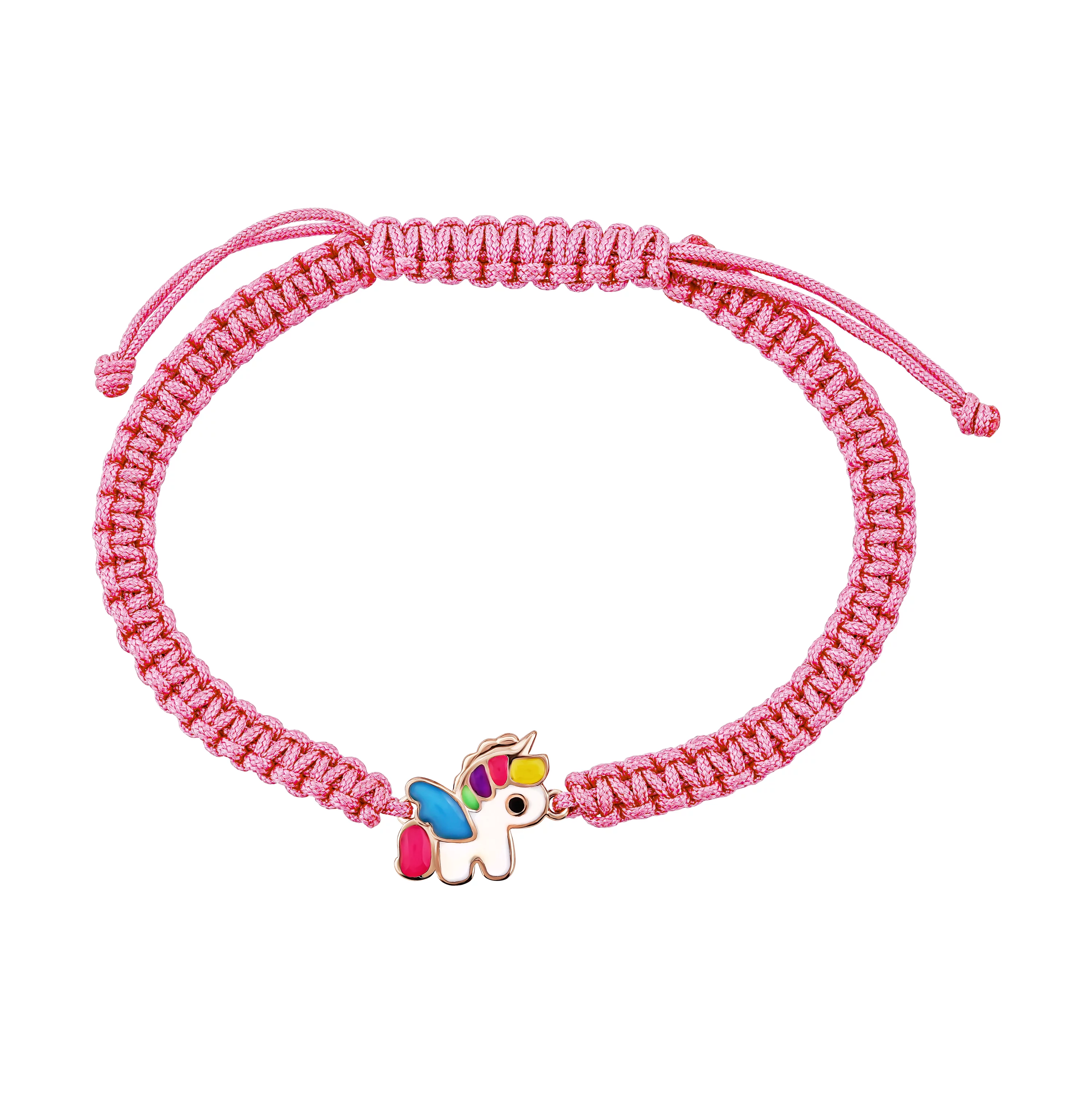 Дитячий шовковий браслет з підвісом "Пташка" з червоного золота, фіанітом та емаллю - 1965099