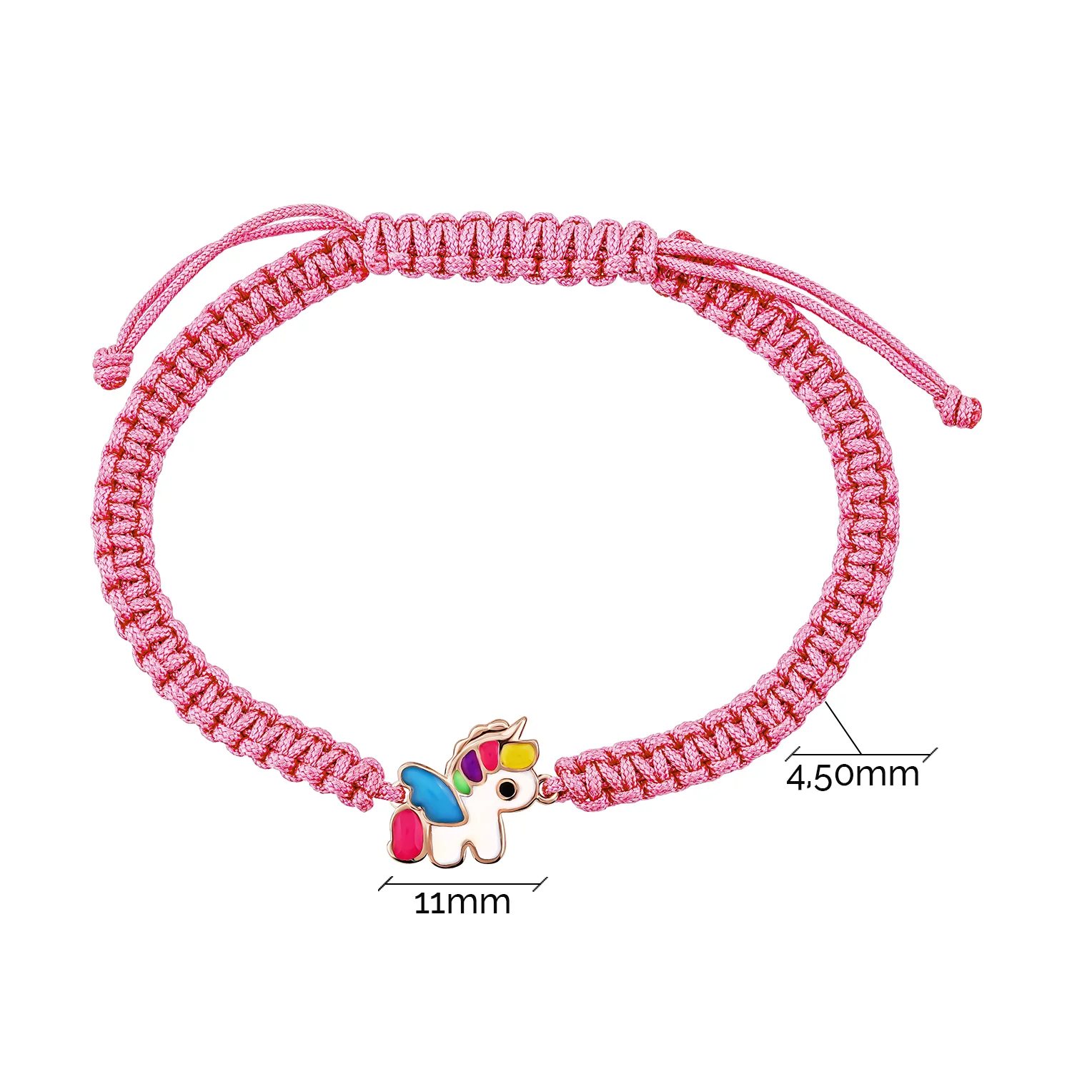 Стильний дитячий шовковий браслет з підвісом "Мишка" з червоного золота та емаллю - 1964849