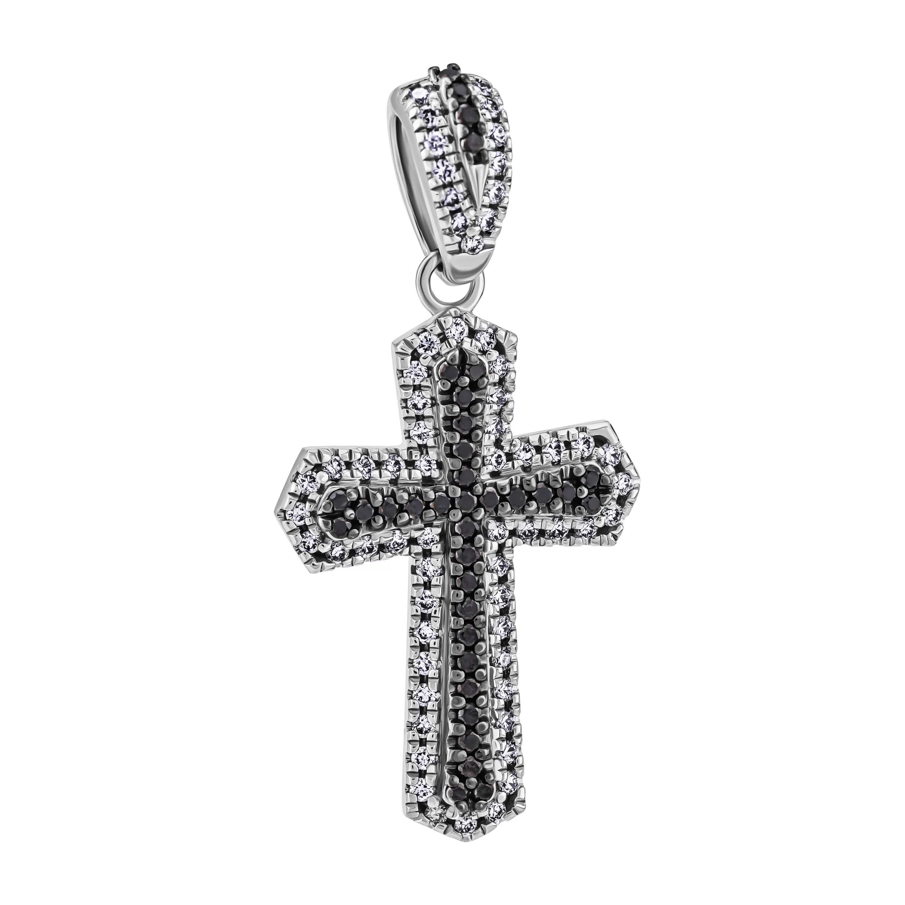 Стильний декоративний подвійний хрестик із червоного золота з діамантами - 1919553