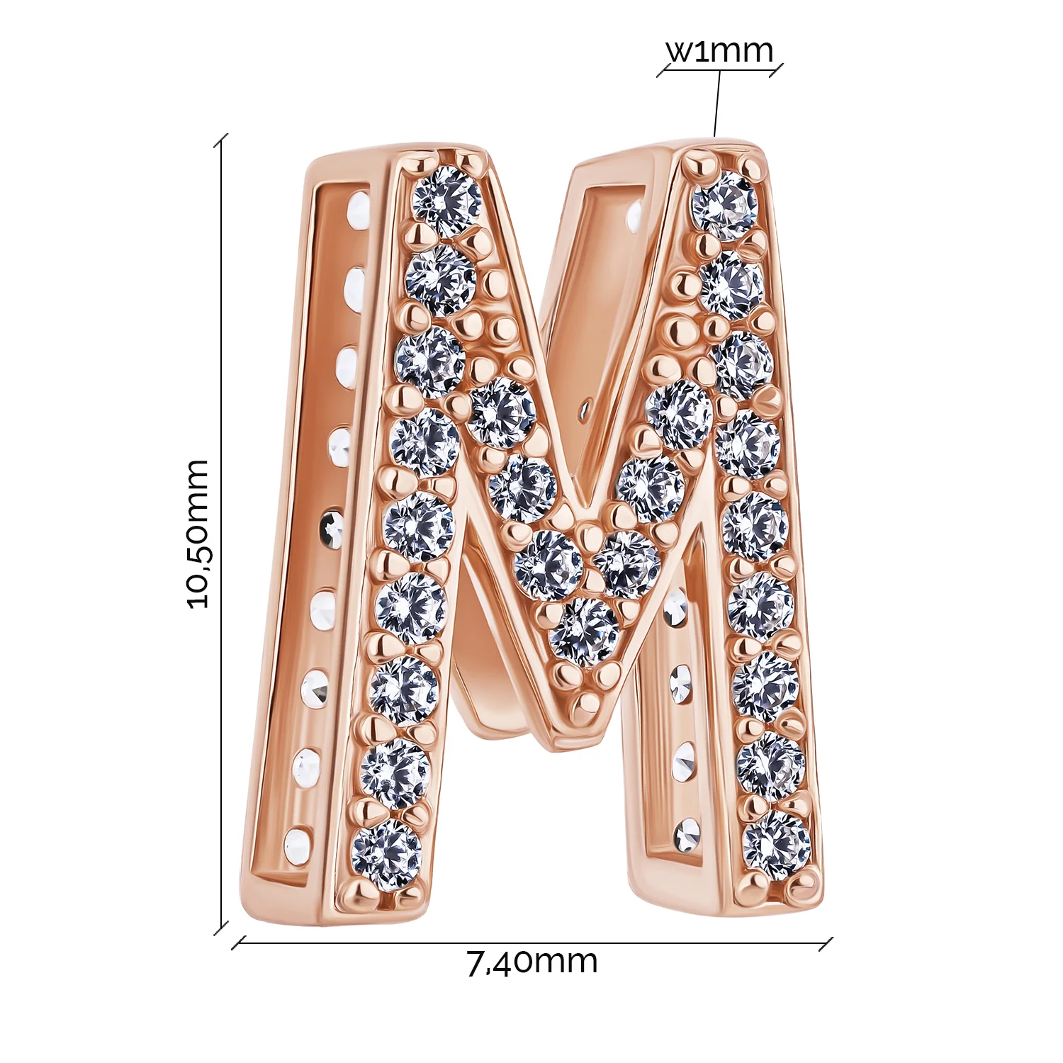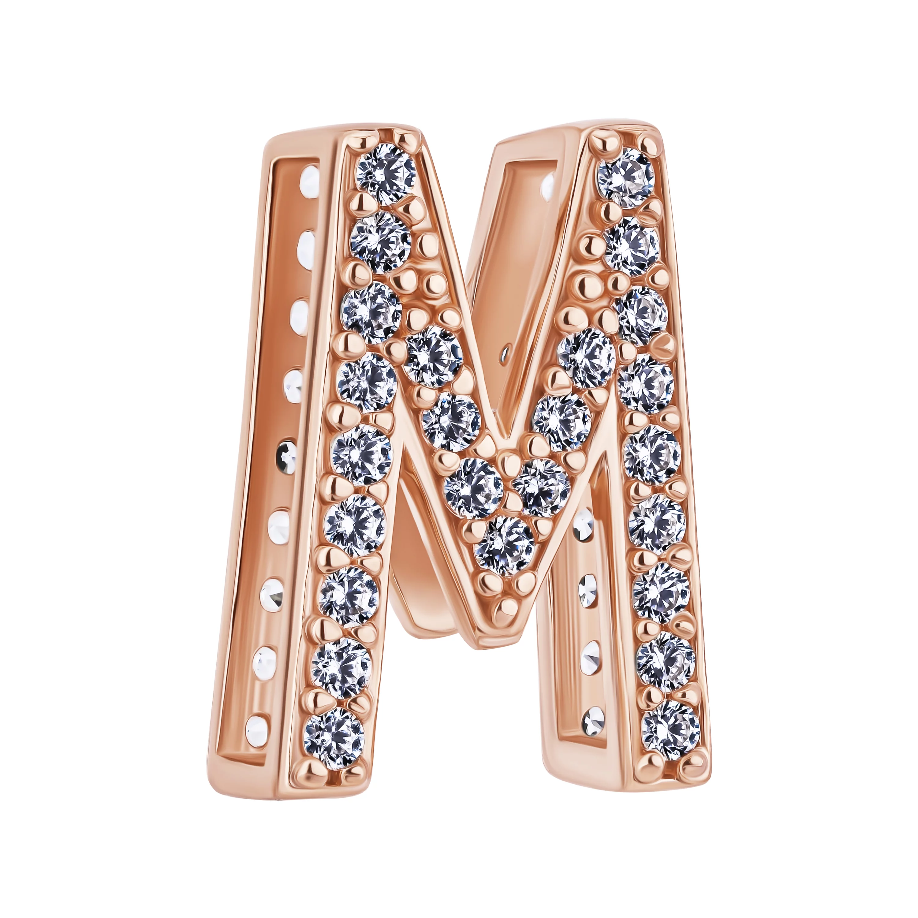 Стильний підвіс "Літера А" із червоного золота з доріжкою з фіанітів - 1878647