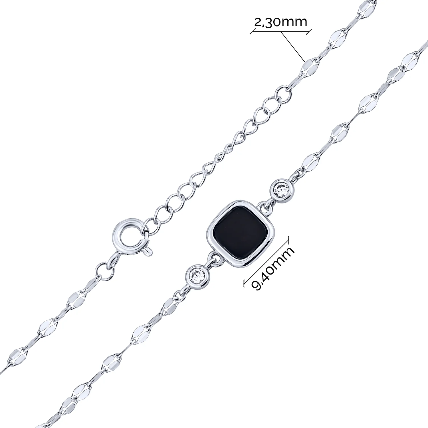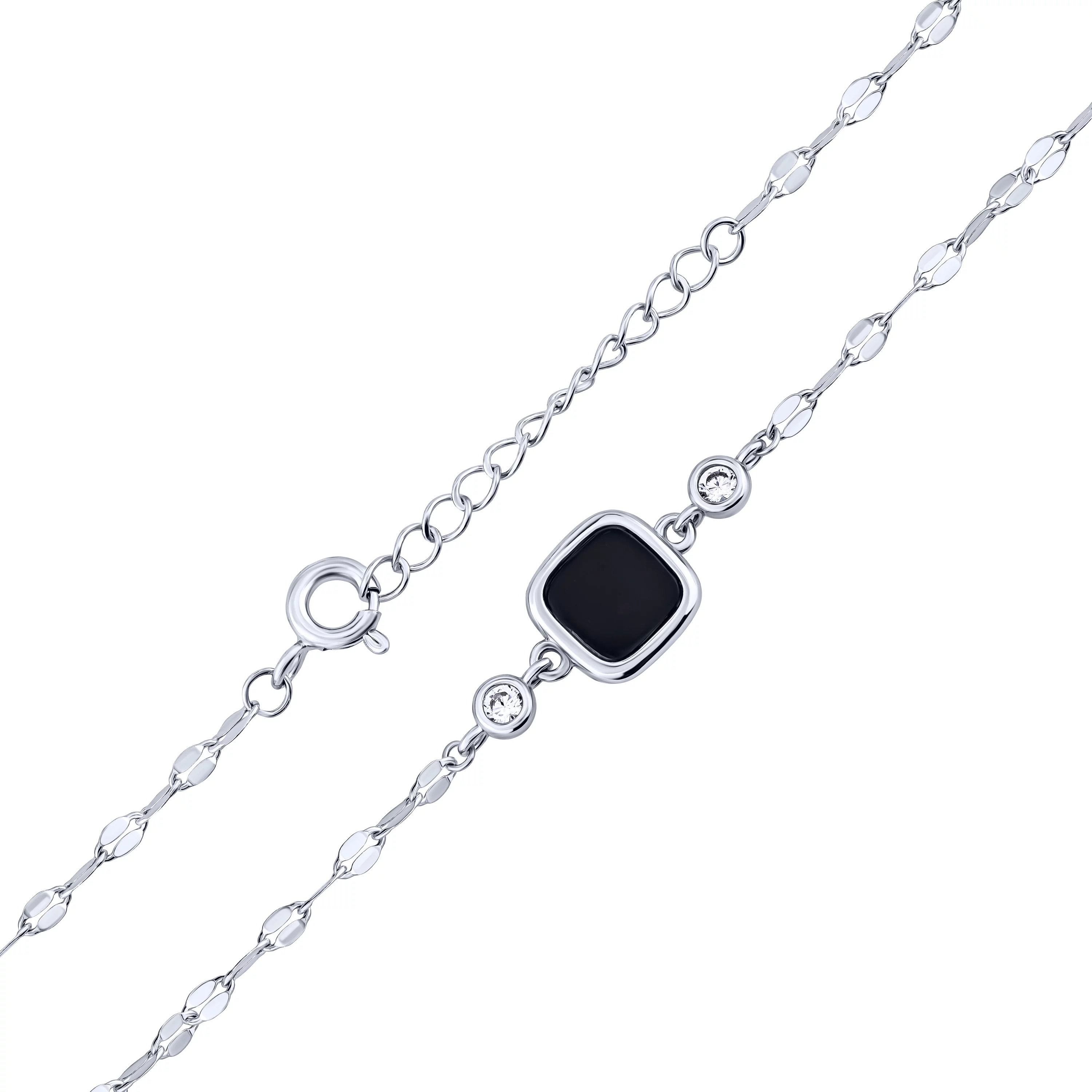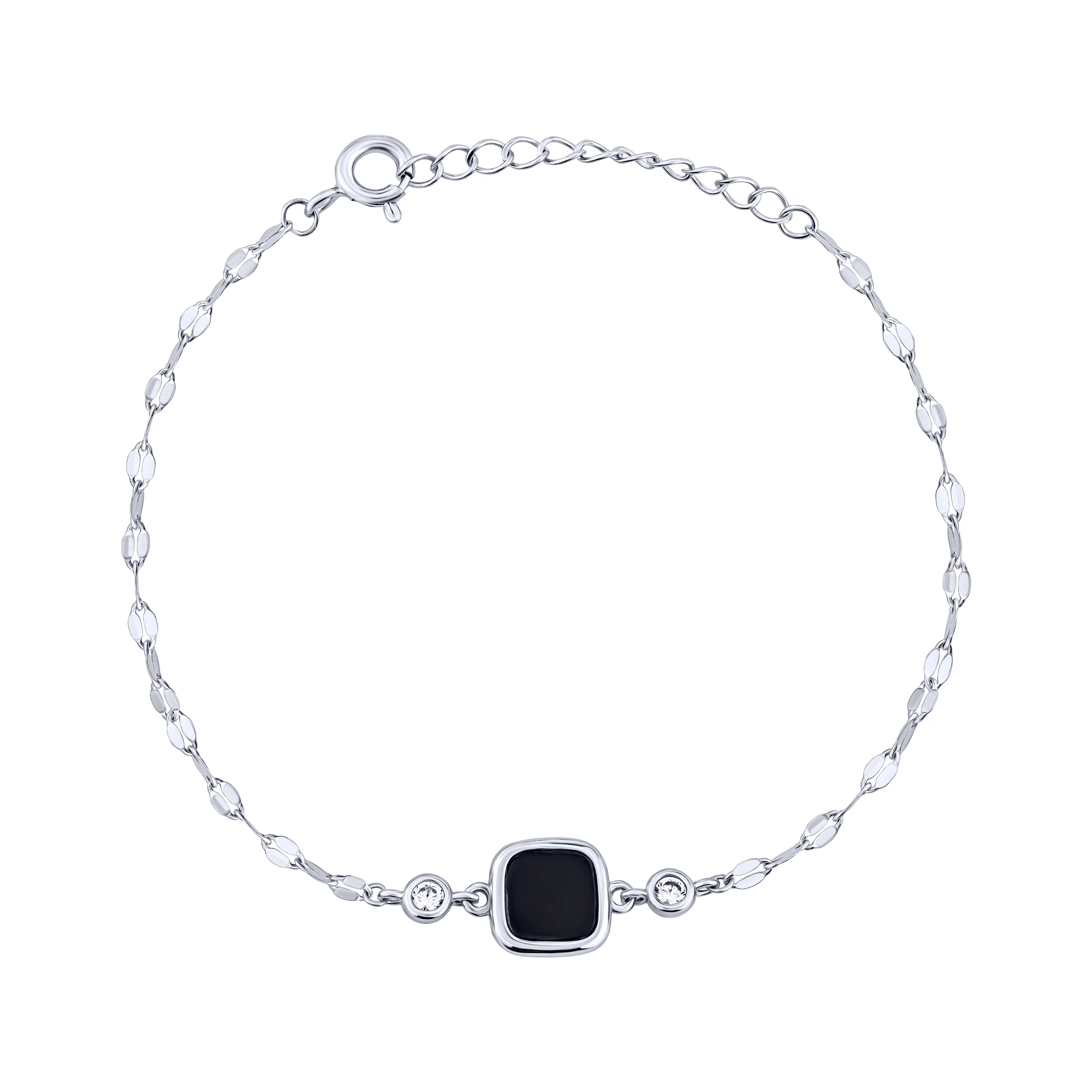 Стильний срібний браслет "Квадрат" з оніксом, фіанітами та плетінням якір - 1964257