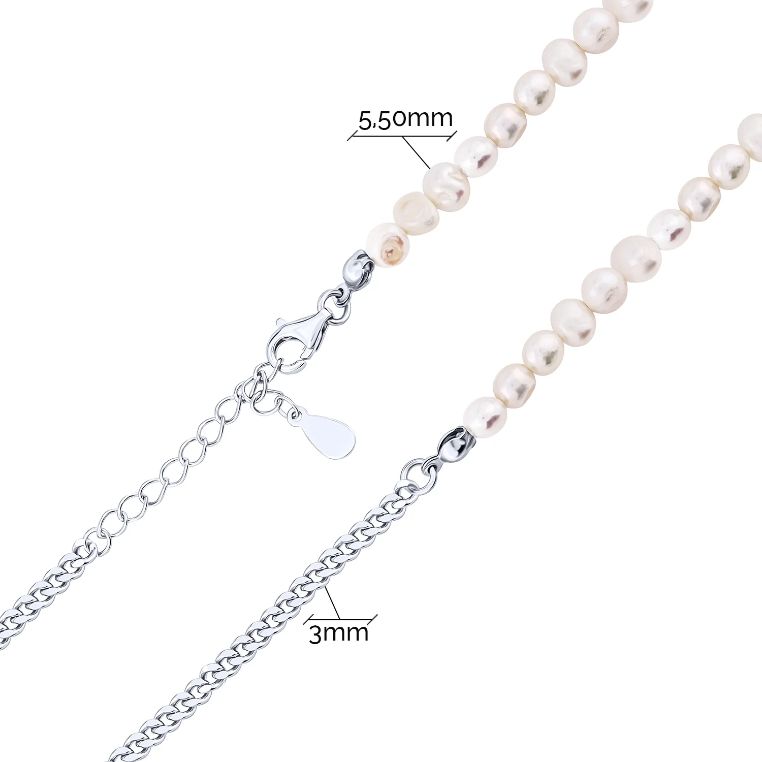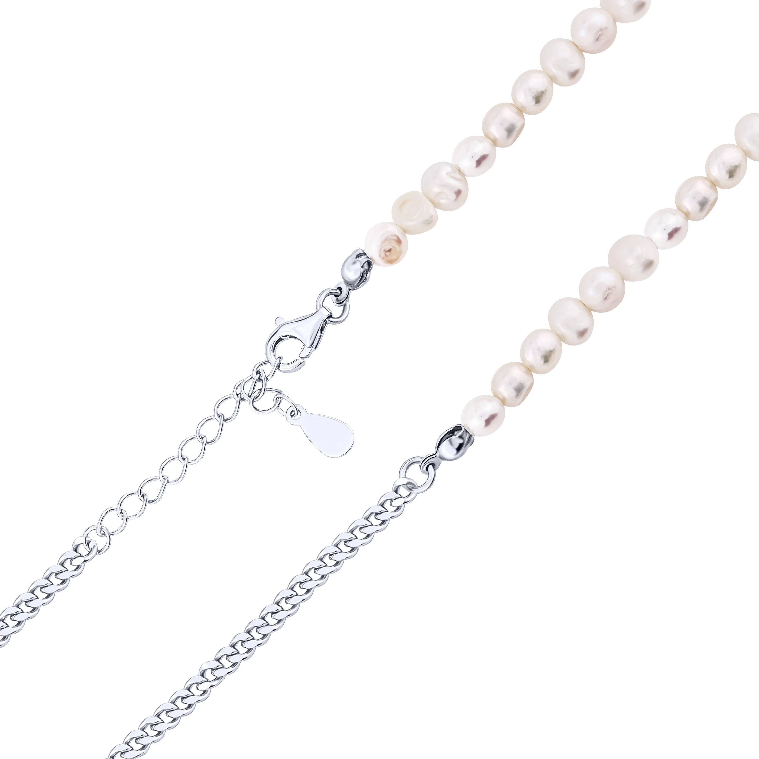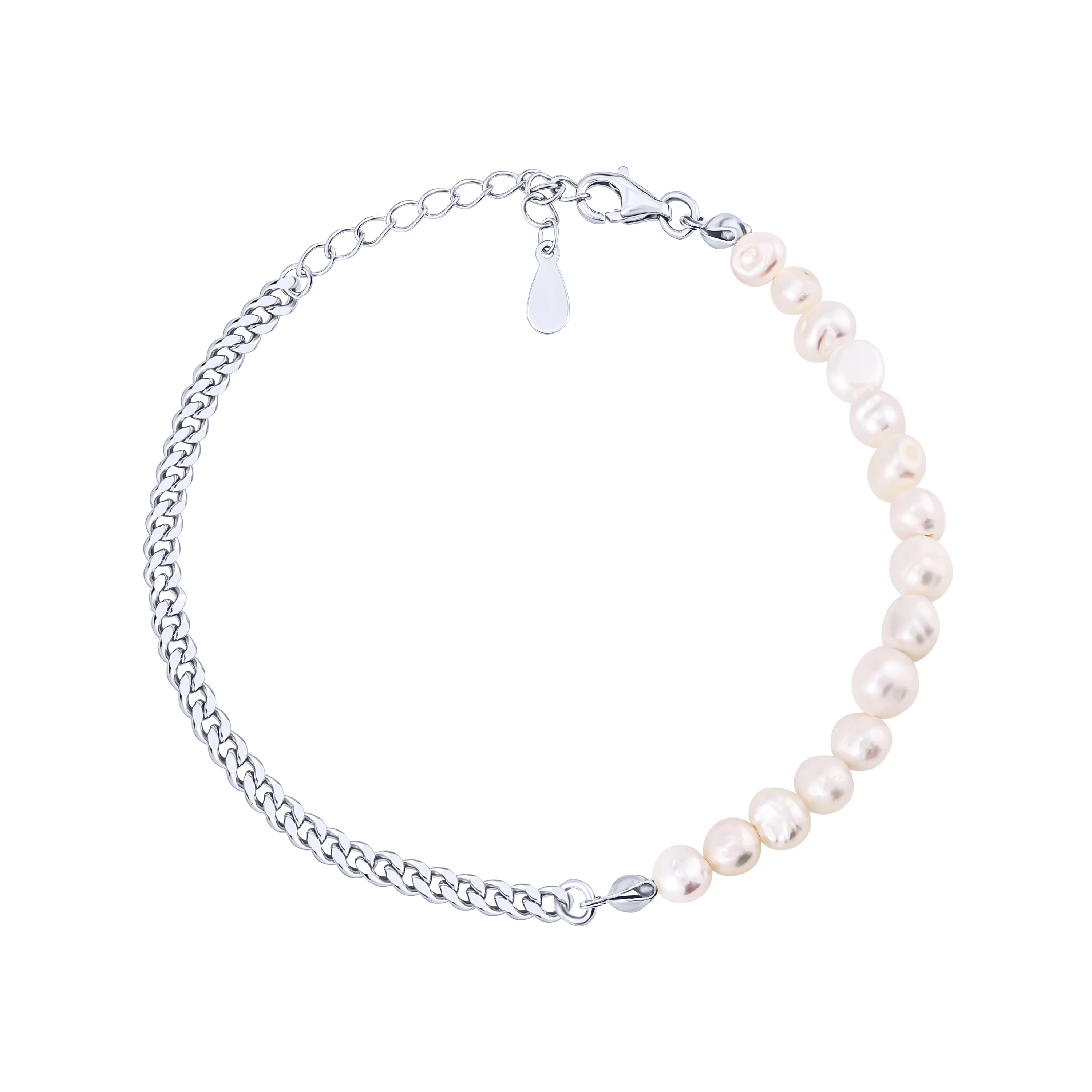 Браслет з срібла у геометричному стилі з перлинами та плетінням якір - 1964258
