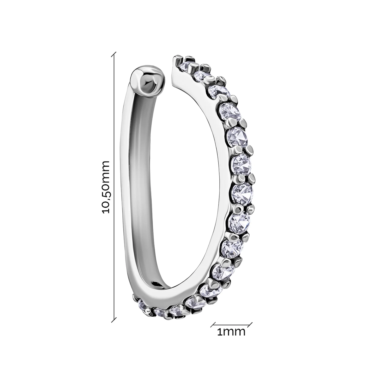 Стильний срібний пірсинг у ніс з доріжкою фіанітів - 1964713