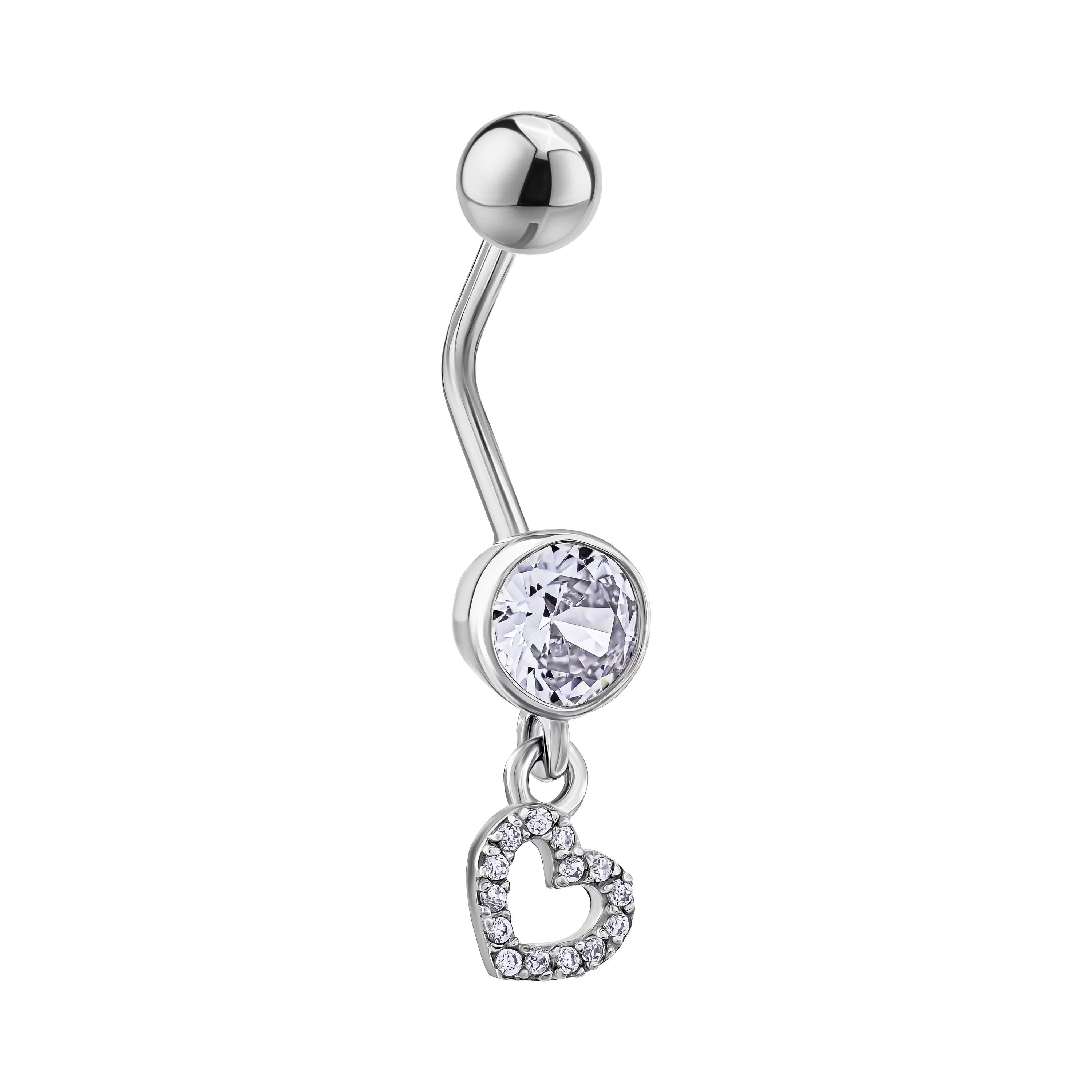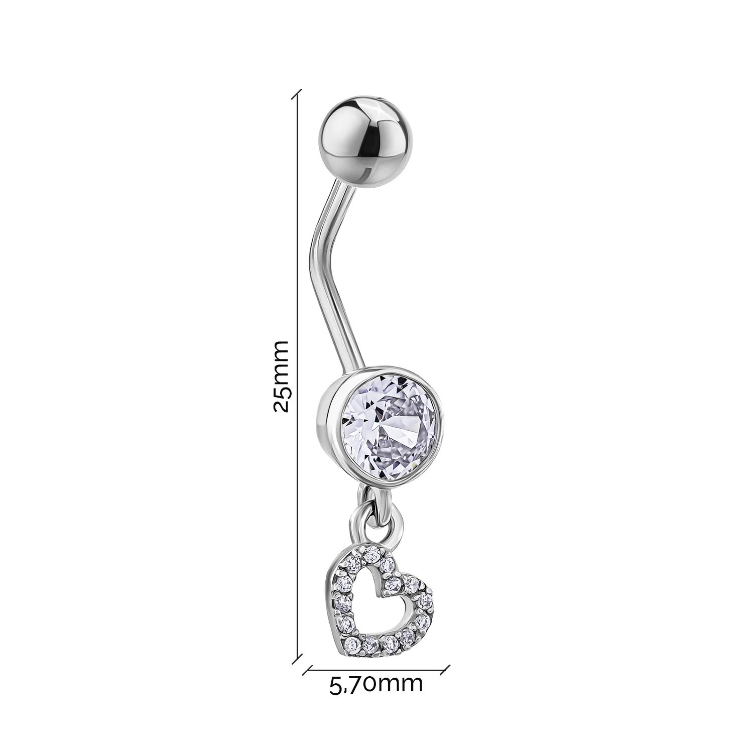 Срібні сережки-кільця з підвісом "Сердечко" з емаллю та фіанітами - 1683297