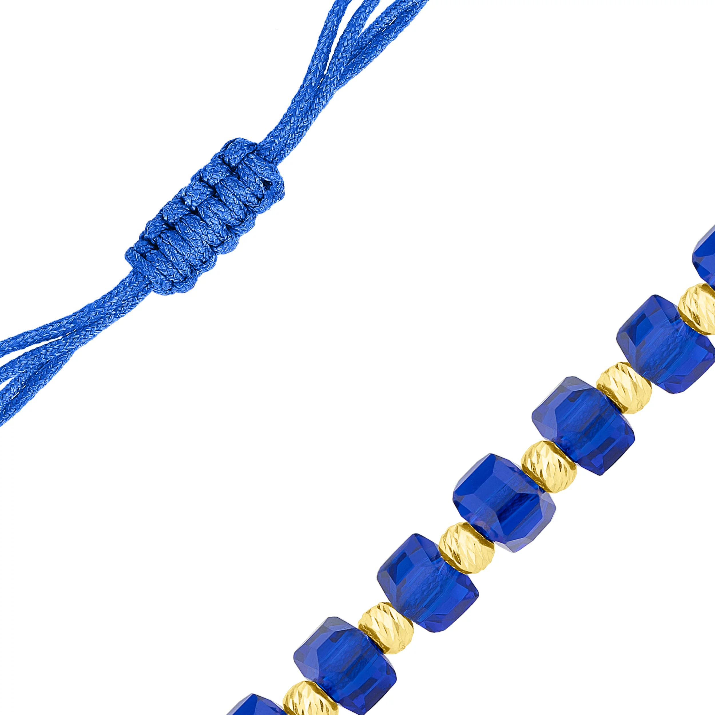 Шовковий браслет "Кулі" з вставками із срібла з жовтим родіюванням з алмазною гранню та фіанітами - 1962693