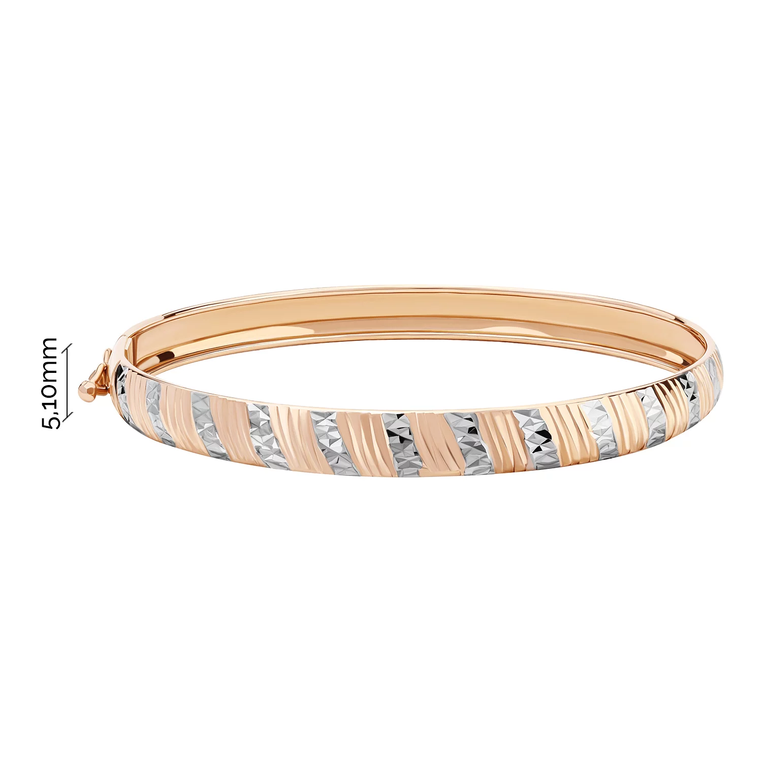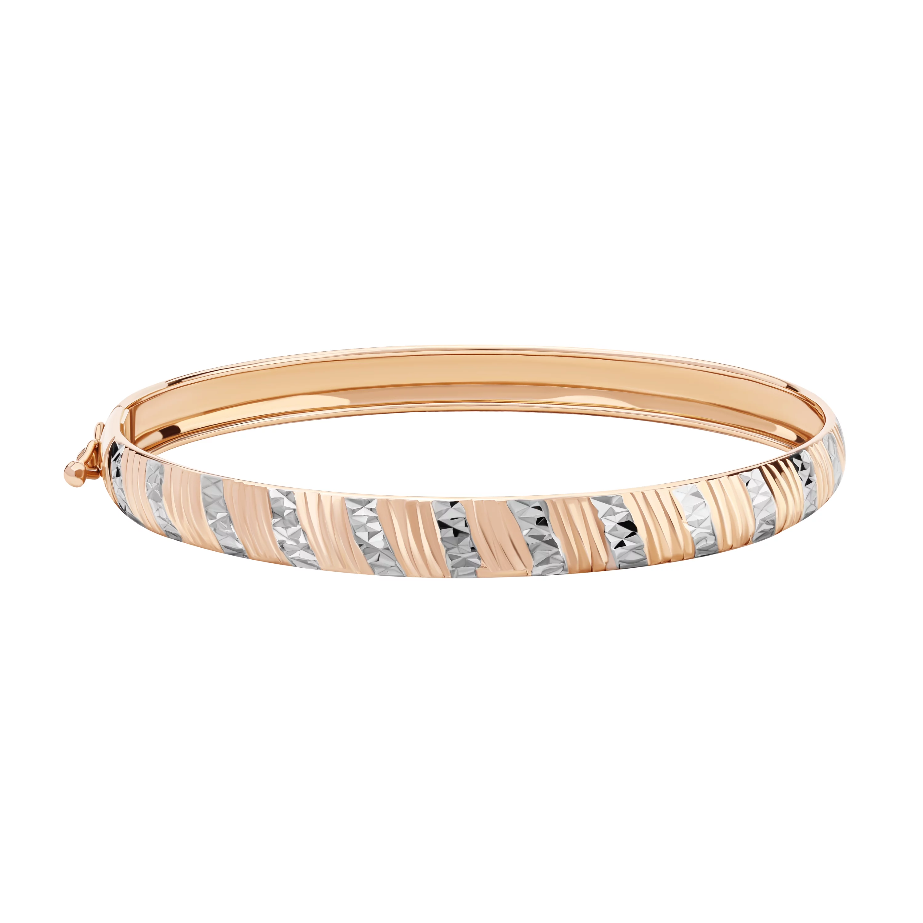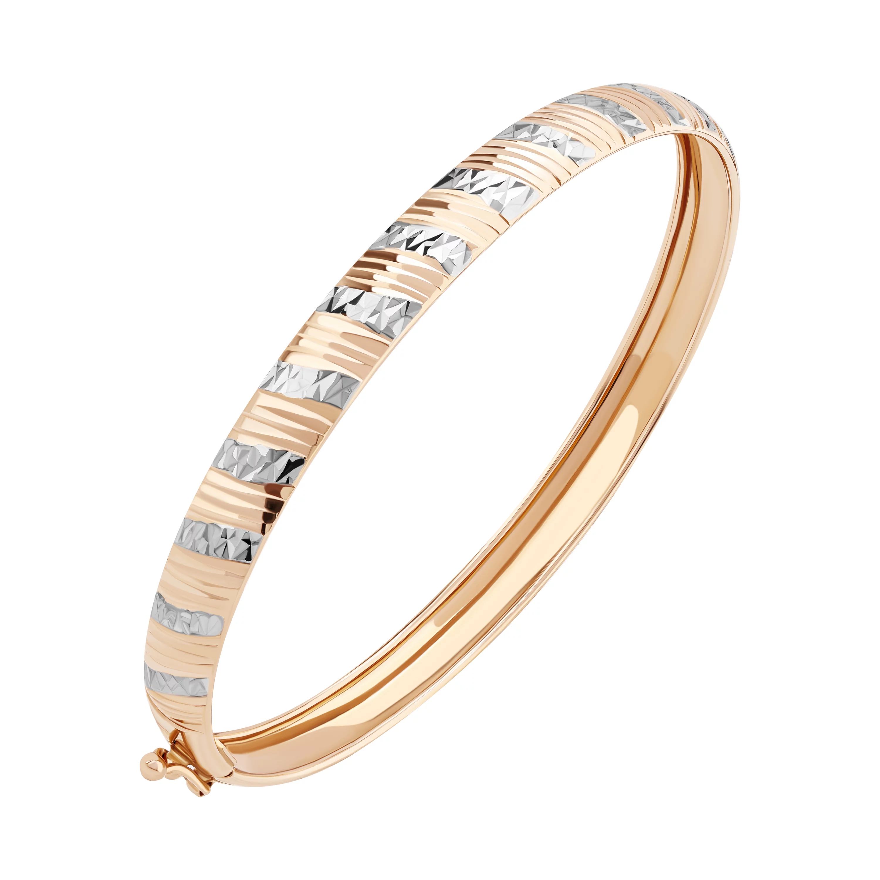 Стильний жорсткий браслет з комбінованого золота з алмазною гранню - 1870009