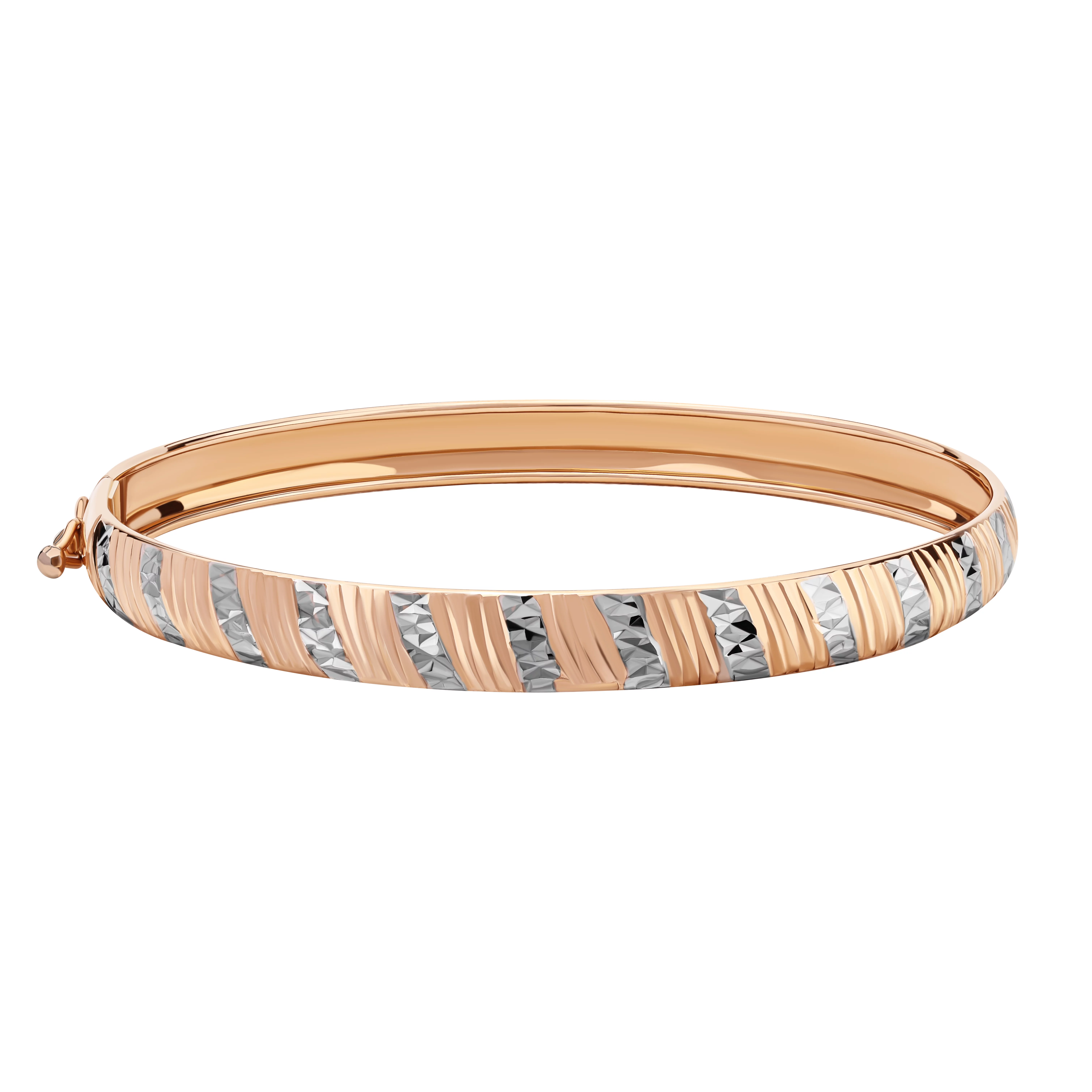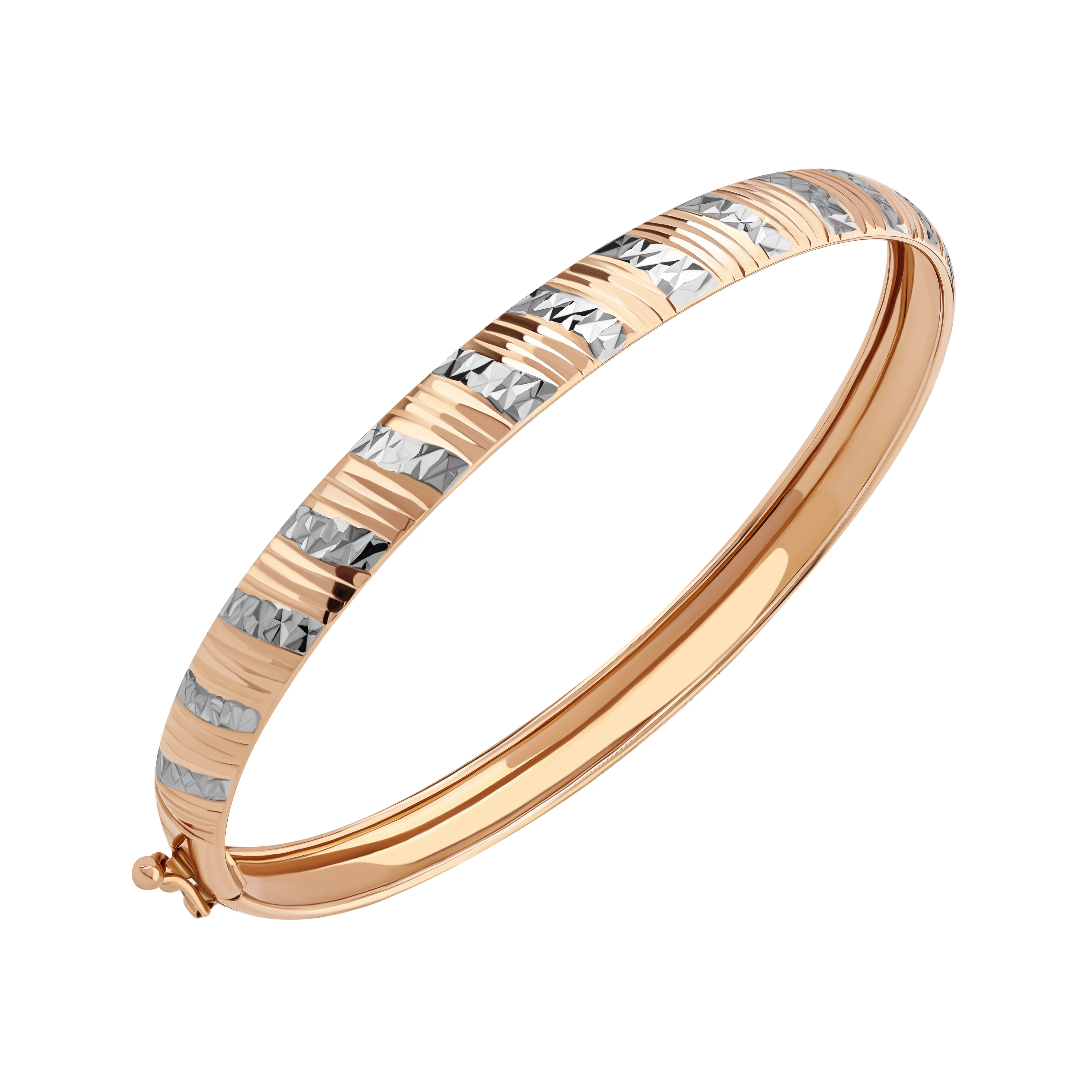 Стильний жорсткий браслет з алмазною гранню в комбінованому золоті - 1859340