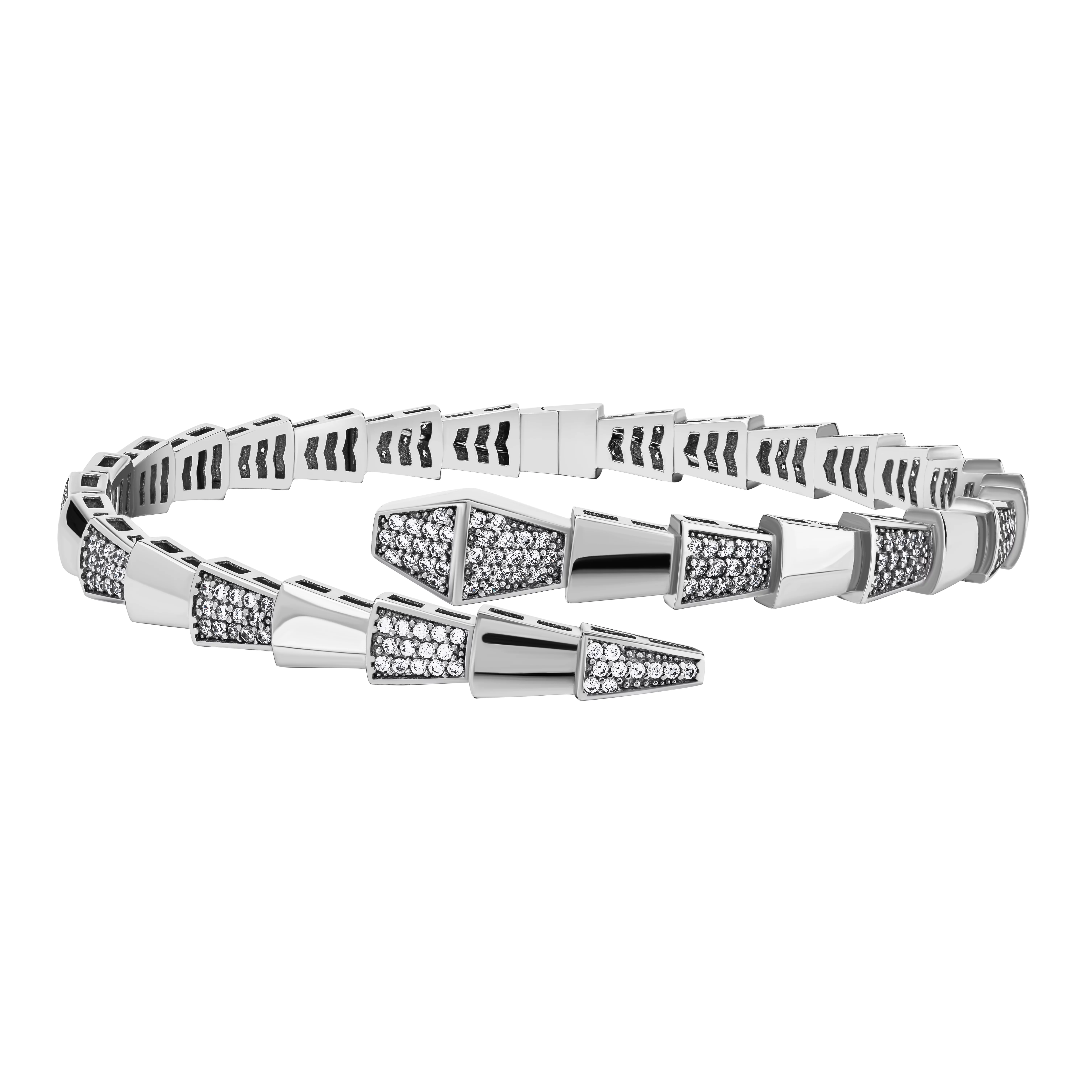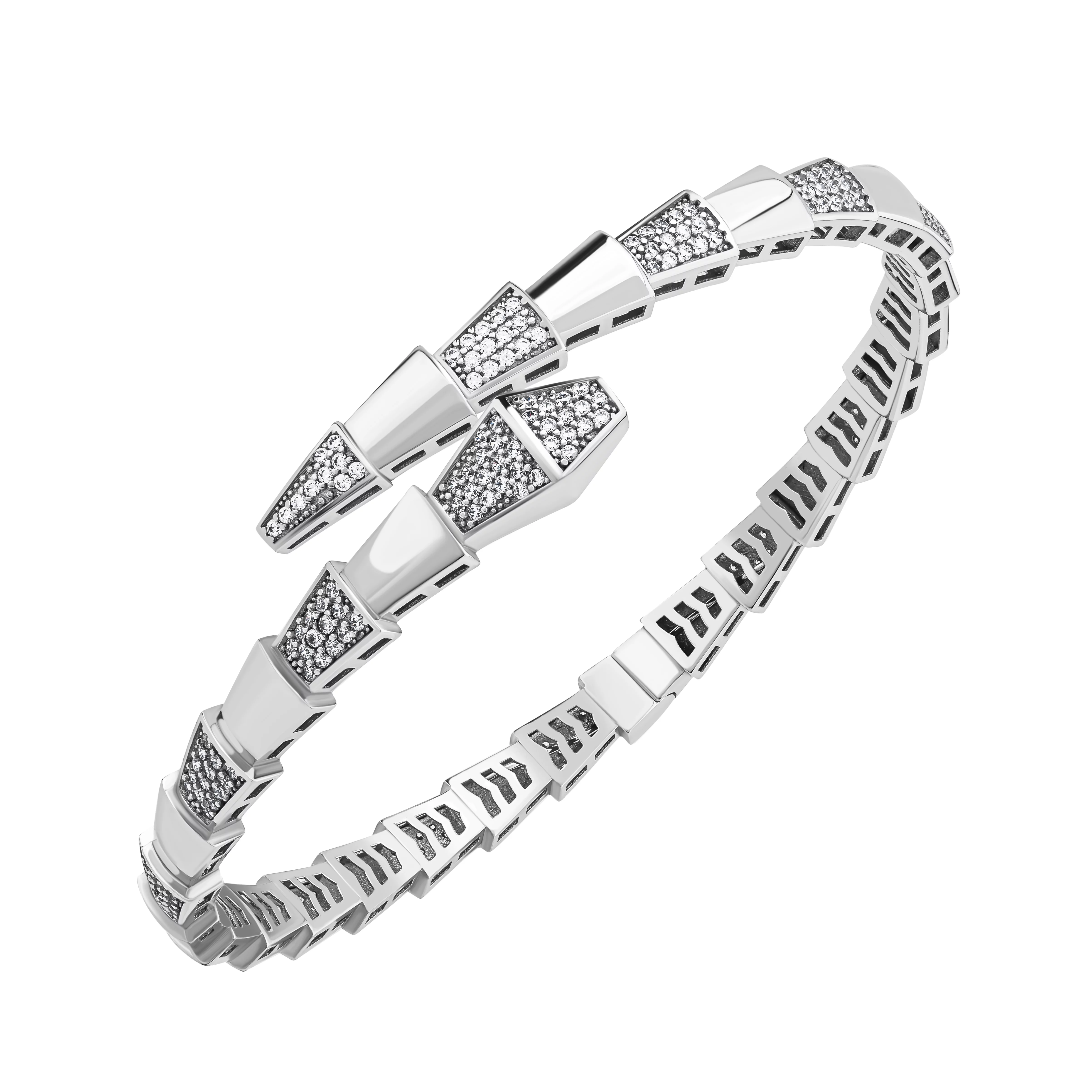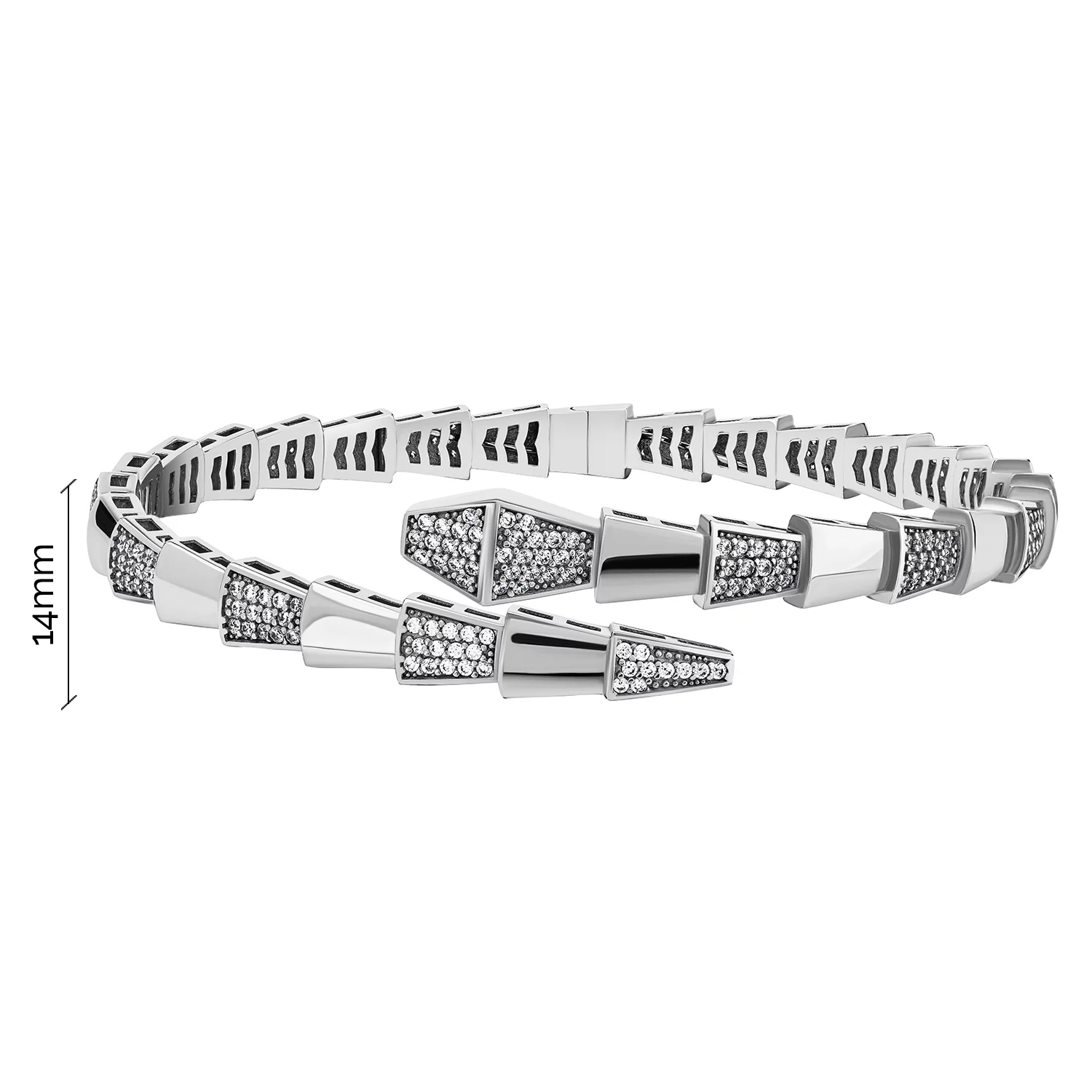 Жорсткий браслет "Змія" з червоного золота з розсипом фіанітів - 1855986
