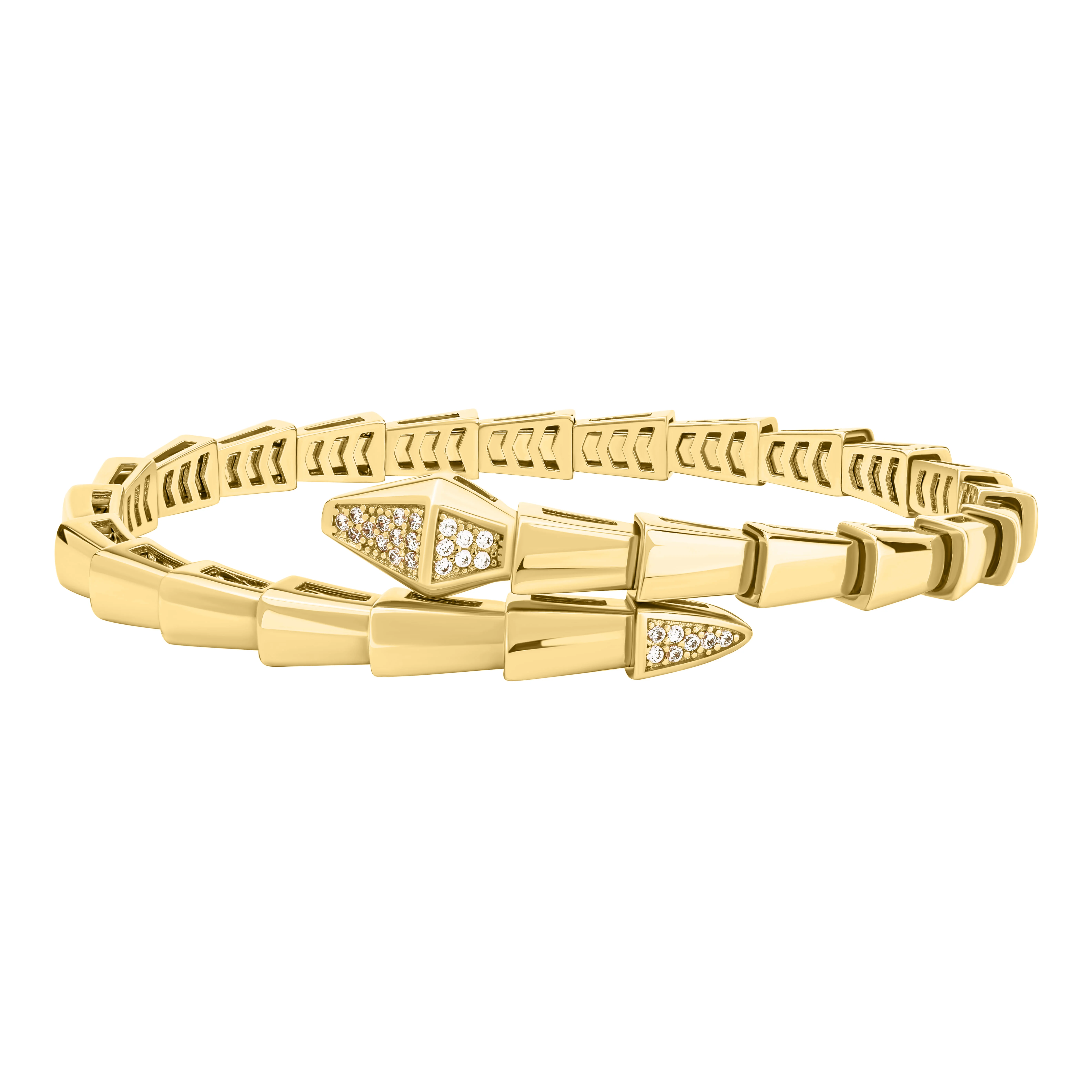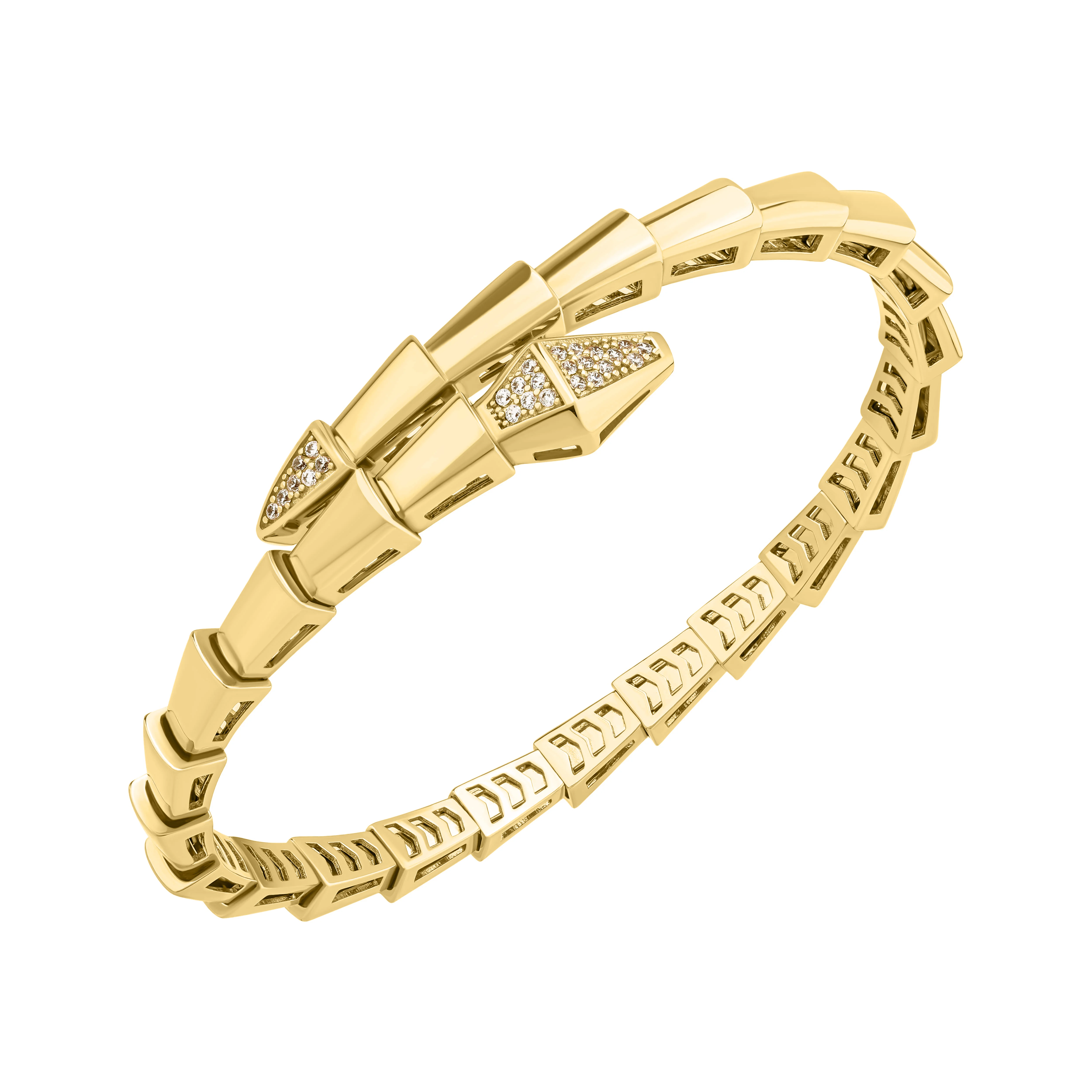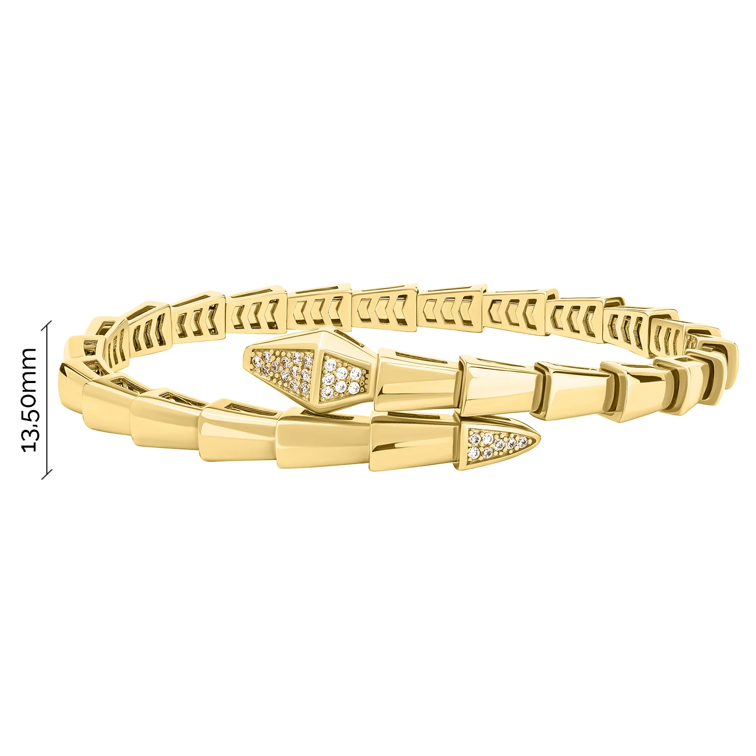Елегантний жорсткий браслет "Змія" в жовтому золоті з фіанітами - 1861186