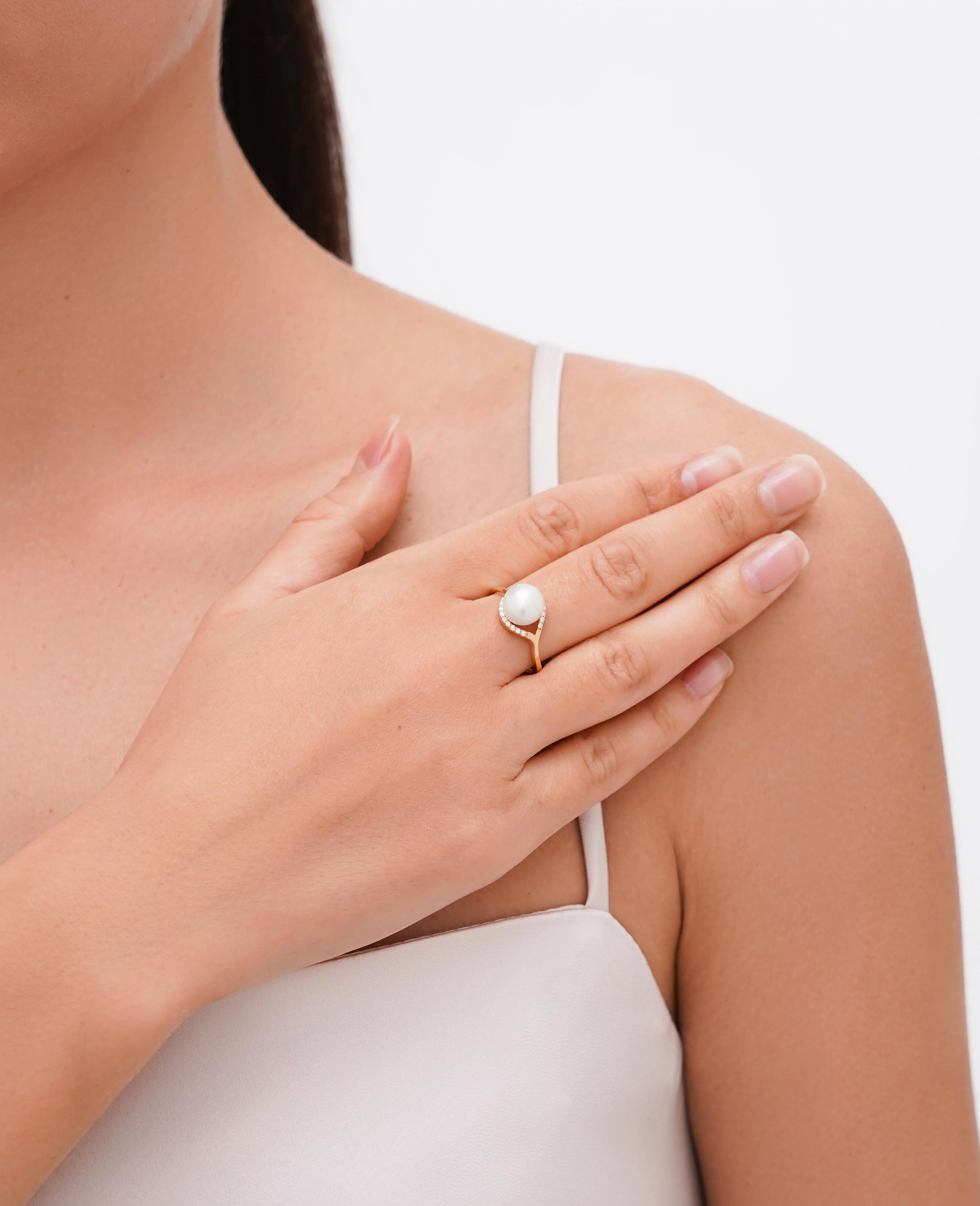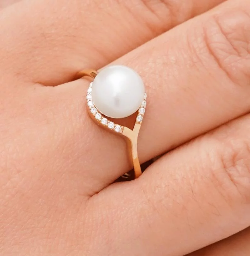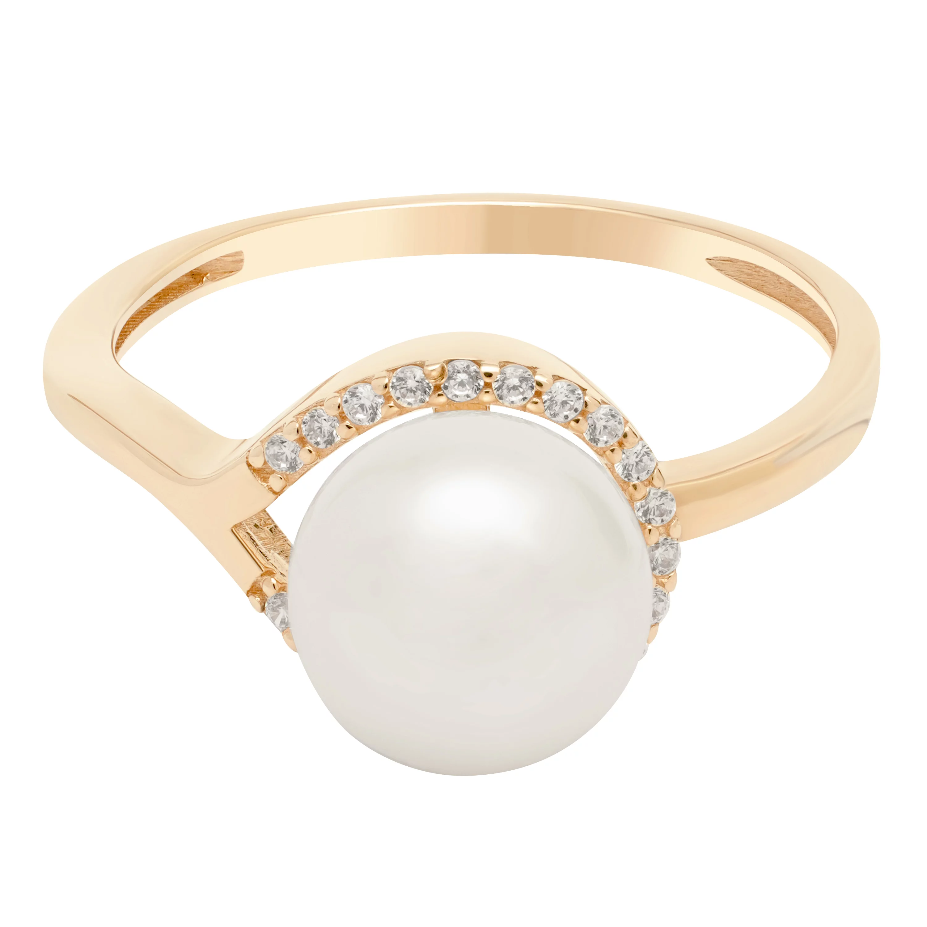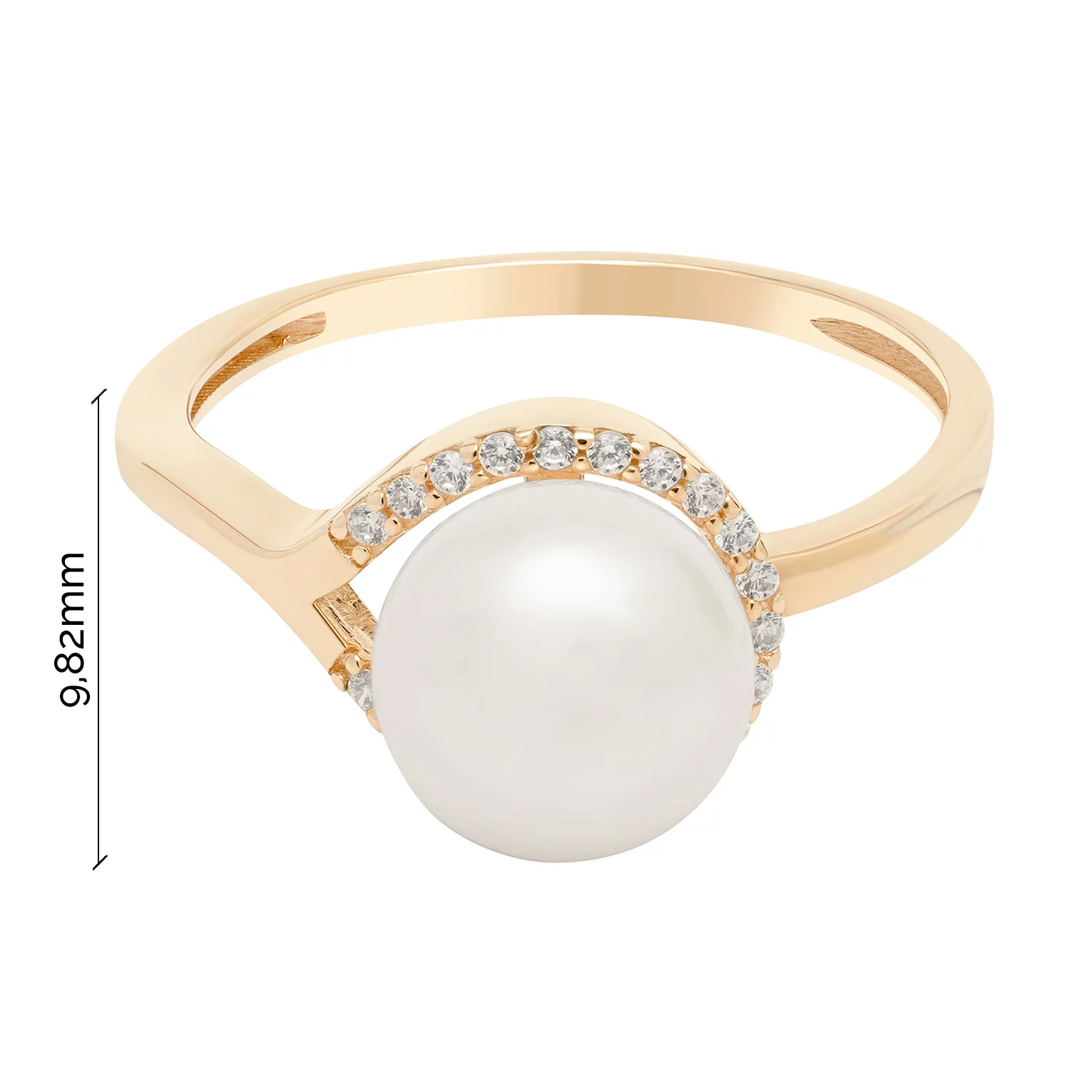 Каблучка "Квітка" незамкнена з червоного золота з фіанітом і емаллю - 1451197