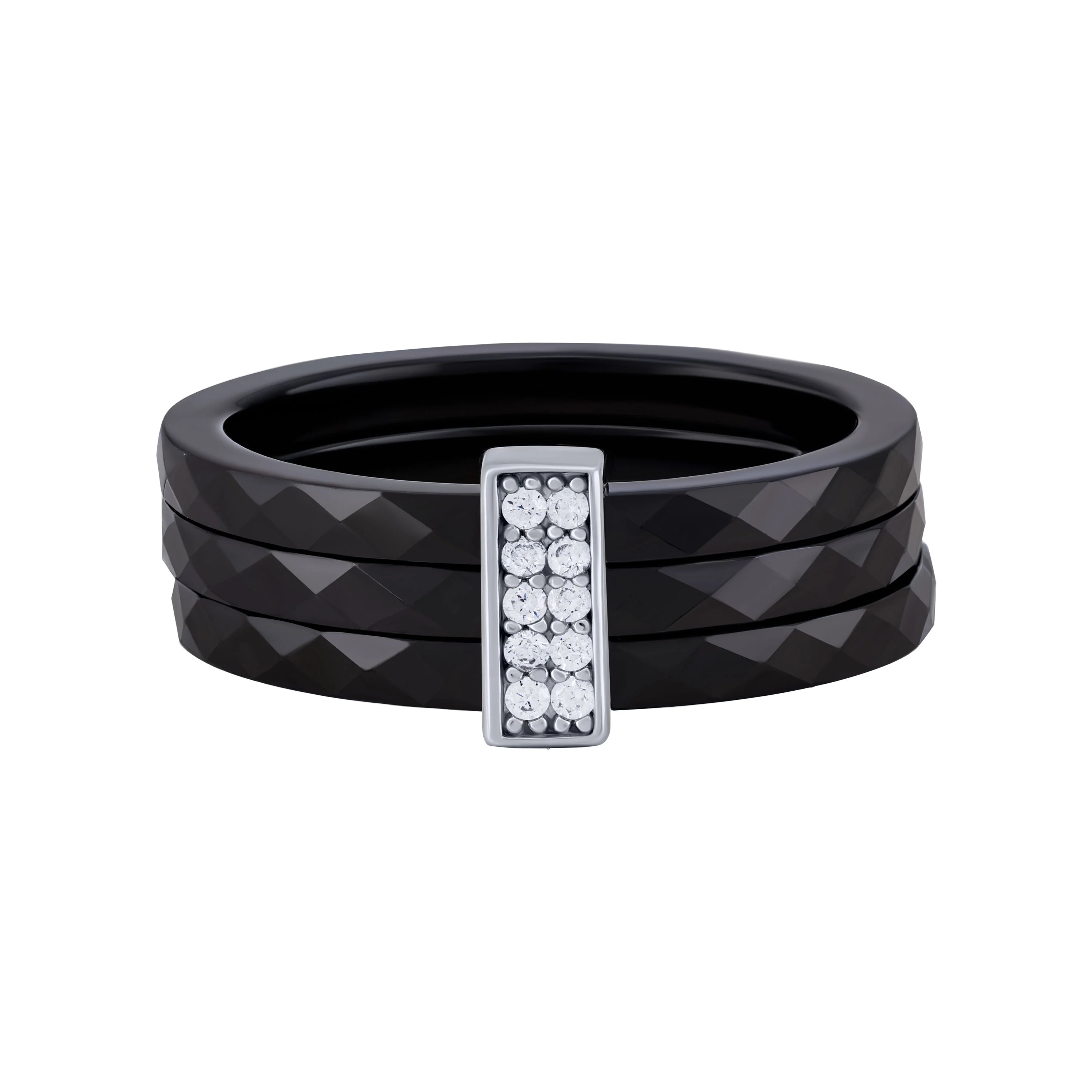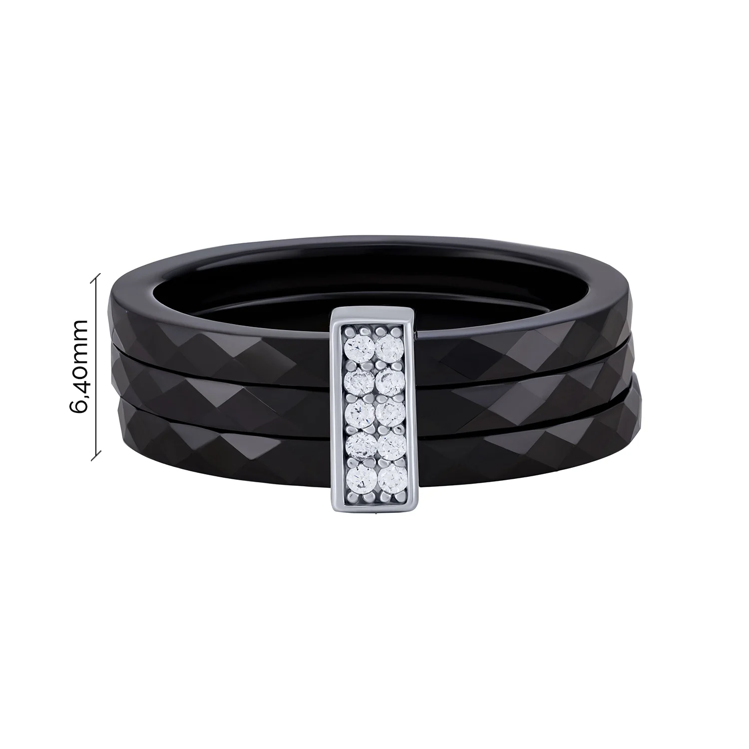 Потрійна керамічна каблучка зі вставкою зі срібла та фіанітами - 2104485