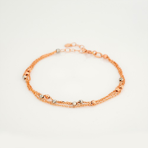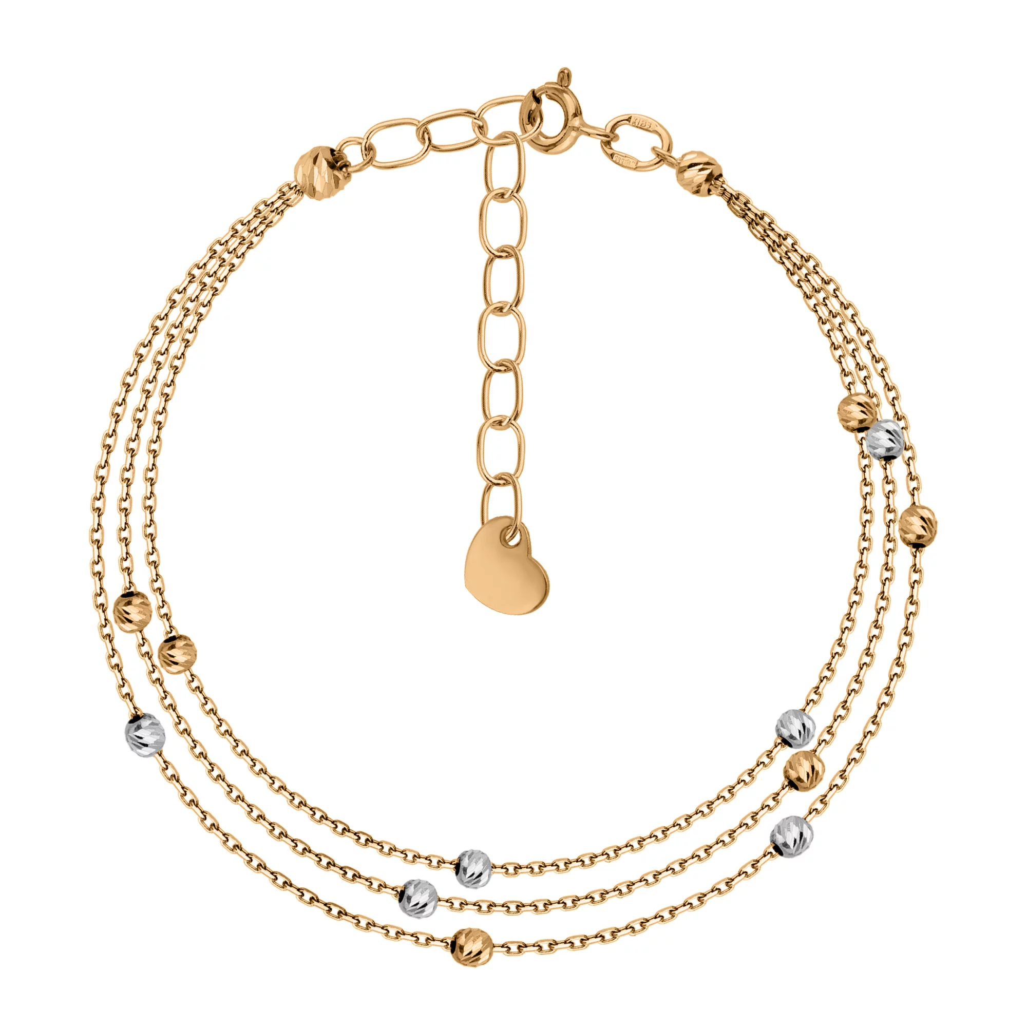 Потрійний браслет з комбінованого золота "Кульки" плетіння якір - 1824925