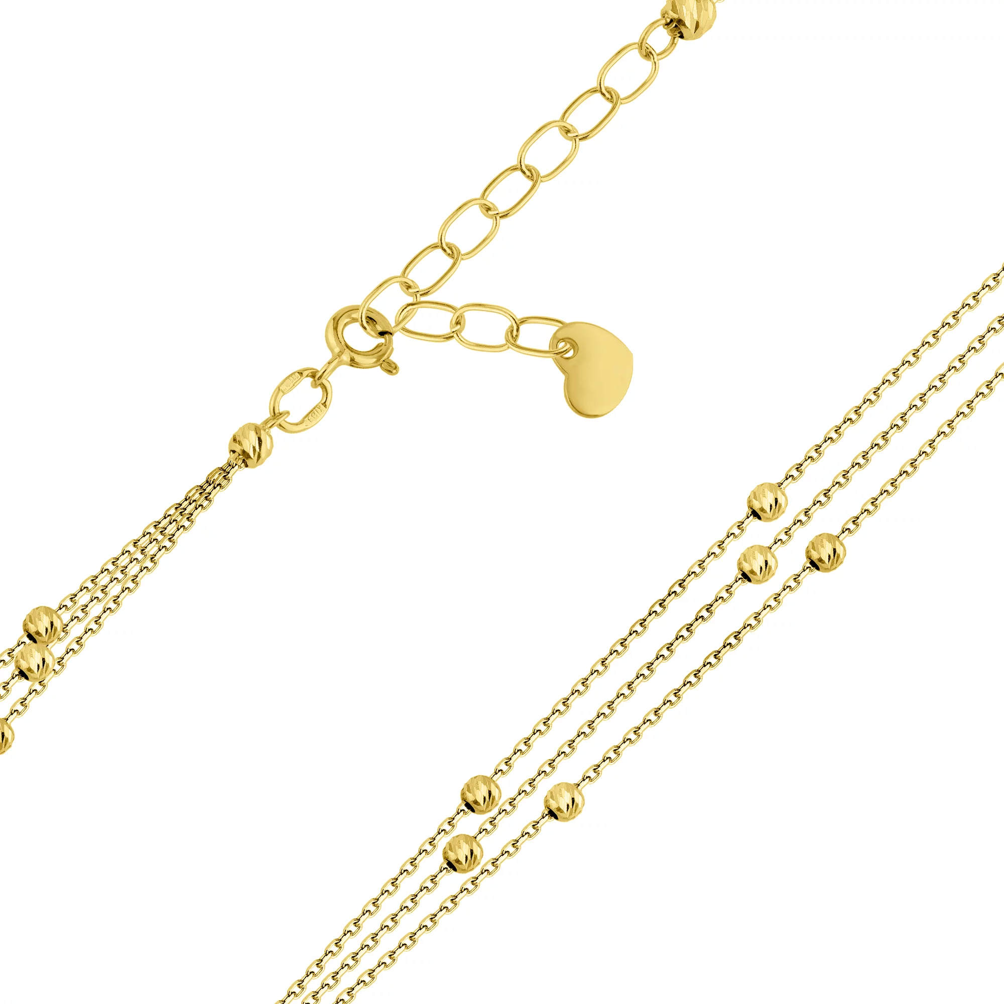Потрійний браслет з комбінованого золота "Кульки" якірне плетіння - 1824924