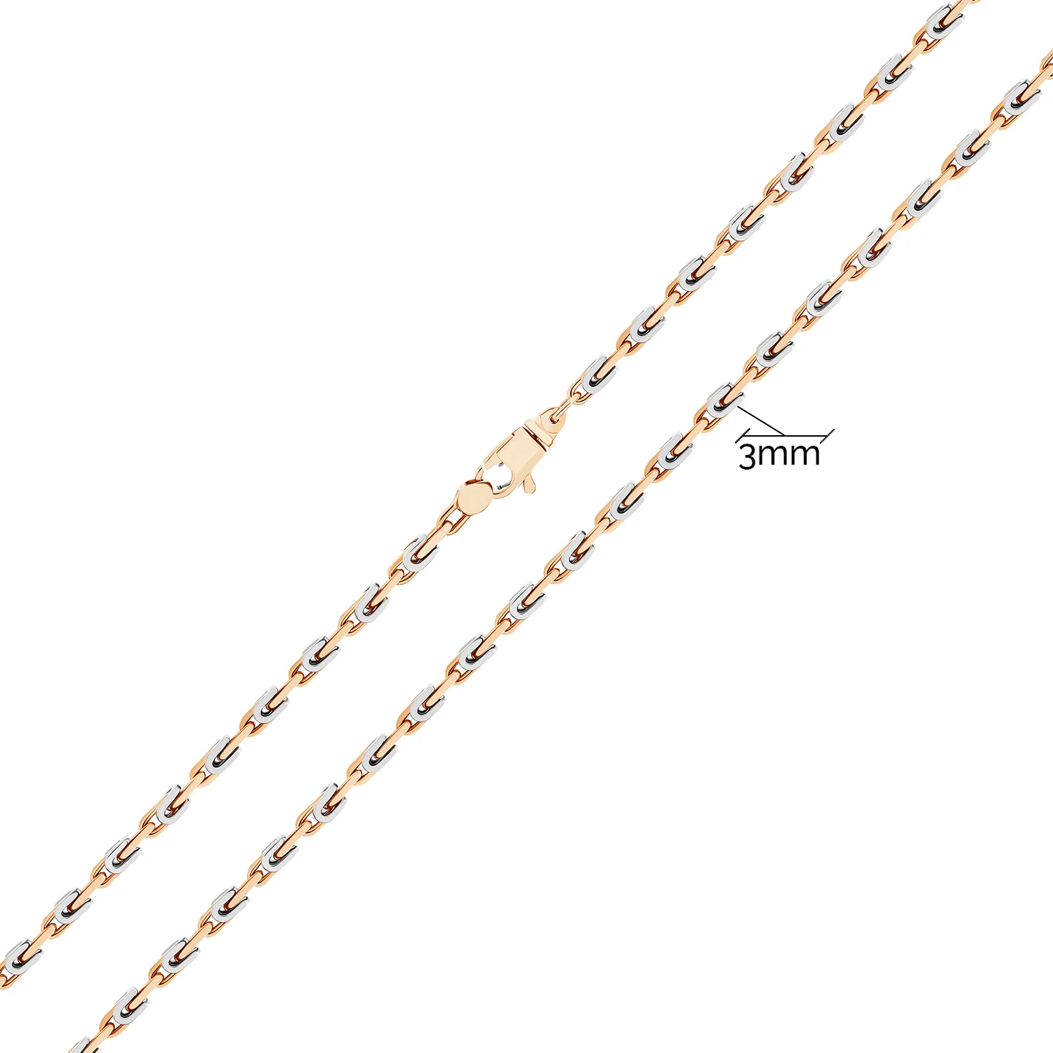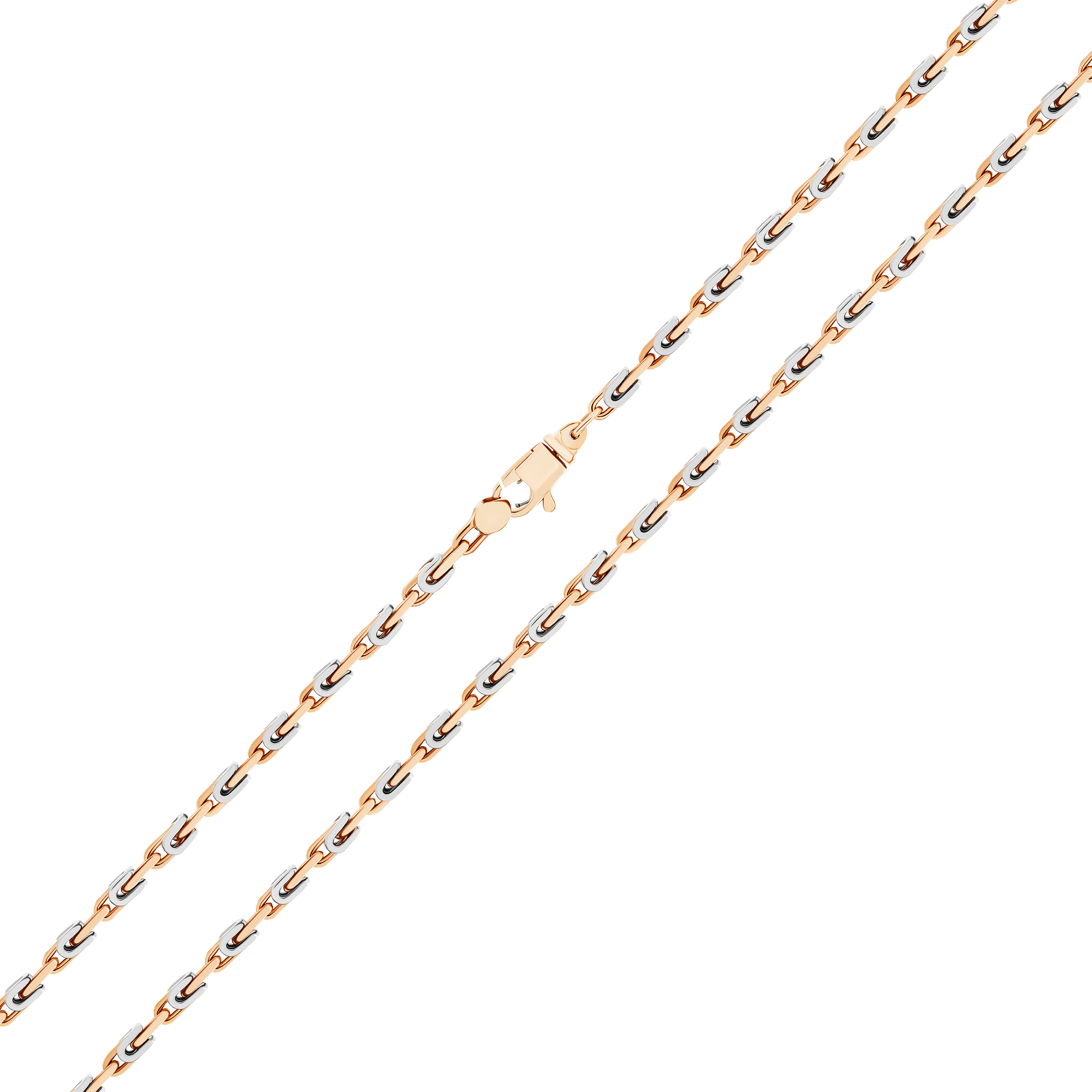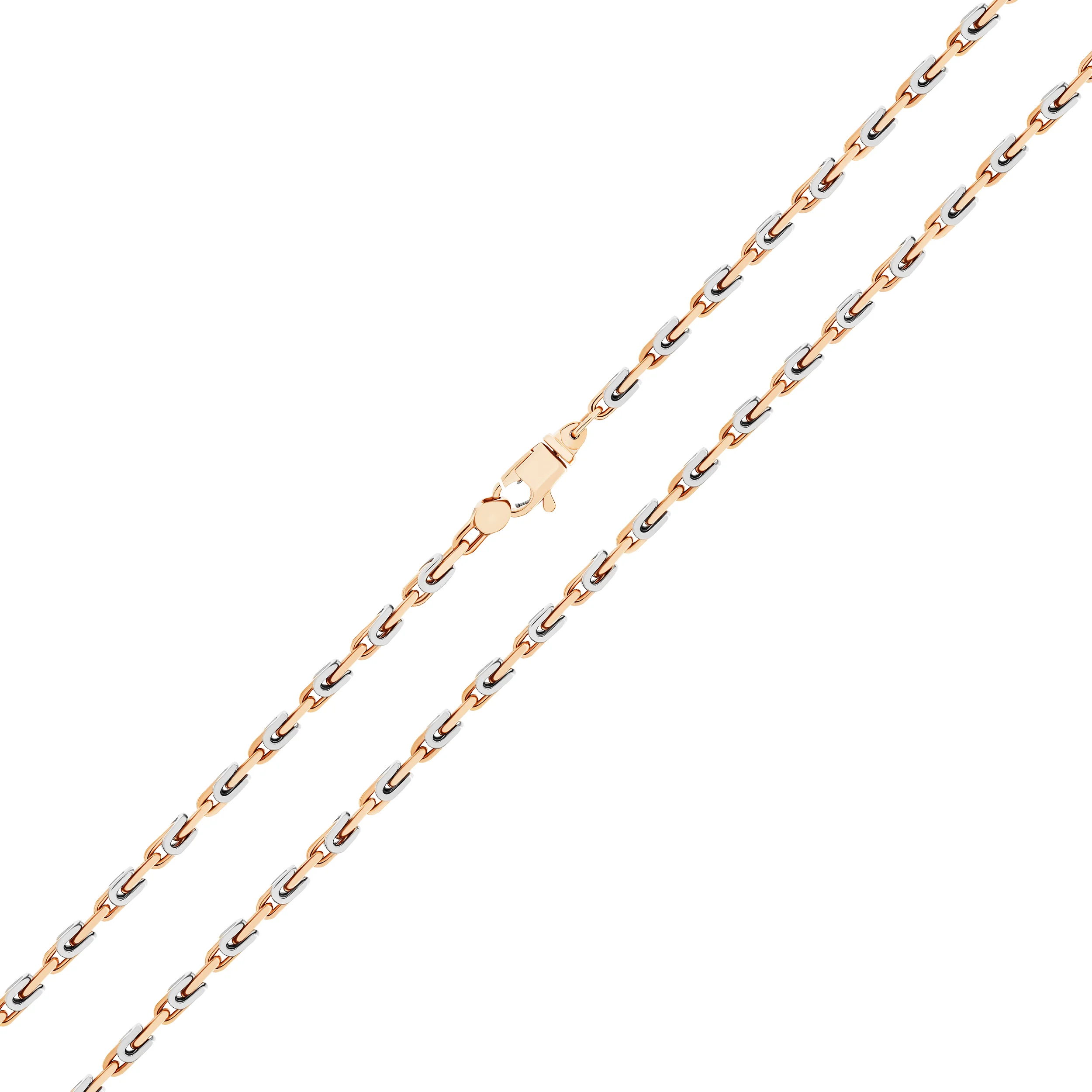 Ланцюжок із білого та червоного золота 585 проби привертає увагу витонченістю форм. Комбінація двох видів шляхетного металу за допомогою плетіння Барака дозволила створити елегантний ювелірний виріб. Карабіновий замок — зручний і надійний, легко відкривається та закривається. Коштовність у стилі Fashion підійде як під кежуал-образ, так і доповнить строгий діловий костюм. Ювелірний виріб стане чудовим подарунком для чоловіка на честь дня народження, весілля чи ювілею. Універсальну прикрасу можна доповнити підвісками чи кулонами.