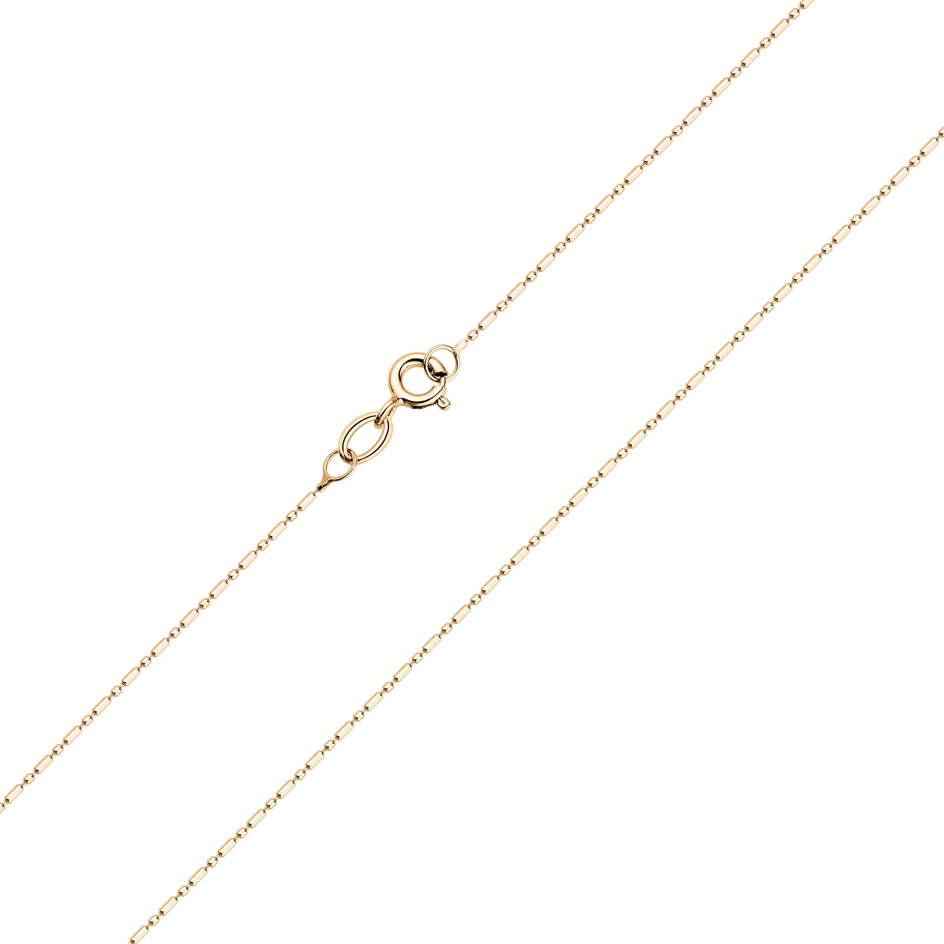 Ніжний ланцюг з червоного золота плетіння гольф нагадує тонку нитку сонячних відблисків, що м’яко лягає на шкіру, додаючи образу ледь помітного, але виразного тепла. Завдяки насиченому відтінку металу прикраса виглядає надзвичайно жіночно й органічно, зливаючись із природним тоном шкіри. Шпрингельне кільце забезпечує надійну фіксацію, залишаючись при цьому майже невидимим і не порушуючи загальну легкість та тендітність виробу.