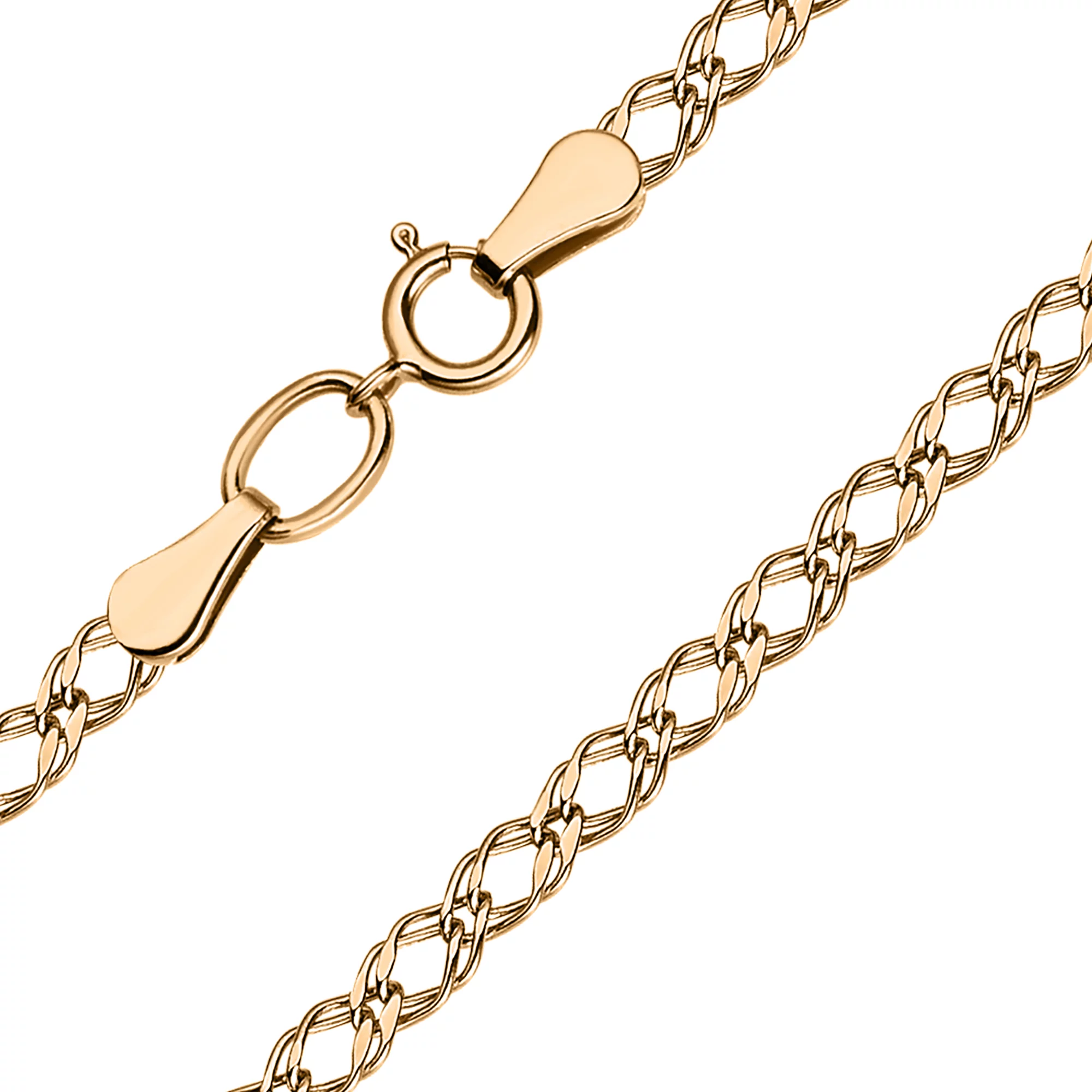 Ланцюжок із червоного золота, виконаний у ніжному та вишуканому плетінні «ромб», втілює елегантність та витонченість. Тонкий розсип ромбів створює відчуття безперервного руху, ніби виріб оживає на шиї. Метал теплого відтінку випромінює блиск, що надає виробу вишуканості. Плетіння «ромб» є візерунком з геометричних фігур, з'єднаних один з одним особливим чином. Прикраса, створена в класичному стилі, гармонійно доповнить повсякденне вбрання або вечірній аутфіт. Підходить як жінкам, так і чоловікам.