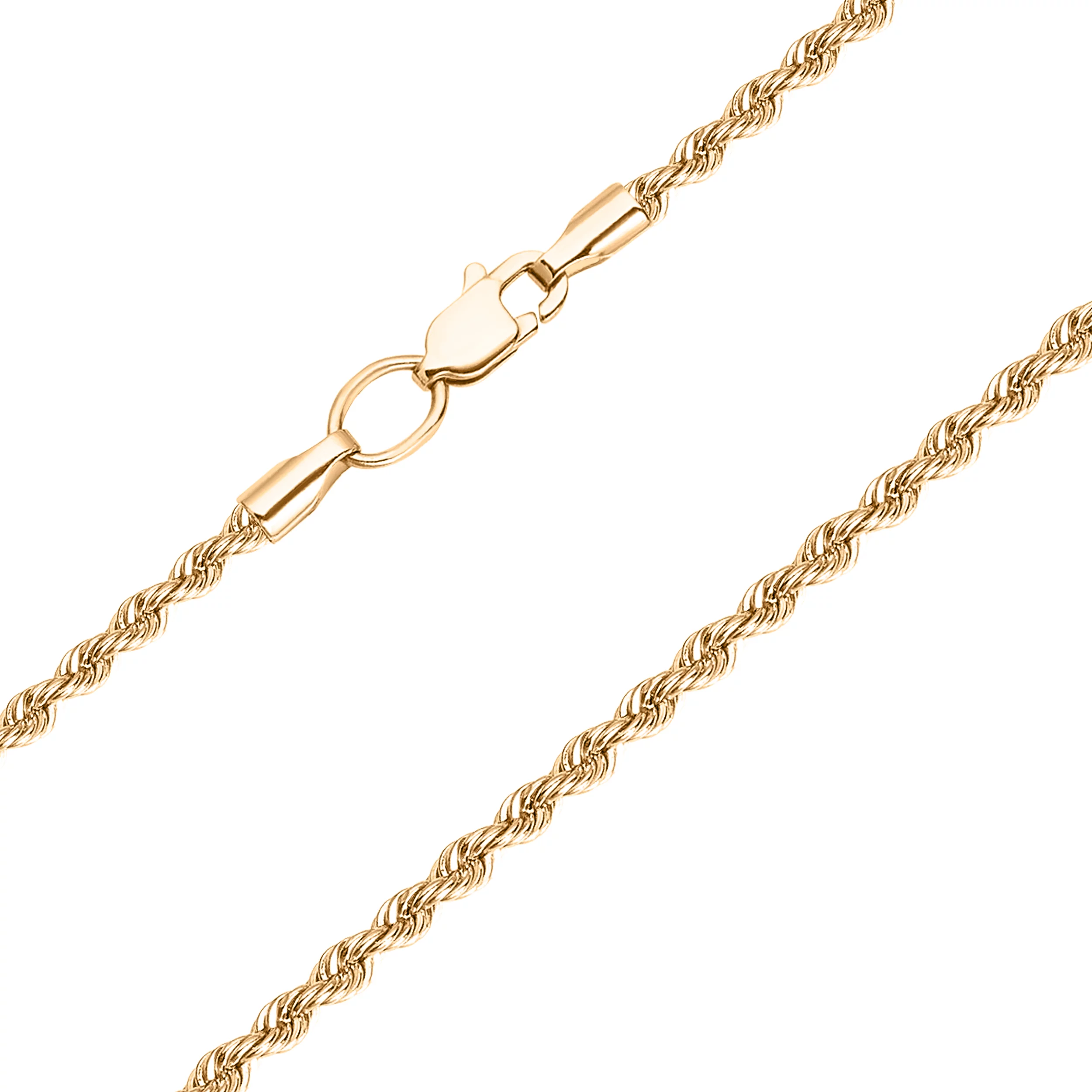 Універсальний ланцюжок із червоного золота підійде для чоловіків та жінок. Прикраса 585 проби відрізняється теплим золотистим відтінком завдяки додаванню до сплаву міді. Технологія плетіння «мотузка» притягує погляди незвичайним візерунком і має особливу міцність. На краях ланцюжок з'єднується карабінним замком із міцним кільцем, що гарантує надійну фіксацію на шиї. Виріб можна носити як із кулоном, так і самостійно. Прикраса підкреслить вишуканий смак та стиль. Ланцюжок із червоного золота стане цінним подарунком для дорогої людини або для себе.