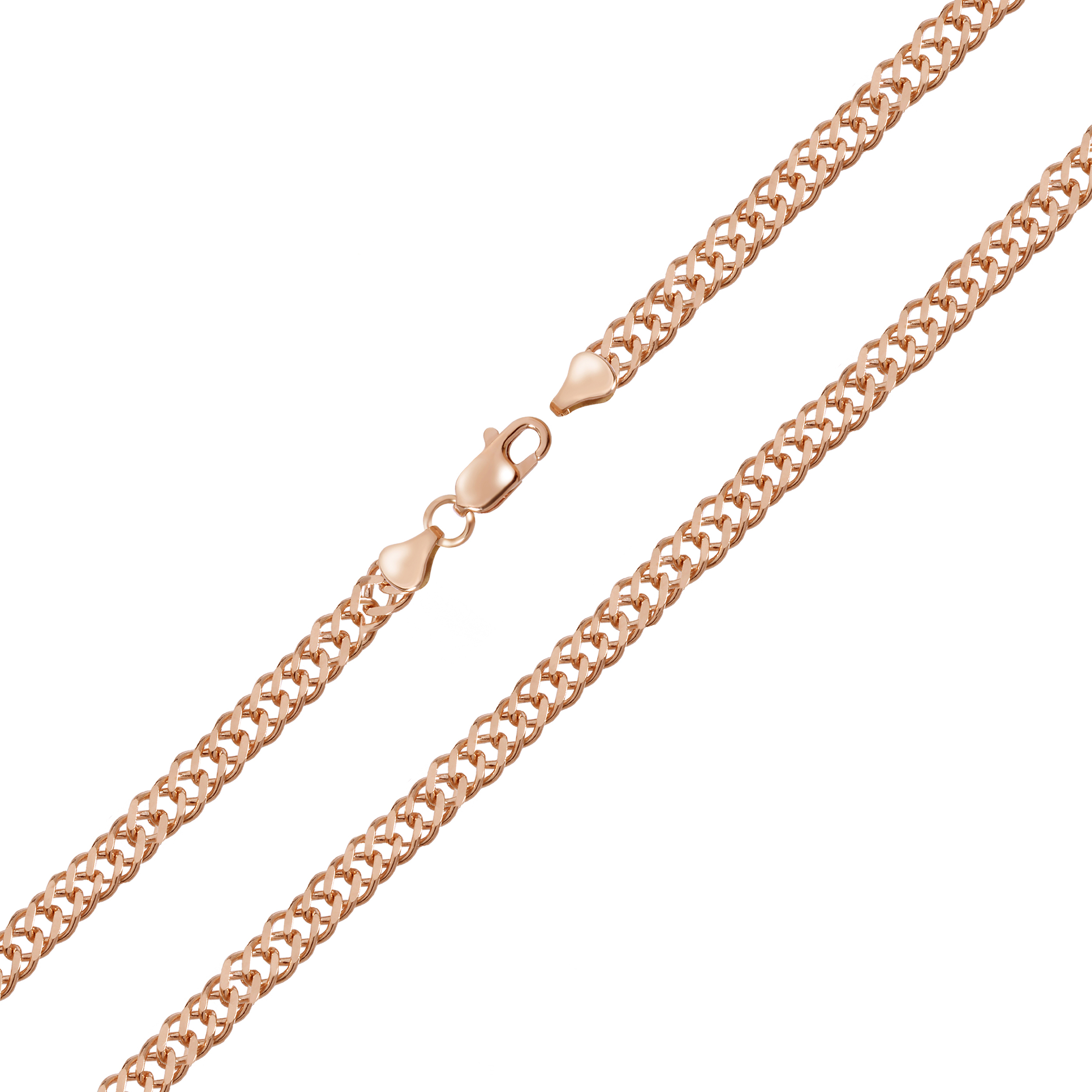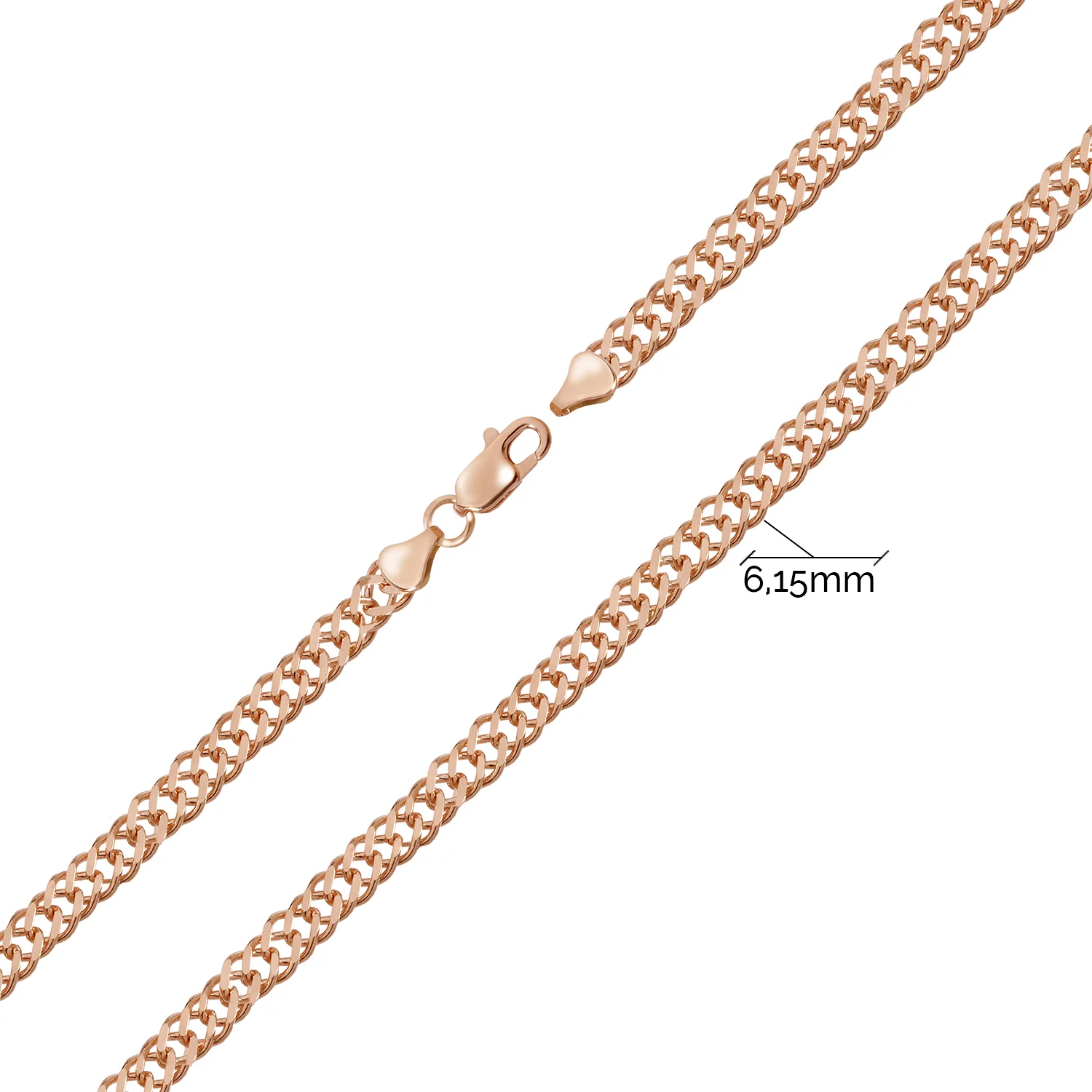 Об'ємний важкий чоловічий ланцюжок із червоного золота 585 проби — прикраса для сильних і впевнених чоловіків. Подвійне панцирне плетіння надає виробу витонченого та стильного вигляду, а також гарантує високу стійкість до розривів. Застібка виконана у вигляді акуратного карабіна, який міцно застібається, запобігаючи втраті прикраси. Ланцюжок гармонійно поєднується з класичним, спортивним і діловим, повсякденним і вечірнім стилем. Пасуватиме як стриманим, так і екстравагантним чоловікам. Переконливо підкреслить високий соціальний статус власника.
