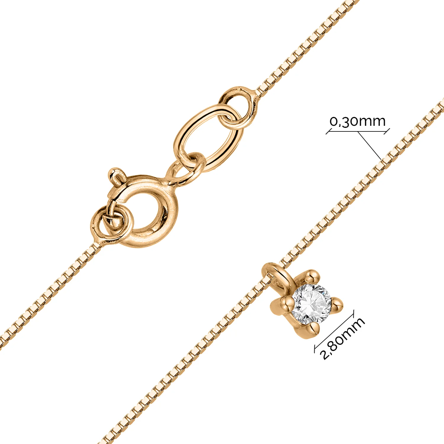 Ланцюжок з підвісом "Квітка" в червоному золоті з діамантами плетіння венеціанське - 1805906