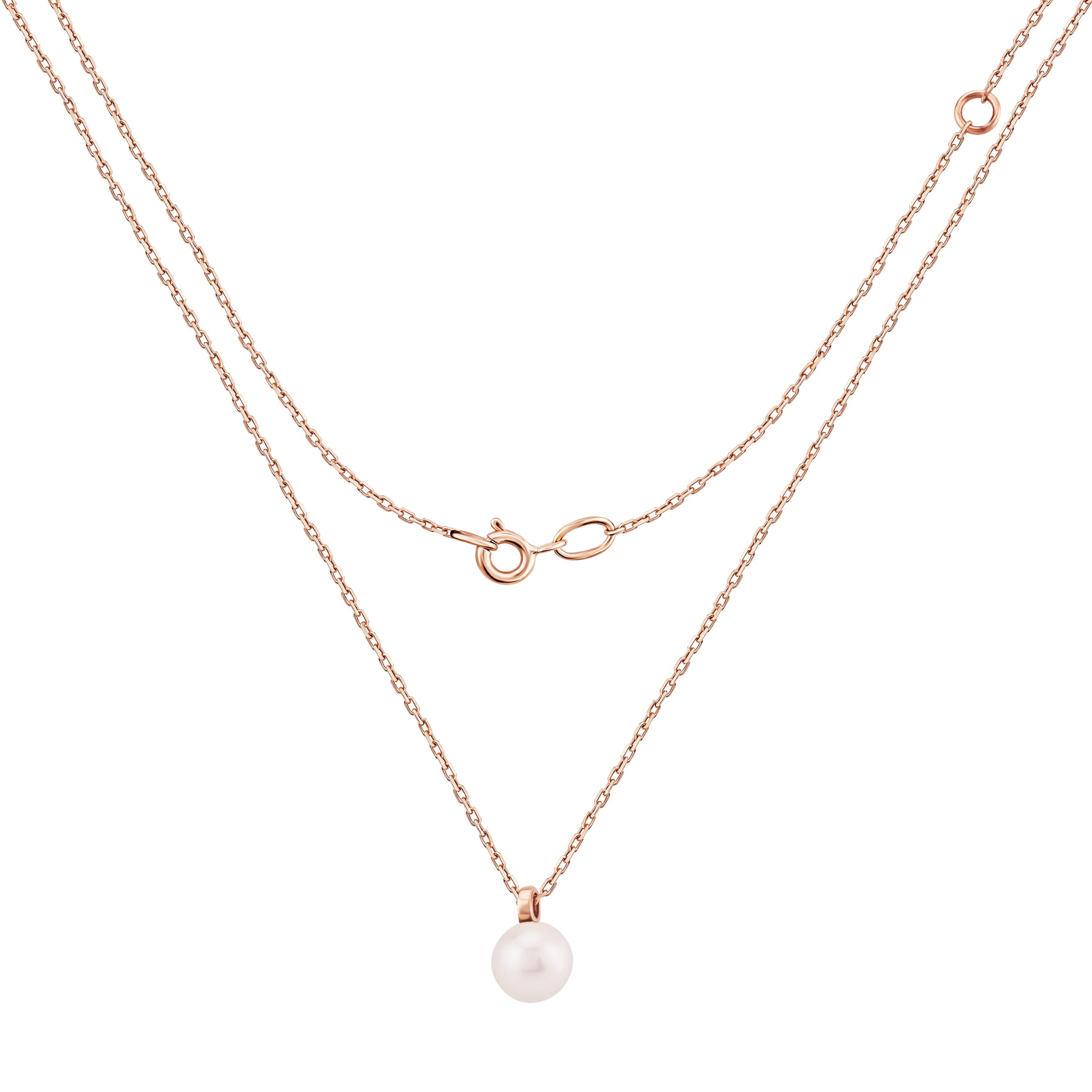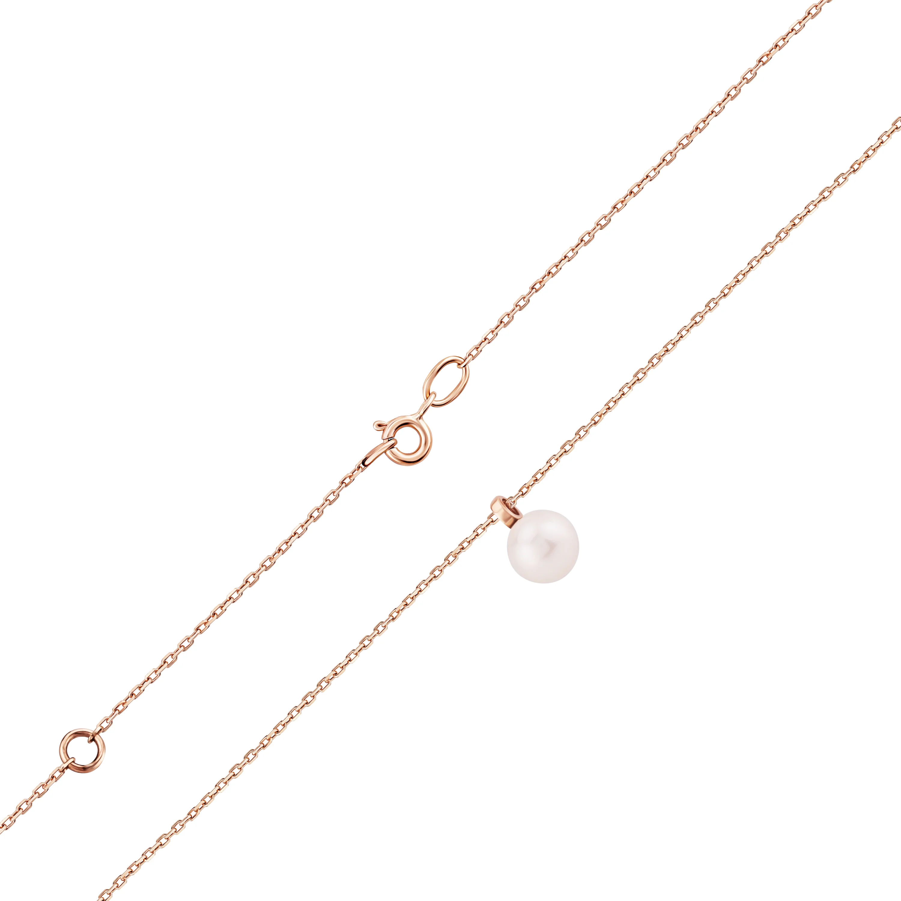 Ланцюжок з підвісом з червоного золота з перлиною якірне плетіння - 2086653
