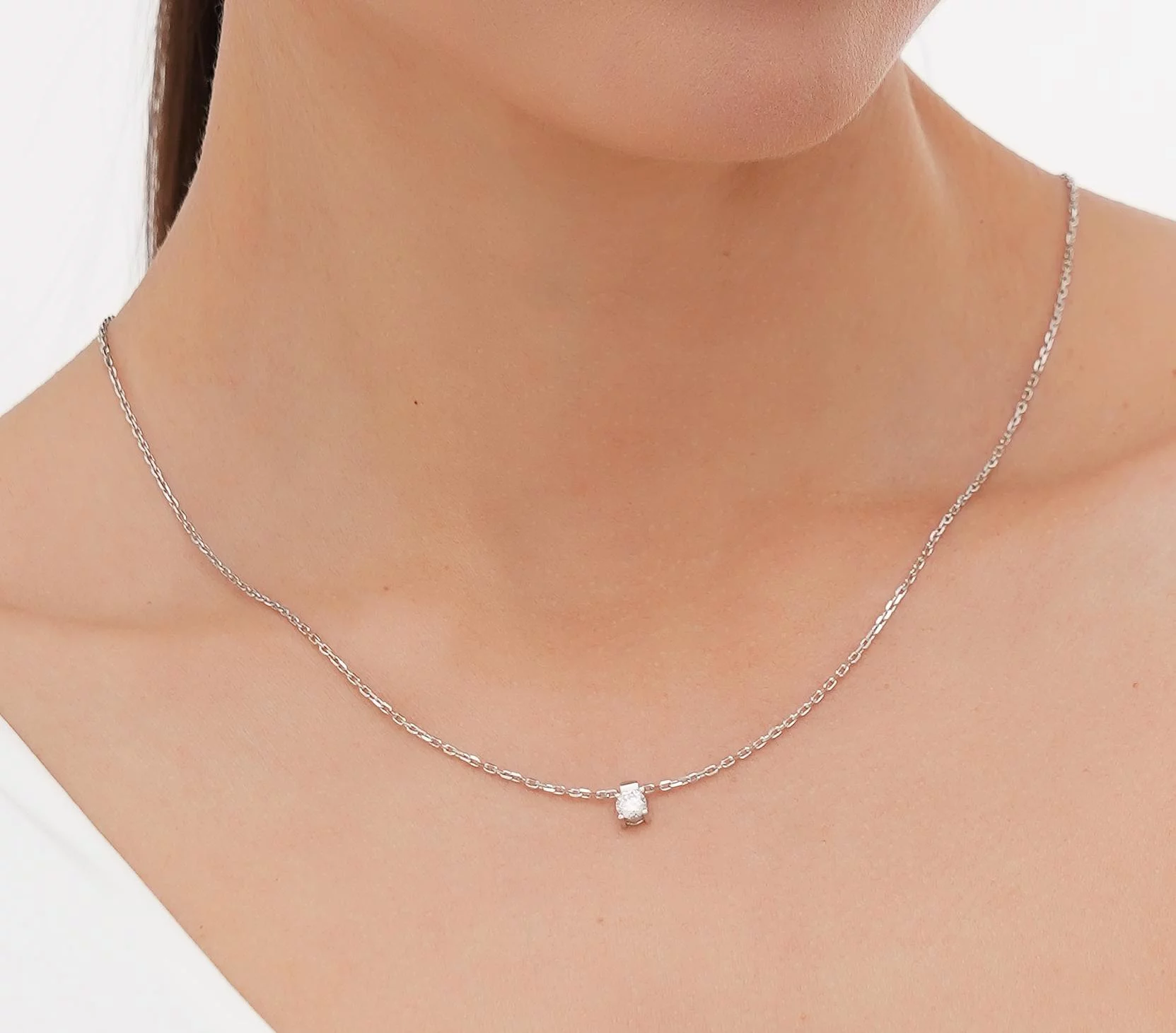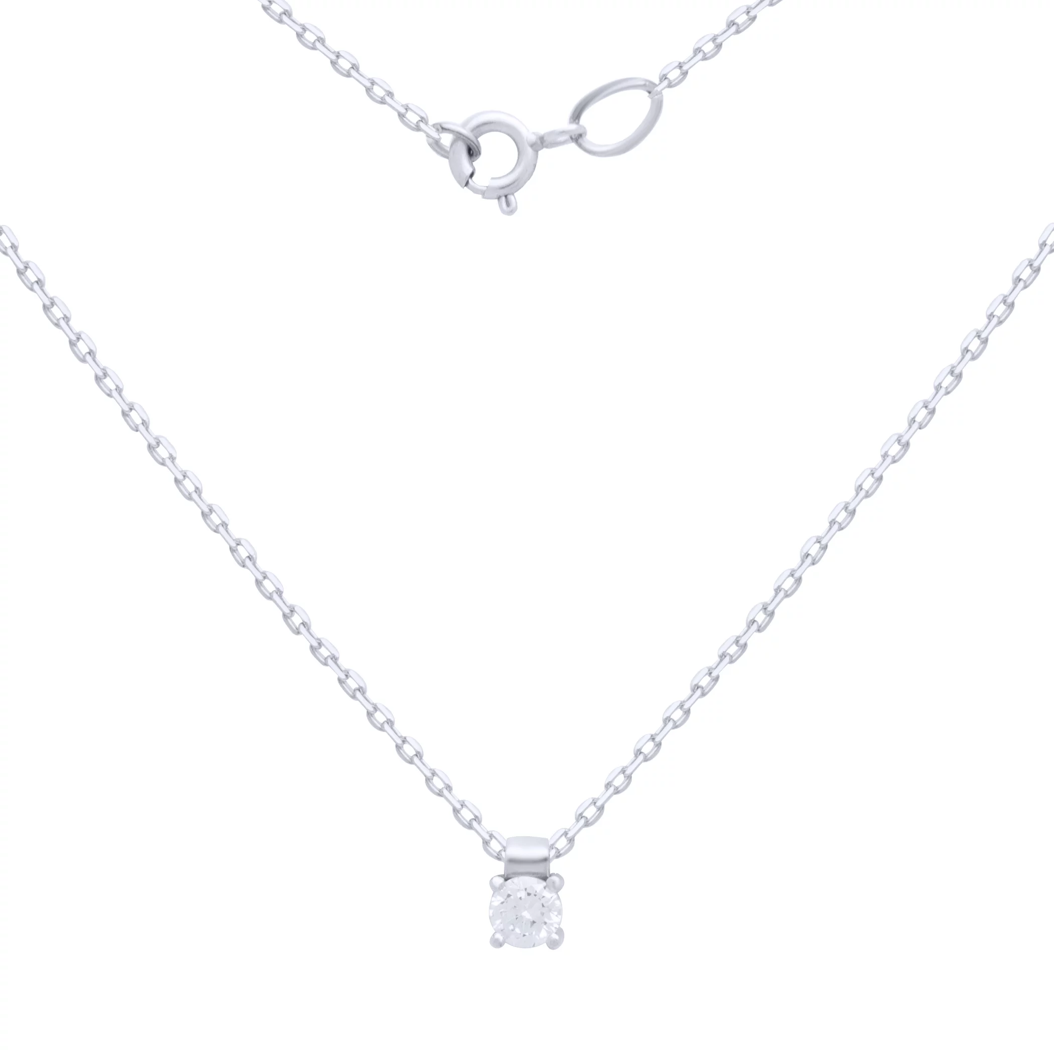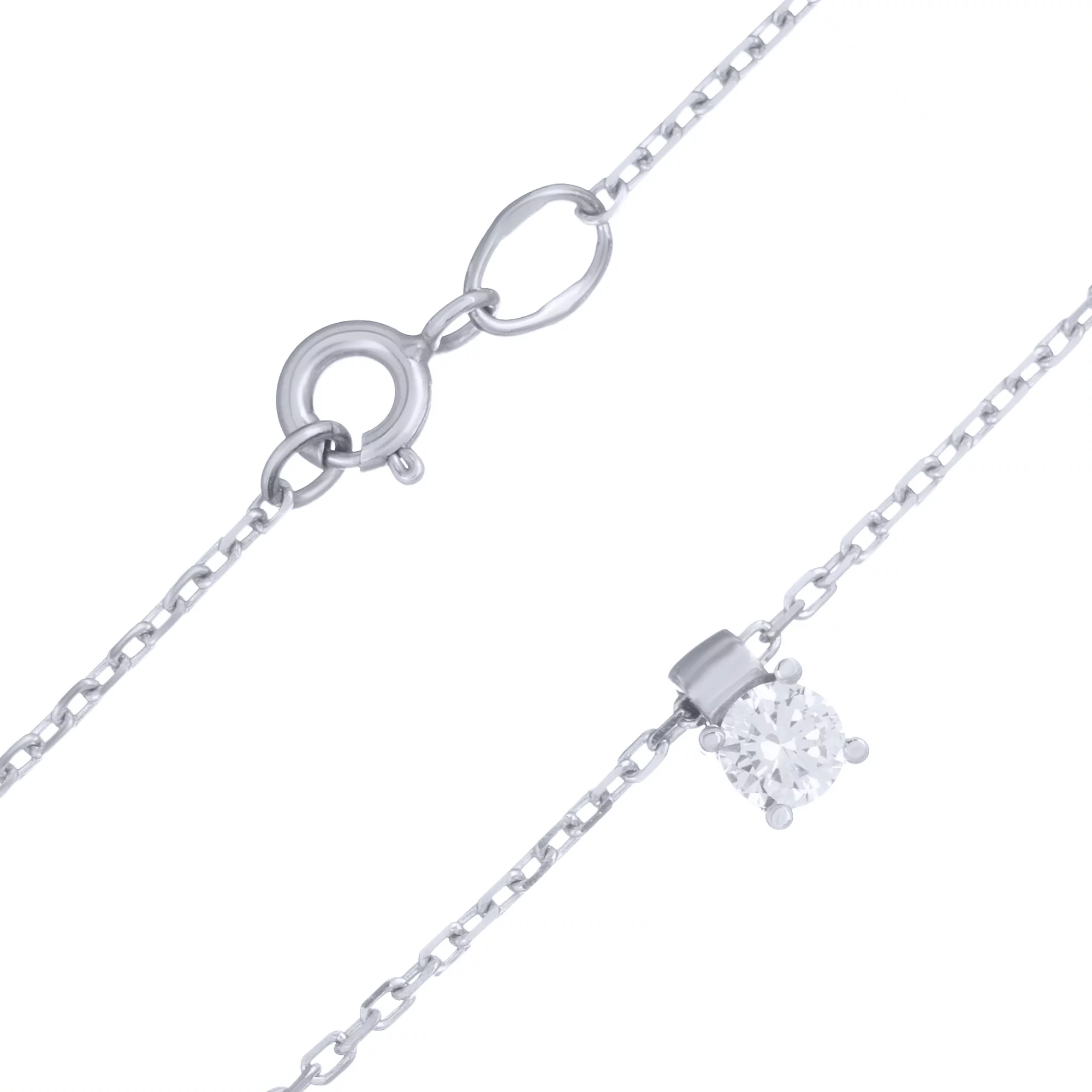 Ланцюжок з підвісом з білого золота з фіанітом якірне плетіння - 1688575