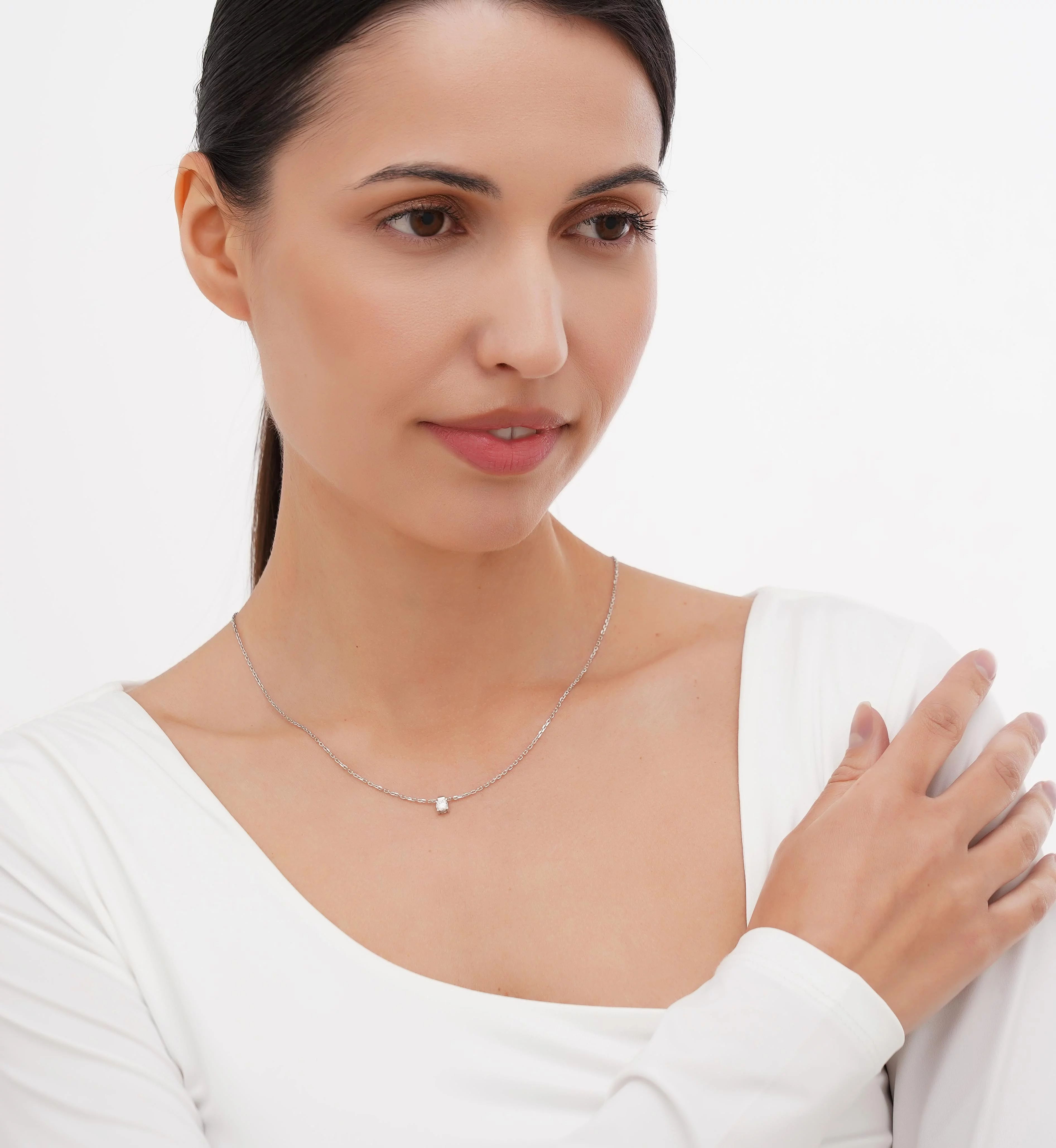 Ланцюжок із підвіскою з білого золота з фіанітом якірне плетіння - 1688549