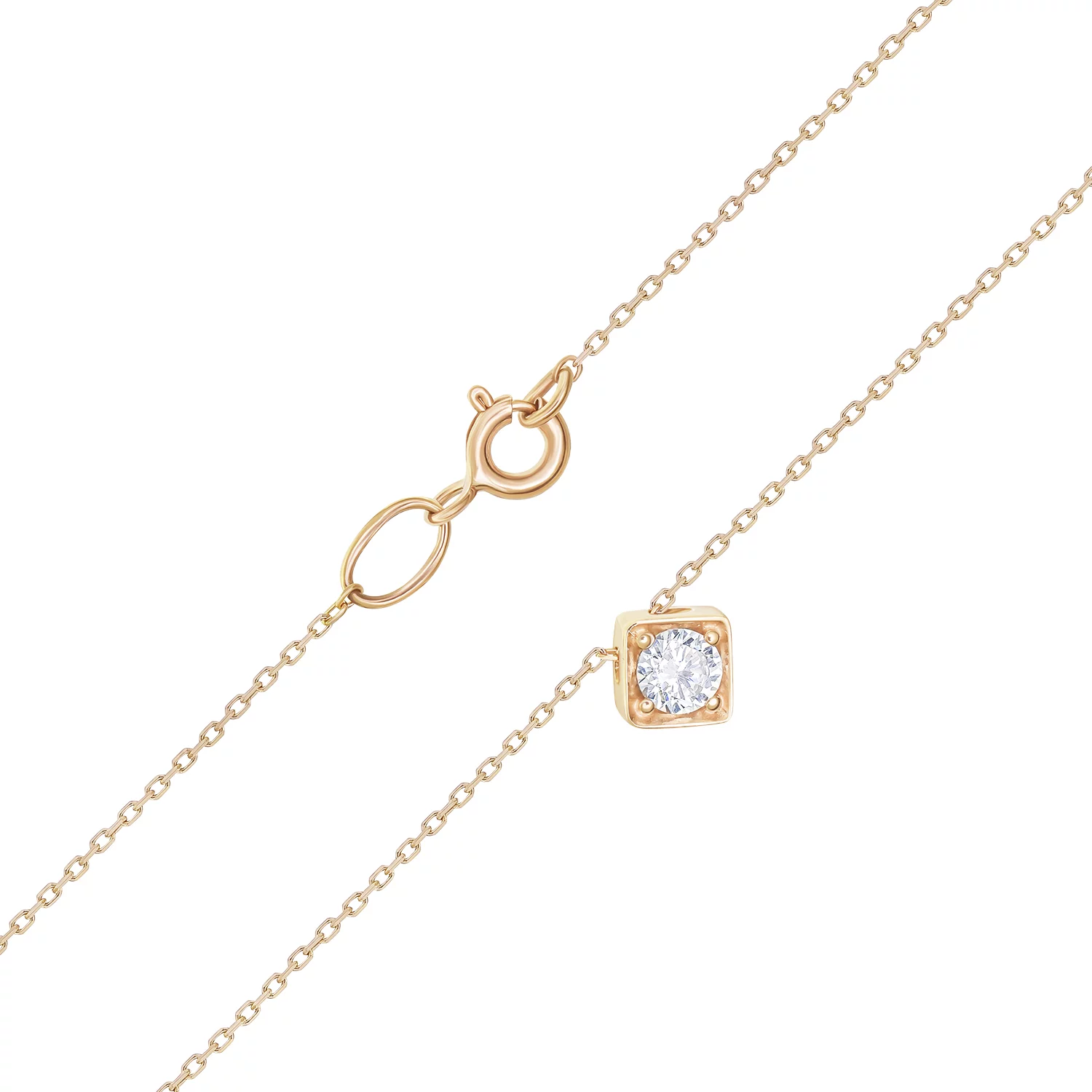 Ланцюжок з підвісом з червоного золота "Куб" з фіанітом якірного плетіння - 1614087