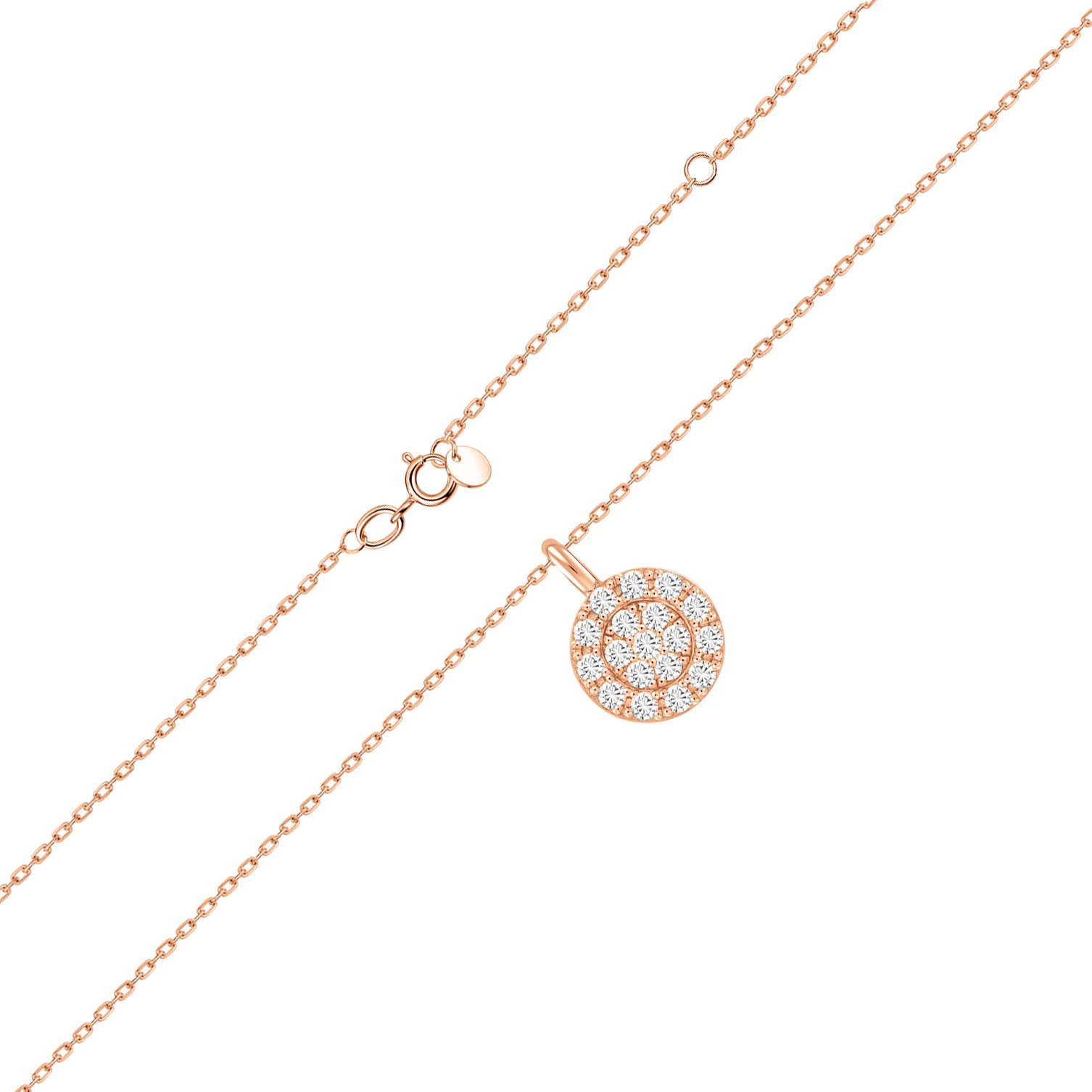 Ланцюжок з підвісом і діамантами в червоному золоті з якірним плетінням - 2115527