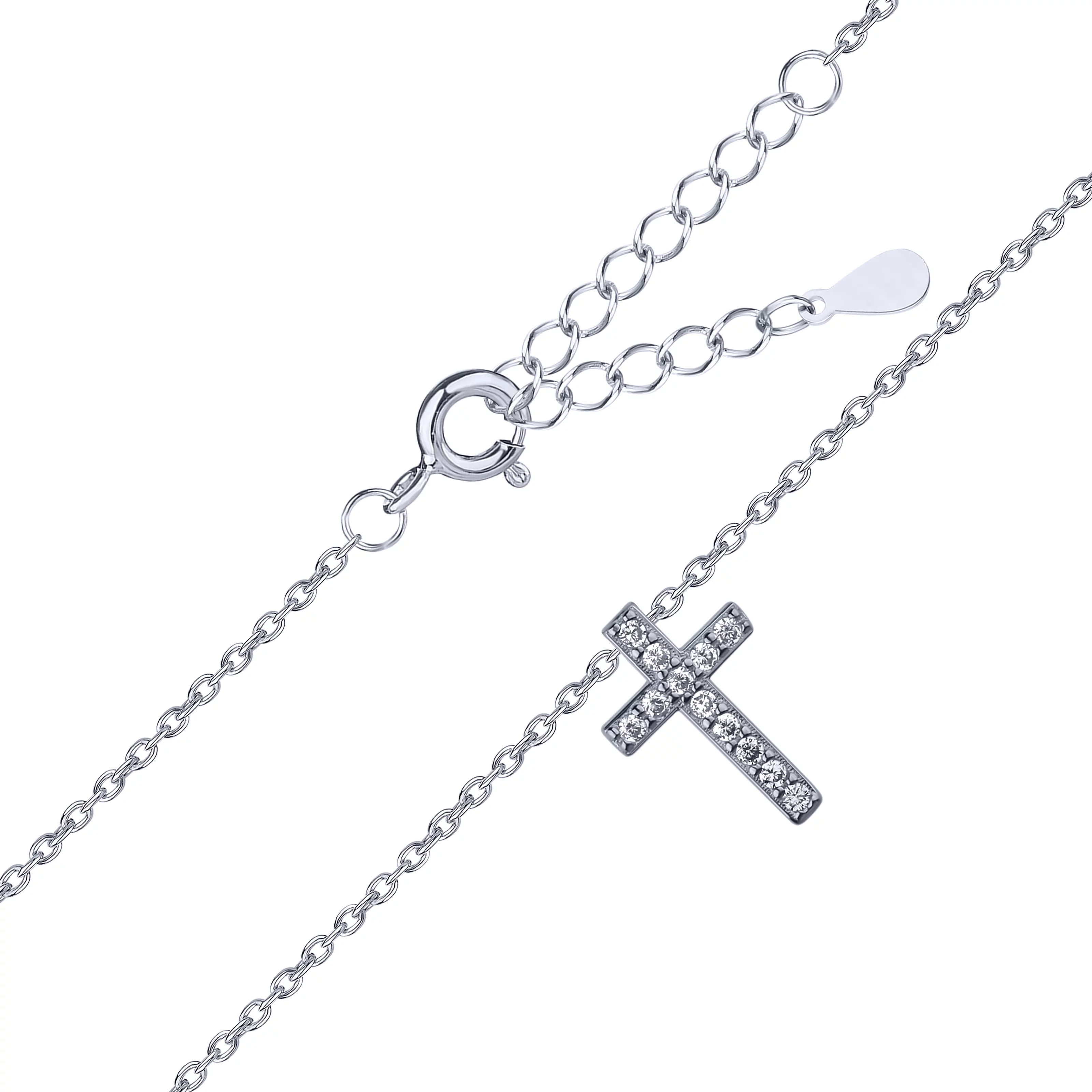 Елегантний ланцюжок з підвісом "Хрестик" у сріблі з якорним плетінням - 1933419
