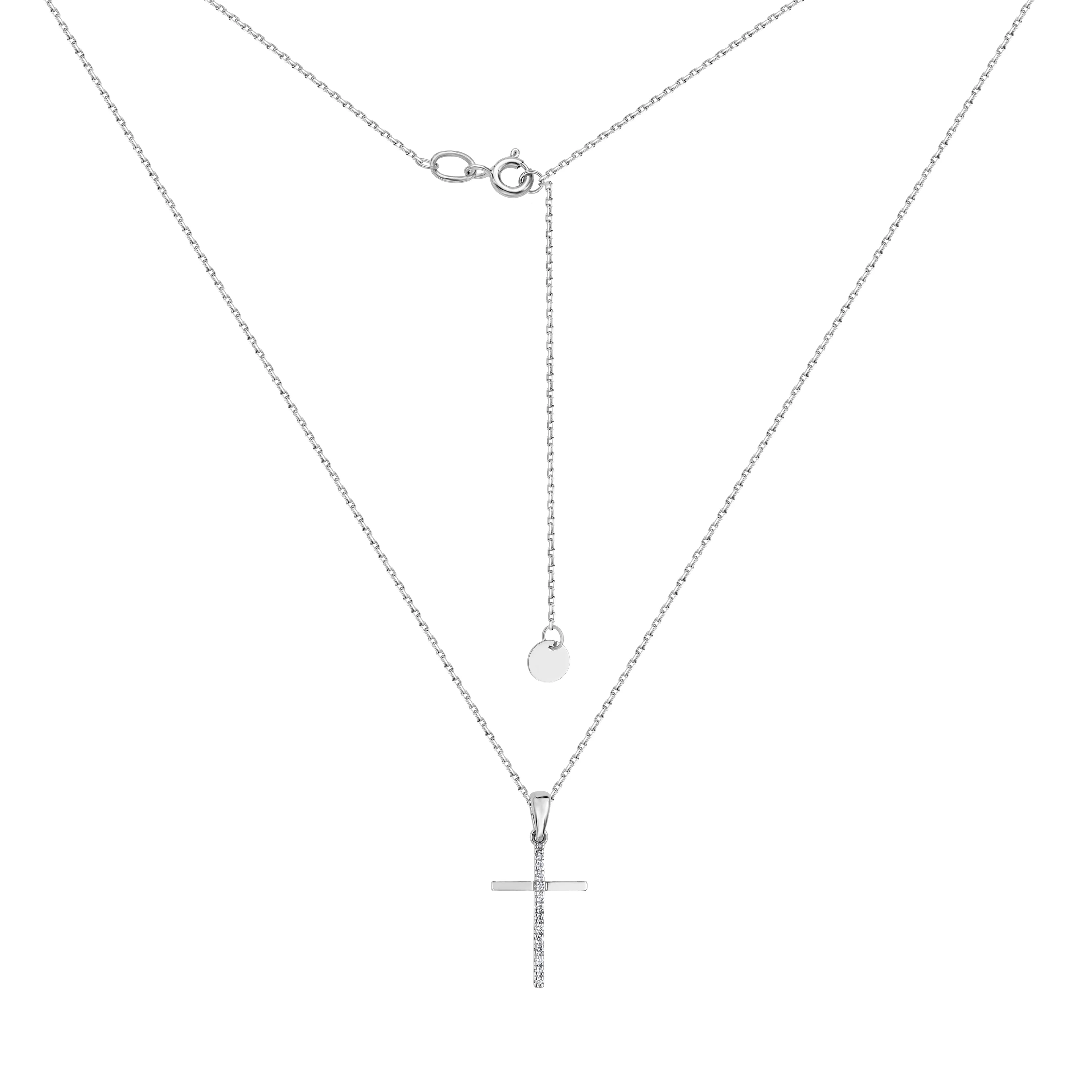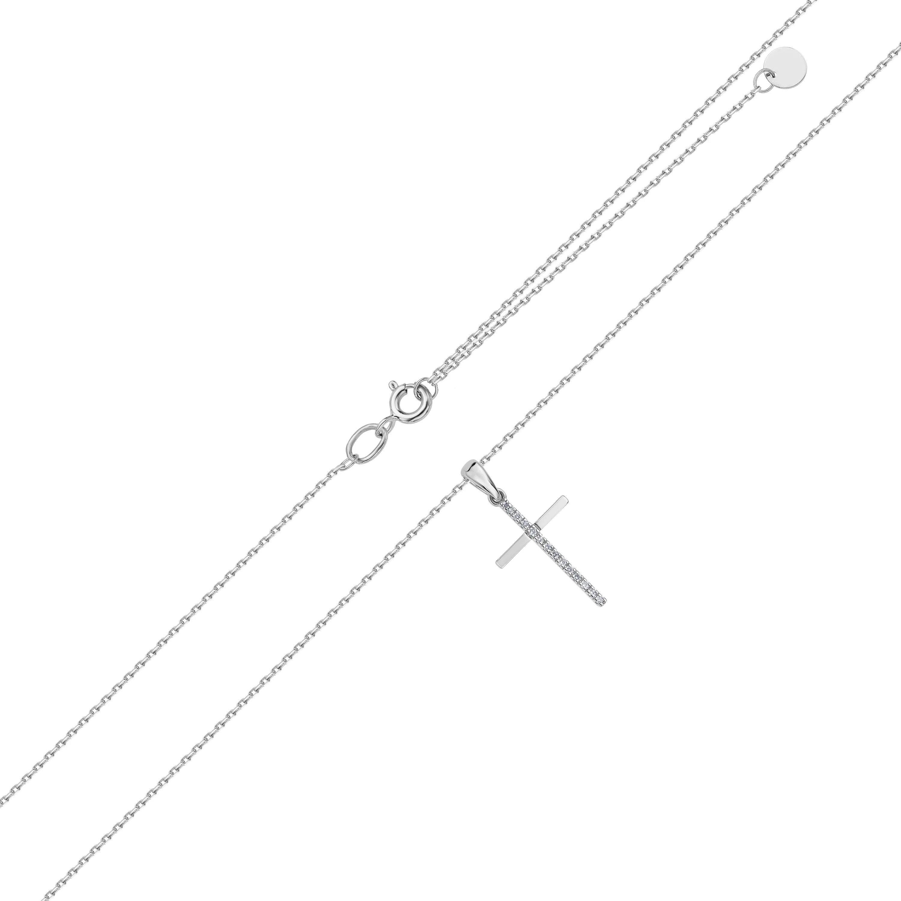 Ланцюжок з підвісом "Хрестик" з діамантами у білому золоті якірне плетіння - 2115446